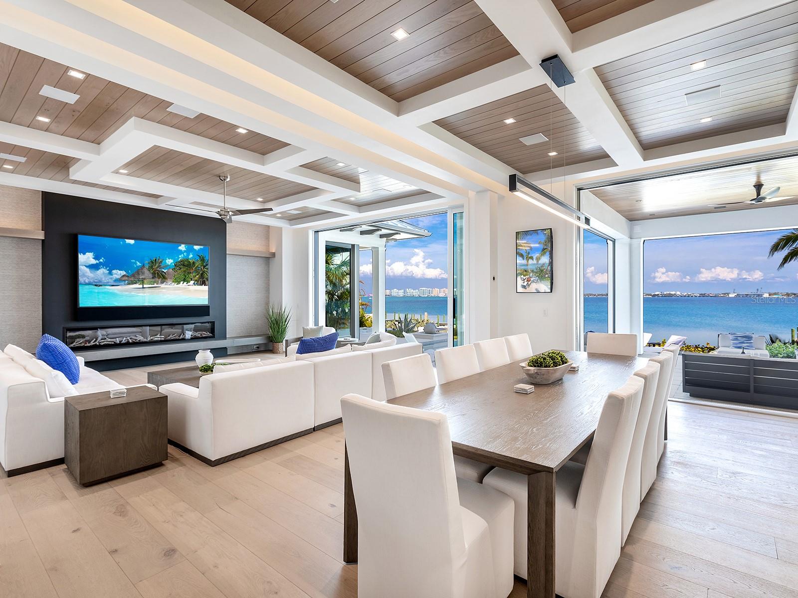 Set against the backdrop of Sarasota's desirable waterfront views, this extraordinary Lido Shores bayfront estate offers the ultimate in luxury living, with easy access to boating, beaches and unmatched views of the Sarasota Skyline, Ringling Bridge and downtown. This is more than a home, it is an icon of West Indies-inspired design, where every detail exudes sophistication and grandeur. From the moment you enter through the private gates, the artistry and precision are undeniable. With over $1 million invested and 2,000 hours dedicated to the creation, this home boasts cutting-edge smart home automation, offering seamless control from anywhere in the world. The custom front door opens to a stunning foyer leading to a great room with a coffered ceiling, media wall, linear fireplace and views of Sarasota Bay. The dining area includes a bar with wine storage and a quartz countertop, flowing into a kitchen with Thermador appliances, a large floating island with quartz waterfall countertop and a walk-in pantry with an extra Bosch refrigerator. The primary suite is a serene retreat with floor-to-ceiling windows, sliders and breathtaking views. It features two custom walk-in closets and a spa-like en-suite bath with floating vanities, a soaking tub, a custom shower with multiple showerheads, and sliders opening to an outdoor shower in a private Zen garden. A striking modern staircase and wine wall lead to an upper-level loft with a wet bar and terrace overlooking the water. A sophisticated office with custom built-ins, plus four well-appointed en-suite bedrooms with custom closets, projector screens and private balconies, ensure luxury throughout. Step into your private paradise, where an infinity-edge pool, sun shelf, in-pool table and cascading spa create a breathtaking resort-style experience. The fully equipped outdoor kitchen, complete with smoker, grill, wok and side burner, makes alfresco dining effortless, while multiple seating areas, a firepit, outdoor shower, and a spiral staircase leading to the upper terrace offer unparalleled relaxation and views. The newer dock is designed for ultimate waterfront living, featuring a 20,000-pound boat lift, jet ski lift, water and power, and a dedicated fishing area with benches and ambient lighting. Just steps from your backyard, Sarasota Bay provides amazing boating waters. The home also includes a three-car garage, two well-appointed laundry rooms, an elevator, a drop zone near the garage and a hidden utility closet. Dedicated to smart home integration, this residence offers unparalleled automation, ensuring complete control wherever you are. This includes advanced automation with Control4, security cameras, a 48-kilowatt generator and a 20-kilowatt battery backup, a high-end audio-visual system, automated shades, circadian lighting, an outdoor theater, app-controlled pool and sprinkler systems, Wi-Fi-enabled appliances, EV charger prewiring, Starlink backup internet, motion-activated lights and voice control through Josh AI. Lido Shores is one of Sarasota’s sought after and architecturally significant communities offering exclusive access to the northern end of Lido Beach. Residents enjoy amenities like a community beach and proximity to nearby attractions such as St. Armands Circle, City Island, Longboat Key and is minutes from downtown Sarasota. This estate is an architectural triumph designed for sophisticated entertaining and extraordinarily comfortable waterfront living.