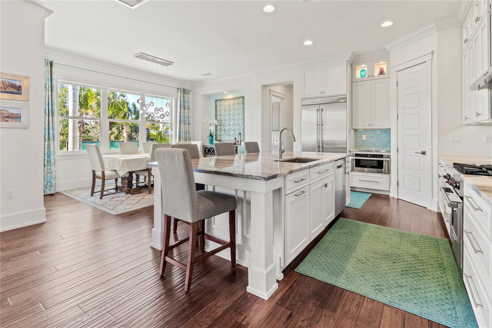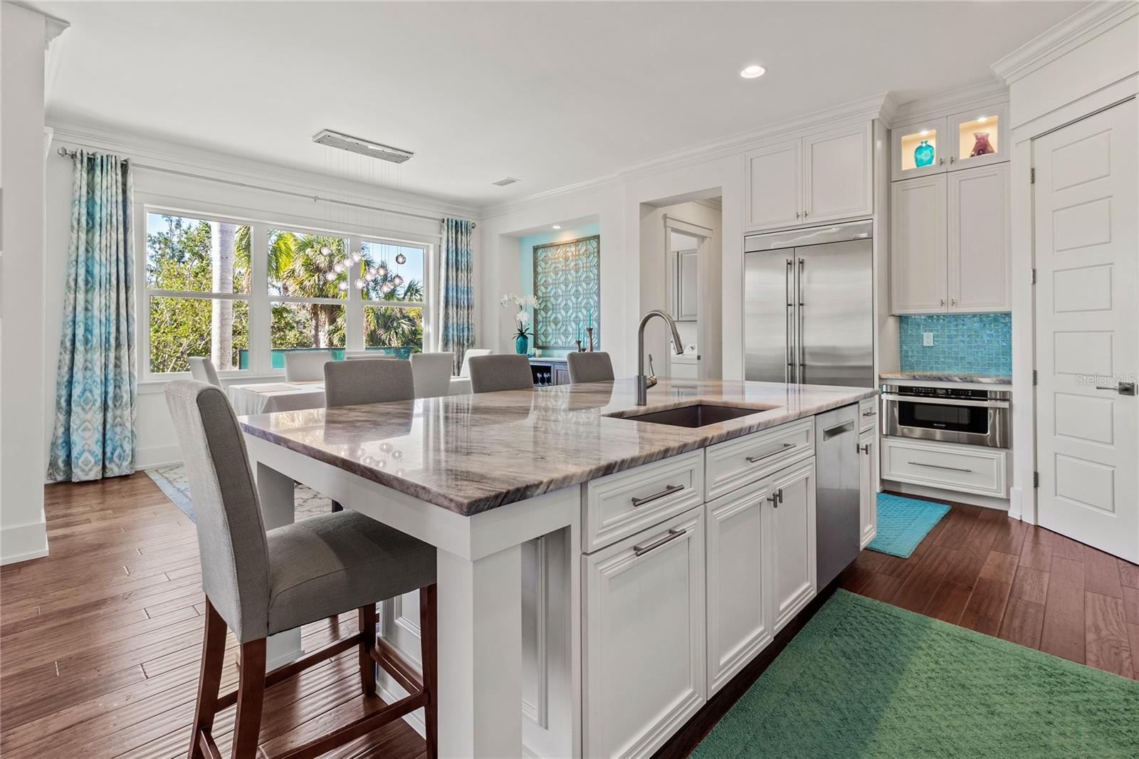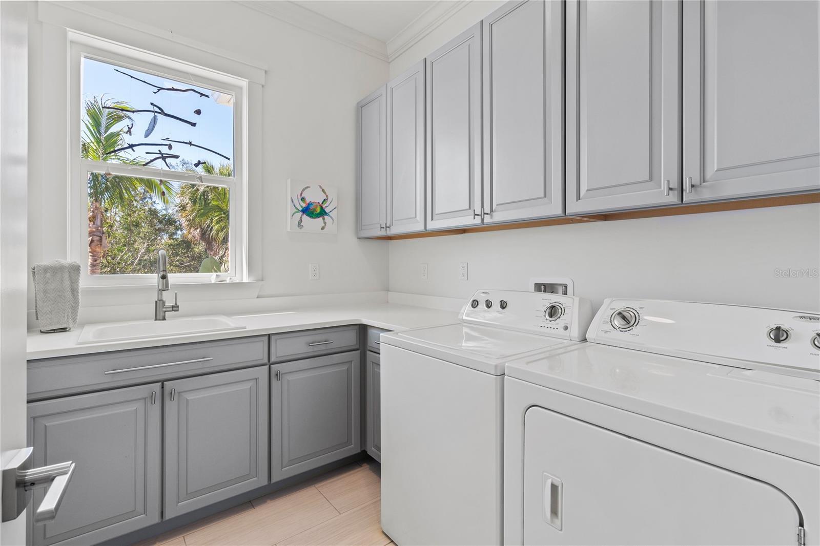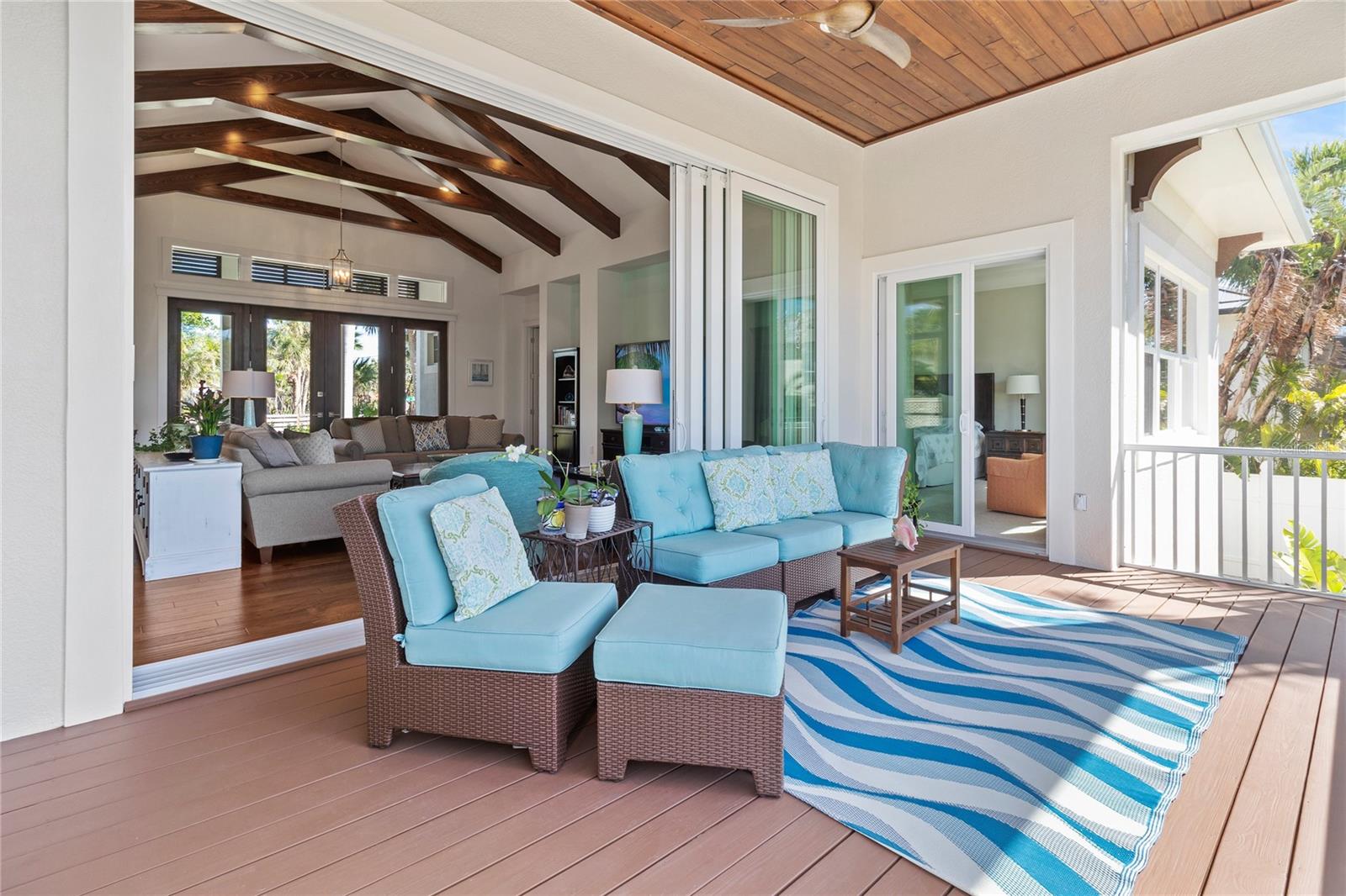 You have found it! Welcome to this impressive custom-built West Indies inspired home that has it all. Nestled in an ideal location and a quick walk to the vibrant Siesta Village and world famous crystal sand beach, this property provides quiet privacy with nature views and is surrounded by multiple newer homes. Built within the last 10 years, this home is elevated above 10 feet and constructed to the latest building codes, featuring a metal roof, impact windows and doors and natural gas appliances. This meticulously maintained 2-story waterfront pool home boasts 4 bedrooms, 3.5 bathrooms, an oversized 3-car garage and sits on a generous lot. The stunning open concept main living area invites in natural light and features a 15-foot cathedral ceiling lined with elegant cypress beams and matching engineered hickory wood flooring. Be mesmerized by the enormous 10-foot sliding glass doors while viewing your private dock and serene canal basin. These doors open to a beautiful screened Lanai with tongue and groove natural cypress ceiling and wood deck flooring. The gorgeous kitchen features marble countertops, a spacious 5' x 9' island, turquoise glass backsplash, built-in stainless steel appliances, and a professional Wolf gas gourmet stove. The oversized master suite is a true sanctuary offering private canal views. A tray ceiling with custom trim adds an extra touch of elegance. The first floor includes two additional large bedrooms and a spacious home office. The second floor features a private living quarters fully equipped with a versatile great room, wet bar, bedroom, walk-in closet, washer and dryer, full bathroom, and flex room. This retreat offers endless possibilities. The southwest-facing backyard makes lounging by the heated pool a delight throughout the day. If you prefer shade, relax under the poolside veranda. Outdoor enthusiasts will fall in love with the 40-foot private dock, lined with groomed mangroves that naturally protect the shoreline and support local marine life. Boating enthusiasts will appreciate the easy access to Sarasota Bay and the Gulf, with no low bridges interrupting your journey through the grand canal system. The grounds are beautifully landscaped with numerous Florida native low-maintenance plants, combining aesthetic appeal with practicality. Don't let this exceptional opportunity slip away – book your viewing now and prepare to be amazed by this extraordinary waterfront property!