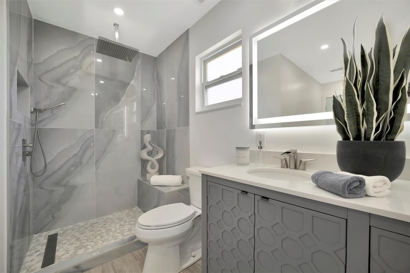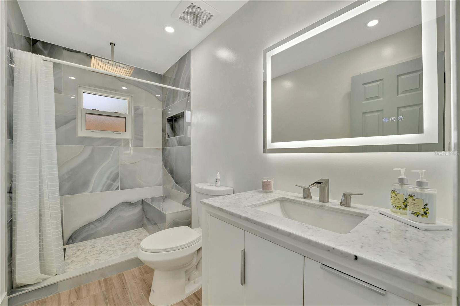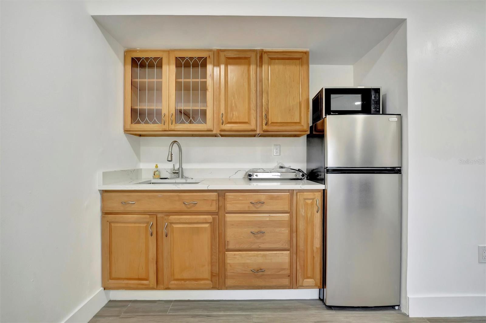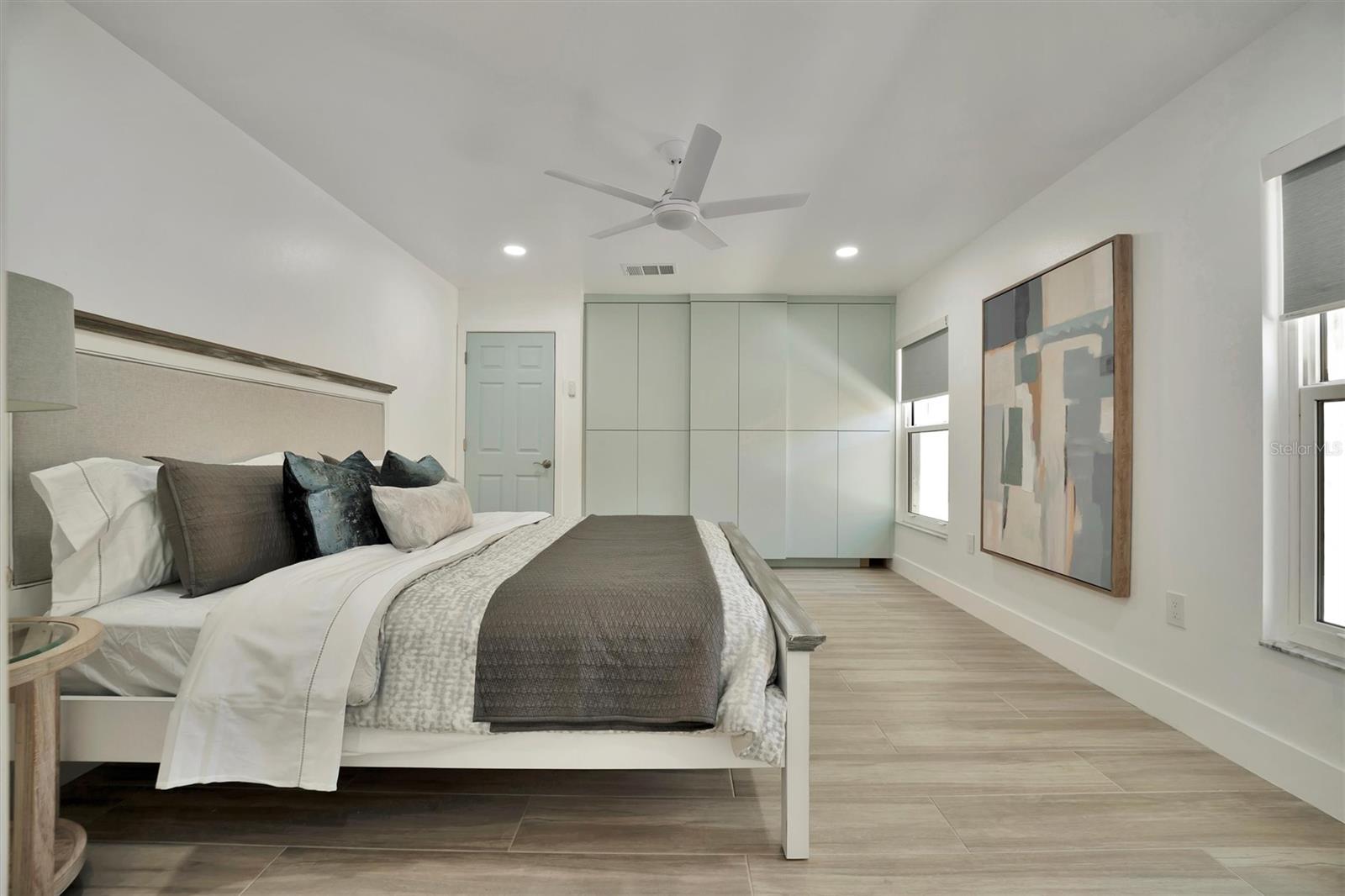 Endless possibilities await with this spacious 4-bedroom (total), 4-bathroom (total), 2-car garage home on over a quarter-acre lot! Perfect for multi-generational living, rental income, guest accommodations, or a private space for college students returning home. The property features two attached yet separate studio suites each with their own private entrance, kitchenette, and full bathroom with a walk-in shower—ideal for added privacy and flexibility. Imagine the opportunity for a private mother-in-law quarters, ensuring comfortable and independent living for extended family or guests. The main home boasts an inviting layout with skylights, two distinct living and dining areas, and a beautifully updated kitchen featuring quartz countertops, upgraded cabinets, CAFE appliances, breakfast bar, and a dry bar with a wine refrigerator. The primary suite includes a built-in closet system, a walk-in closet, and a spacious en-suite bathroom with a soaking tub and separate shower. Key Updates: Roof (2015) HVAC (2019) Hurricane windows & sliding doors New luxury vinyl flooring throughout LED ceiling lighting & smooth ceilings Fresh interior & exterior paint Updated bathroom vanities and showers New interior and exterior doors Water treatment system The fully fenced backyard features a reinforced concrete footing, adding extra security for pets and plenty of room for a pool. Centrally located near UTC Mall, top-rated restaurants, beaches, downtown Sarasota, and the airport, this home is a must-see for those seeking flexibility, comfort, and modern updates in a prime location!