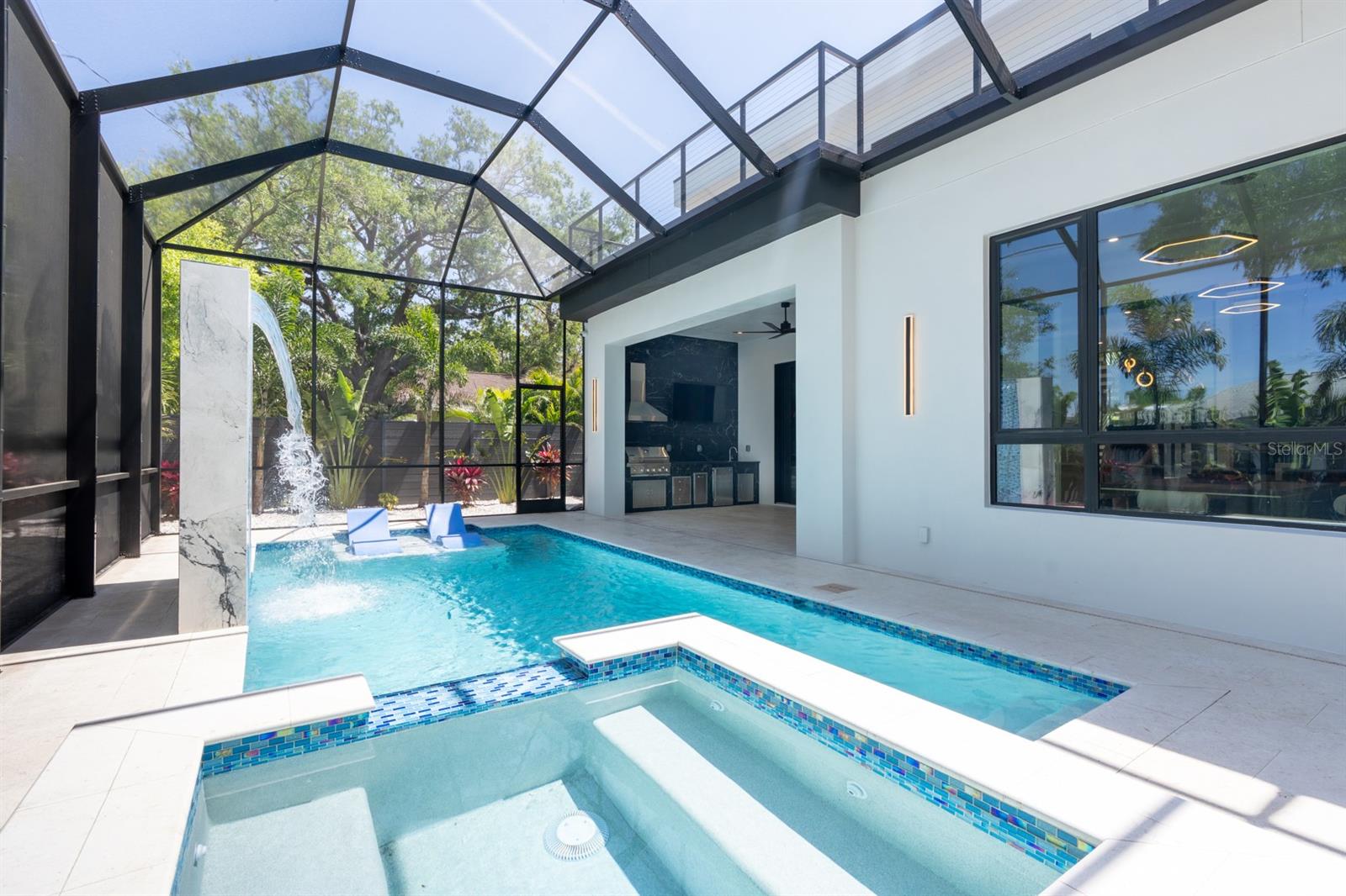 Luxurious New Build in Sarasota: A 5-Bedroom Haven Close to Siesta Key! Indulge in the epitome of upscale living in this newly constructed 5-bedroom, 6-bathroom masterpiece, ideally situated near Siesta Key and the vibrant heart of Downtown Sarasota. This exquisite home offers a harmonious blend of elegance and comfort, designed for those who cherish a high-end, yet comfortable lifestyle. Step inside your personal sanctuary where a private, heated swimming pool is enhanced by a stunning tall waterfall feature, creating a resort-style ambiance that invites relaxation and leisure. The beautifully designed outdoor spaces, complete with an elegant dining setup and serene balcony on the upper level., provide idyllic settings for savoring the balmy Florida breezes. The home's interior is a testament to refined living with an open-plan design that allows for an effortless flow between the living, dining, and kitchen areas. The state-of-the-art chef’s kitchen is a centerpiece, featuring a custom-designed island with an extended countertop and seating area, perfect for casual dining or upscale entertaining. Equipped with top-tier appliances, expansive countertops, and sleek cabinetry, this kitchen is both beautiful and functional. For those who work from home, the dedicated office space is an absolute delight, boasting a built-in desk and cabinetry. This well-appointed area ensures productivity and comfort, blending seamlessly with the rest of the home's luxurious aesthetics. Accommodations include five generously sized bedrooms, each creating a private oasis. The lavish master suite and additional bedrooms are meticulously appointed, ensuring every comfort is met with luxury. Located just a short drive from the renowned Siesta Key Beach, this property offers access to the exquisite sandy beaches and crystal-clear waters, along with proximity to Siesta Key Village’s array of boutique shops, gourmet restaurants, and lively entertainment options. Seize the chance to make this luxurious haven your own and experience a blend of relaxation and sophistication like never before. Schedule your exclusive tour today and step into a lifestyle redefined.