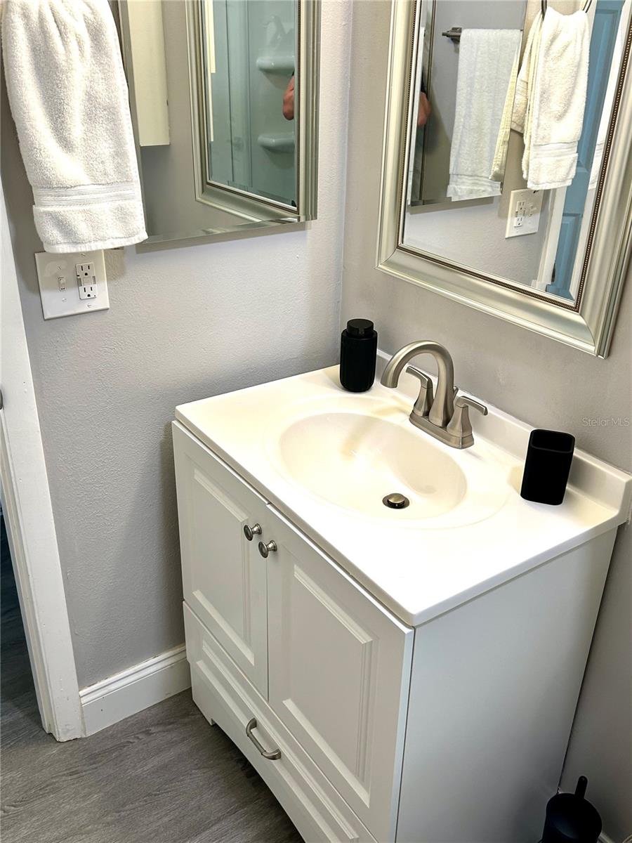 This beautiful remodeled two-bedroom, two bath condominium is ready for you. Everything has been updated in desirable neutral painting. The large living room has a ceiling fan and lots of light from the sliding glass doors leading to the screened in lanai. The kitchen has brand new cabinets with stainless steel appliances including a dishwasher and self-cleaning oven. There is ample storage in the kitchen provided by a large pantry. The dining area is defined by a hanging light with room for a table and chairs and there are two stools at the breakfast bar. The bathrooms have new walk-in showers with sliding glass doors, and new vanities, mirrors and lights as well. There is new vinyl flooring and base boards throughout the condo in addition to new hurricane windows. This condo includes a covered parking place. Located just only 5 minutes from downtown Sarasota and 15 minutes from one of the most amazing Beaches, Lido. Hidden Lake Village offers its residents two swimming pools, tennis courts, a library, billiards room, and fitness center. There are several washers and dryers in many of the buildings for resident use. Perfect for owner occupied or makes a great rental.