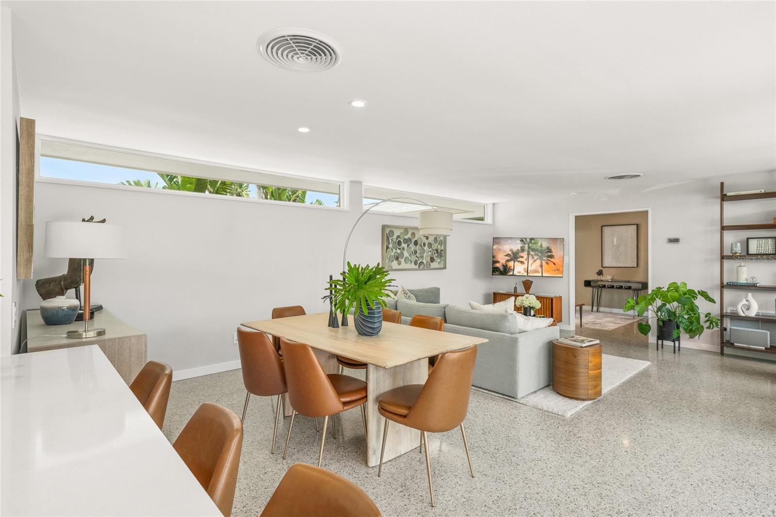 Discover a beautiful, serene beachside sanctuary at 1186 Center Place, where timeless sophistication meets coastal allure. This impeccably redesigned home is nestled in the exclusive, architecturally significant Lido Shores neighborhood. This mid-century modern gem boasts deeded beach access to the white sandy shores of Lido Beach, a 3-minute walk away. This home defines the pinnacle of upscale Florida living. As you approach, tropical landscaping, vibrant blooms, and a chic shell-and-stone driveway usher you toward a classic contemporary exterior. Step through the stylish double-door entrance into a home completely reimagined with meticulous attention to detail. The open-concept design unites living, dining, and kitchen areas, bathed in natural light streaming through expansive floor-to-ceiling windows and sliding glass doors. Gleaming original terrazzo floors and sleek built-ins create a harmonious blend of form and function. At the heart of this exceptional residence is the gourmet kitchen—luxurious yet practical—with premium stainless-steel appliances, quartz countertops, contemporary cabinetry, and a spacious island perfect for culinary exploration and casual entertaining. Retreat to the expansive primary suite, where custom cabinetry and plantation shutters frame tranquil views of your private outdoor haven. Step outside to an outdoor retreat that redefines luxury living. A meticulously paved patio, shaded by stylish designer umbrellas, beckons for al fresco dining or cozy evenings by the fire pit. Encircled by mature tropical foliage, this secluded backyard offers a peaceful escape in your private paradise. Just steps from your door, the Gulf of Mexico’s shimmering waters await, with deeded beach access granting you effortless enjoyment of Sarasota’s pristine shores. A short stroll brings you to world-class dining, boutique shopping, cultural treasures, and endless recreation, blending convenience with coastal refinement. At 1186 Center Place, experience the pinnacle of coastal sophistication tailored for discerning buyers who appreciate elegance, style, and Florida’s ultimate beach lifestyle.