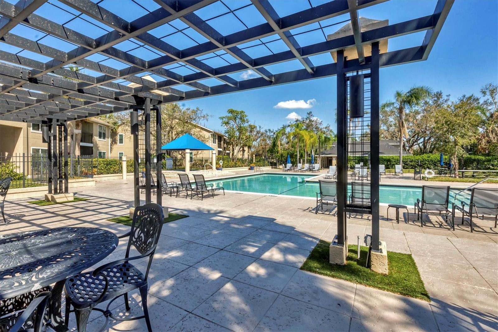 This is the BEST VALUE 3-bed 2-bath condo in ALL of coveted Palmer Ranch. Nestled in the serene and natural setting of Vintage Grand, this 2nd story light-filled end unit is graced with floor-to-ceiling sliding glass doors that lead to a covered screened patio, perfect for your morning coffee. With vaulted ceilings, a large kitchen, a roomy dining area and plenty of closet space, this move-in-ready condo is priced to sell and is available turnkey furnished. This condo boasts 1,260 ft² of living space and has an in-unit washer and dryer, and not one, but two screened in patios. One patio has a storage closet for your beach gear, and the other private screened patio is located off the 2nd of the 3 sizable bedrooms. The spacious main bedroom has an abundance of natural light, a walk-in closet, an en-suite bath, and access to the main patio. Enjoy all the amazing amenities this complex has to offer, including a clubhouse, fitness center, playground, 2 resort-style pools complete with hot tub, walking trails, a lake with fishing dock, outdoor grilling and picnic areas, a carwash station, as well as tennis and basketball courts. Ample guest parking. A/C replaced in 2017. Dishwasher & water heater both replaced within the past 4-5 years. Roof replaced in 2024 and hurricane-rated windows. Perfect for year-round enjoyment, an income producing rental, or as your winter getaway, this PET FRIENDLY unit comes equipped with all you’ll need for an “instant vacation”. Close to top-rated schools, great shopping, great dining and the #1 beach in the US, this unit checks ALL the boxes. Vintage Grand is minutes from countless recreational and cultural activities, downtown Sarasota and the interstate. Perfect for a family or your vacation getaway, you’ve got the YMCA and Costco practically right outside your door! Lowe’s, Target and Publix are down the street. With a low HOA of just under $600 a month and all assessments paid, this well-maintained unit is a steal. Covered parking is available for $30 per month.