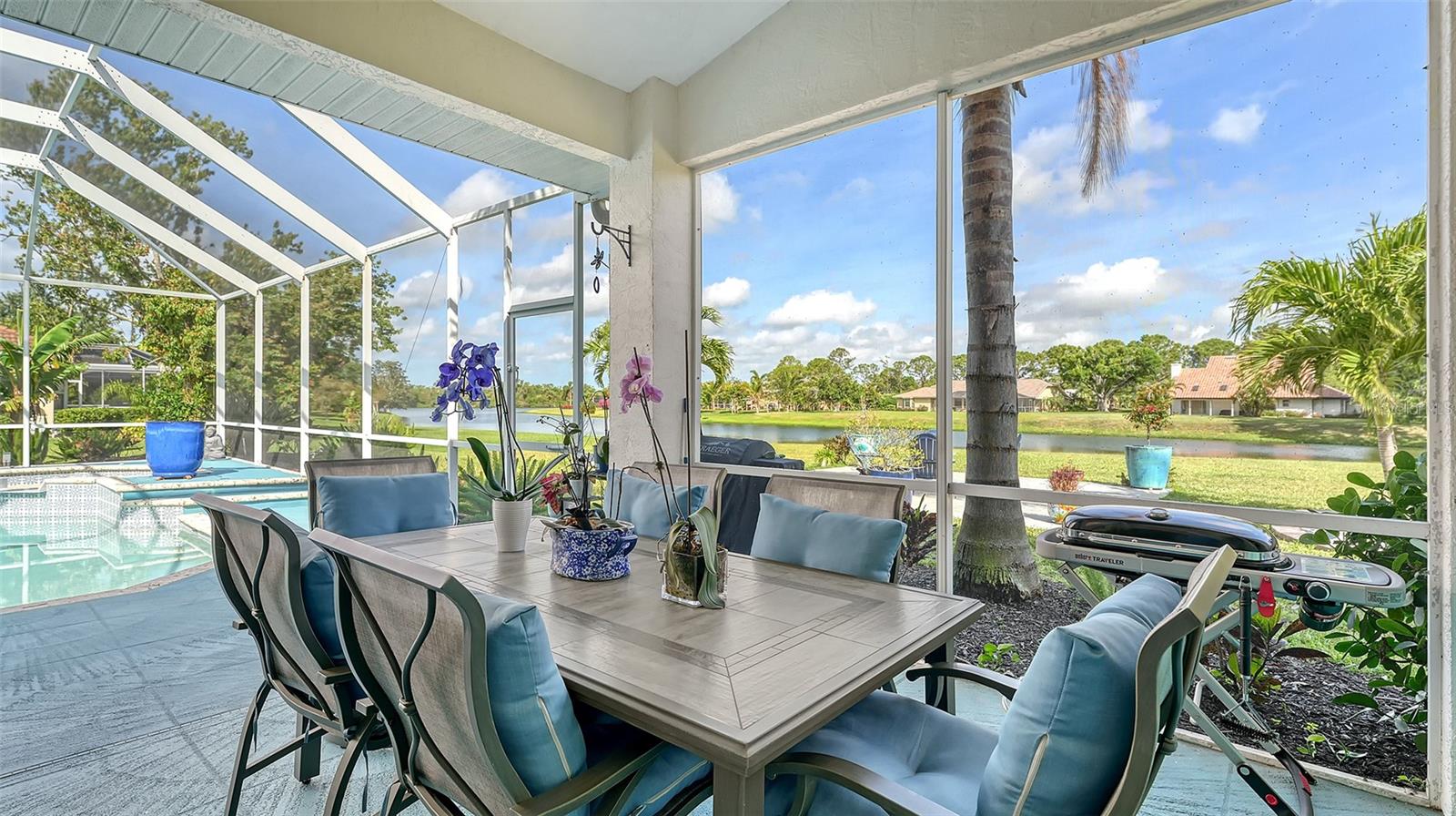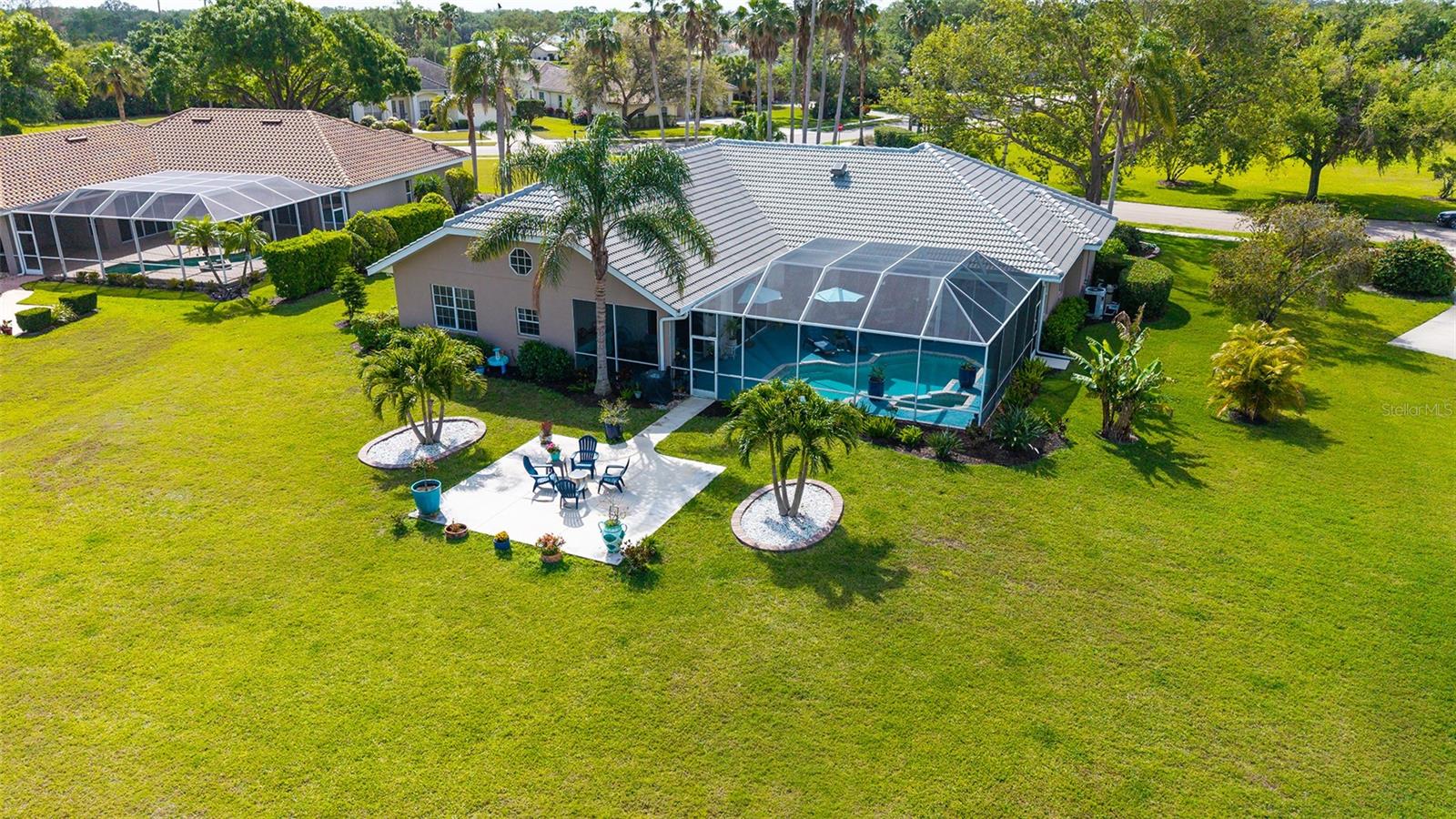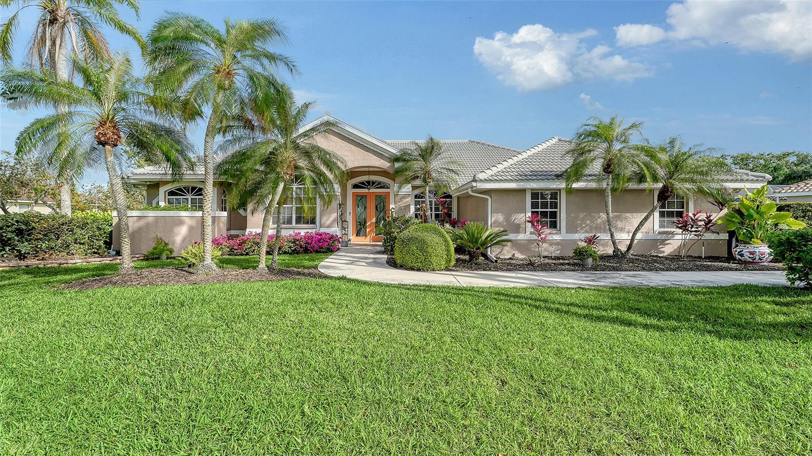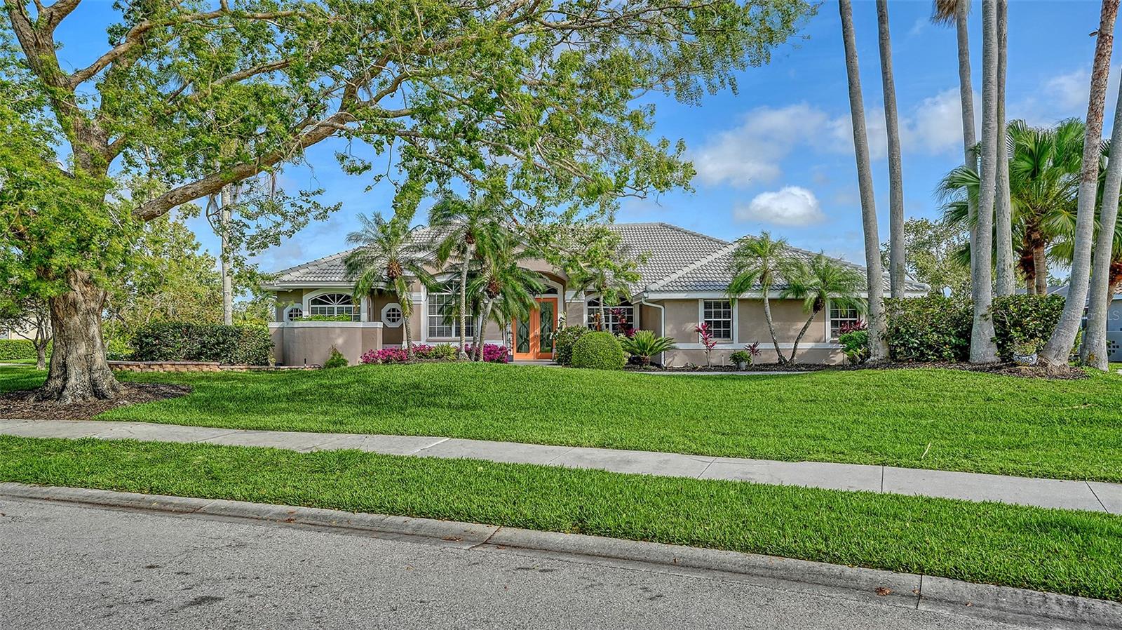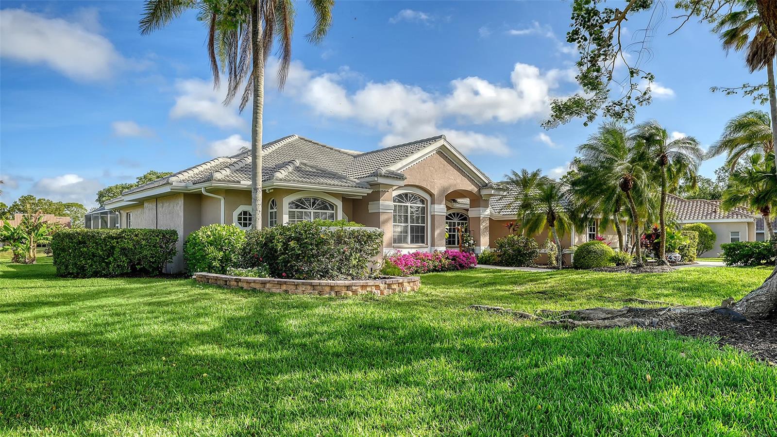Nestled in the peaceful golf community of Misty Creek, you will be mesmerized by the mature Oaks donning silvery Spanish Moss and majestic Royal Palms which line the streets of this neighborhood. With over 350 acres of preserve land, you will be welcomed by baby fawns while enjoying your morning cup of coffee on your lanai and enchanted by the Roseate Spoonbills while relaxing with your favorite afternoon cocktail! However, the most spectacular aspect of this property is the 15-foot vaulted Cathedral ceiling entrance into the home. This dynamic floor plan gives both privacy and spaciousness for entertaining family and friends. This property accommodates all ages, with three separate bedroom areas including two en-suite guest rooms. A third guest room offers a spacious loft area and a full hallway bathroom adjacent to lanai access. Bedroom areas are private with pocketed doors to buffer sound. The newly painted and carpeted, enormous primary ensuite bedroom boasts of a very large walk-in, changing closet and 12-foot ceilings which continue throughout the majority of the home. Additional primary bathroom access from closet makes way to dual sink vanity separated by a makeup station, a tub and shower stall as well as a water closet. Remodeled kitchen is modernized with gently warm colors, stainless-steel appliances and a white porcelain farmhouse sink. A center island offers additional countertop space for food preparation. Spacious, yet cozy, with a formal living room, dining room (able to house an elongated dining table), family room, in addition to an office/den and 5th half bath, there are areas for everyone! New garage doors make way to voluminous three car garage. Step out onto the screened lanai and enjoy three separate gathering areas and an outdoor kitchen setup surrounding the newly tiled, heated pool and spa accented with stunning Coral Pavers! Enjoy sitting in the additional outdoor paved area, perfect for Adirondacks and a fire pit while you watch, or participate, in fishing for tilapia, and canoeing or kayaking for the adventurous. Misty Creek Country Club was recently purchased by Coral Hospitality who is dedicated to revitalizing and improving this wildlife enriched 72 par, 18-hole golf course, membership optional. A mere 5 holes on the course are adjacent to homes while the rest are enhanced by a backdrop of Preserve land. Misty Creek Golf course is home to the longest hole in Sarasota at a whopping 606 yards!! It is important to note that this home provides you with a NEW TILE ROOF, NEW front doors, NEW garage doors, newer AC unit, newer well pump and motor, newer kitchen appliances and much, much more!!! Don't miss out, schedule your showing today! Realtor lives in neighborhood and is able to accommodate most short notice showings.