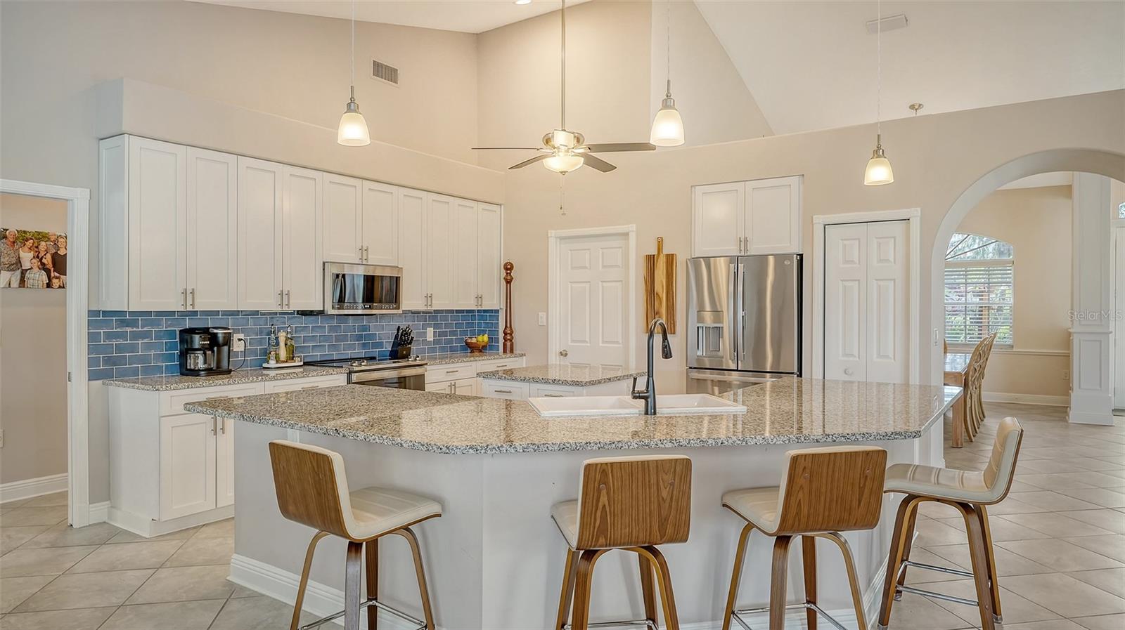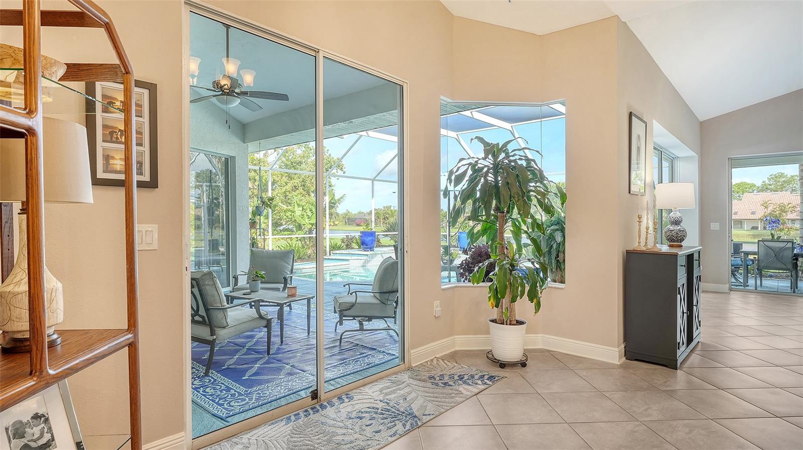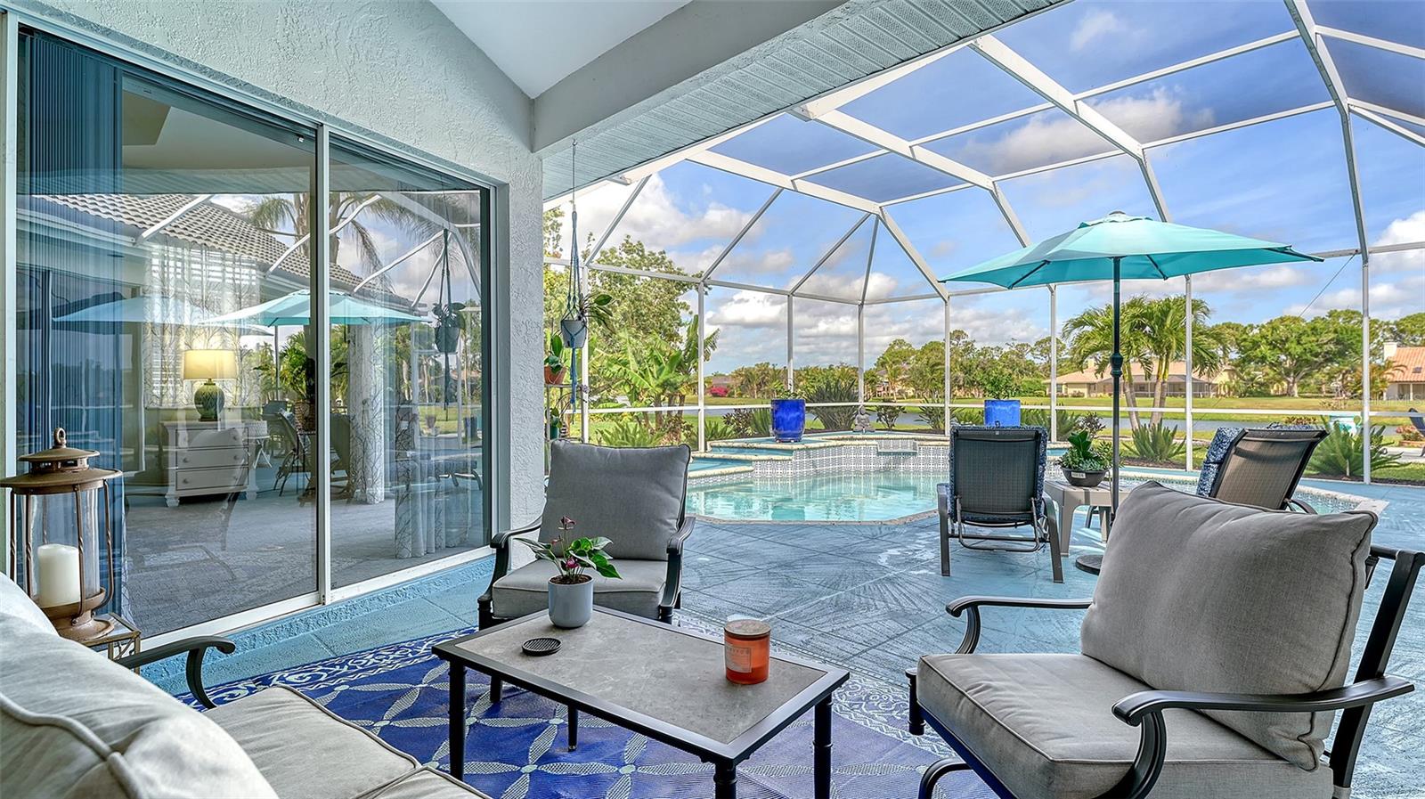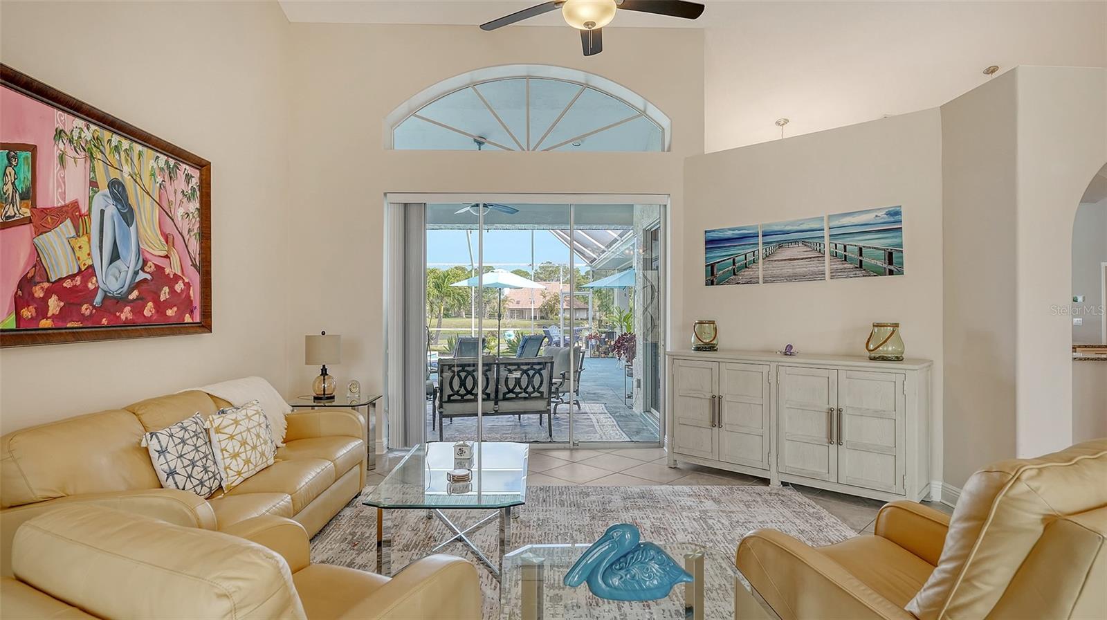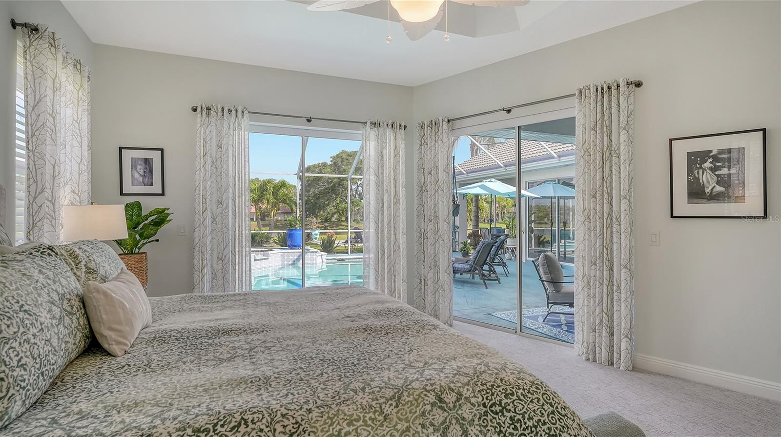 Nestled in the peaceful golf community of Misty Creek, you will be mesmerized by the mature Oaks donning silvery Spanish Moss and majestic Royal Palms which line the streets of this neighborhood. With over 350 acres of preserve land, you will be welcomed by baby fawns while enjoying your morning cup of coffee on your lanai and enchanted by the Roseate Spoonbills while relaxing with your favorite afternoon cocktail! However, the most spectacular aspect of this property is the 15-foot vaulted Cathedral ceiling entrance into the home. This dynamic floor plan gives both privacy and spaciousness for entertaining family and friends. This property accommodates all ages, with three separate bedroom areas including two en-suite guest rooms. A third guest room offers a spacious loft area and a full hallway bathroom adjacent to lanai access. Bedroom areas are private with pocketed doors to buffer sound. The newly painted and carpeted, enormous primary ensuite bedroom boasts of a very large walk-in, changing closet and 12-foot ceilings which continue throughout the majority of the home. Additional primary bathroom access from closet makes way to dual sink vanity separated by a makeup station, a tub and shower stall as well as a water closet. Remodeled kitchen is modernized with gently warm colors, stainless-steel appliances and a white porcelain farmhouse sink. A center island offers additional countertop space for food preparation. Spacious, yet cozy, with a formal living room, dining room (able to house an elongated dining table), family room, in addition to an office/den and 5th half bath, there are areas for everyone! New garage doors make way to voluminous three car garage. Step out onto the screened lanai and enjoy three separate gathering areas and an outdoor kitchen setup surrounding the newly tiled, heated pool and spa accented with stunning Coral Pavers! Enjoy sitting in the additional outdoor paved area, perfect for Adirondacks and a fire pit while you watch, or participate, in fishing for tilapia, and canoeing or kayaking for the adventurous. Misty Creek Country Club was recently purchased by Coral Hospitality who is dedicated to revitalizing and improving this wildlife enriched 72 par, 18-hole golf course, membership optional. A mere 5 holes on the course are adjacent to homes while the rest are enhanced by a backdrop of Preserve land. Misty Creek Golf course is home to the longest hole in Sarasota at a whopping 606 yards!! It is important to note that this home provides you with a NEW TILE ROOF, NEW front doors, NEW garage doors, newer AC unit, newer well pump and motor, newer kitchen appliances and much, much more!!! Don't miss out, schedule your showing today! Realtor lives in neighborhood and is able to accommodate most short notice showings.