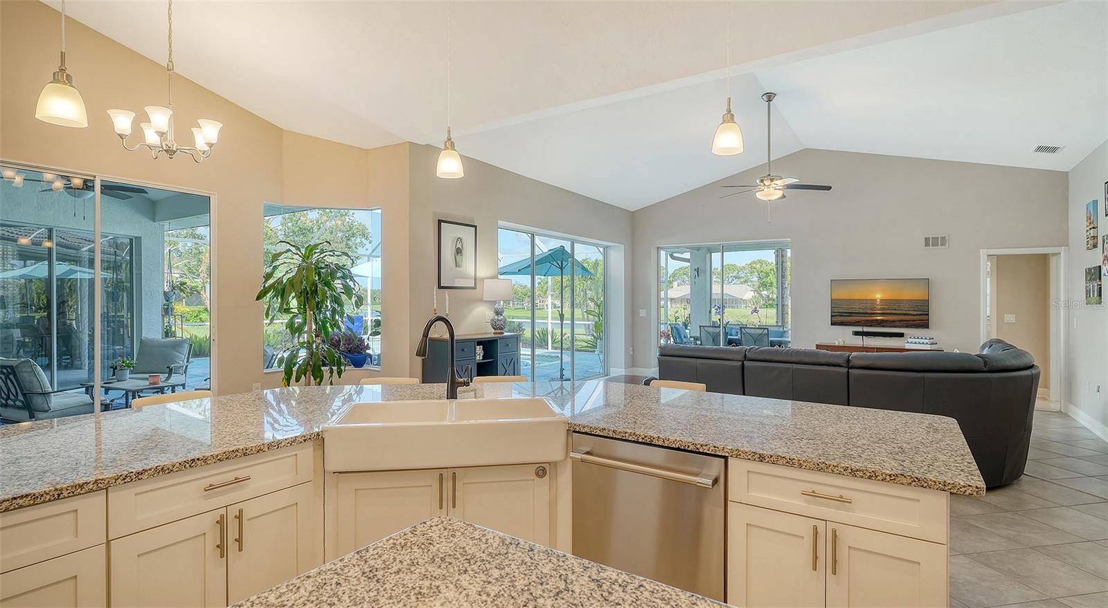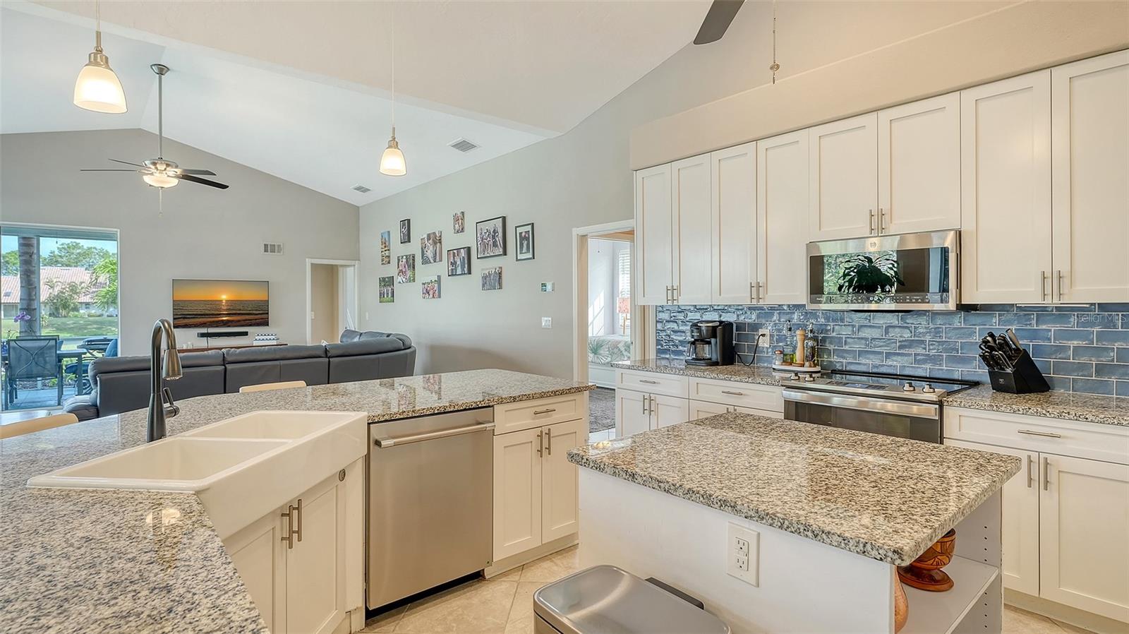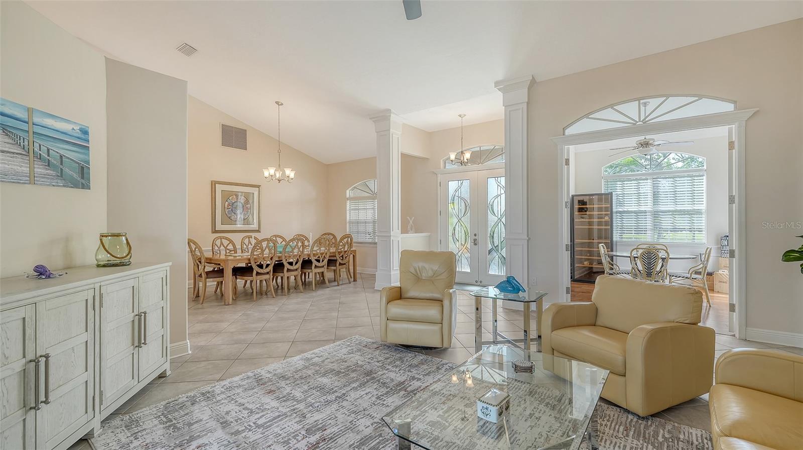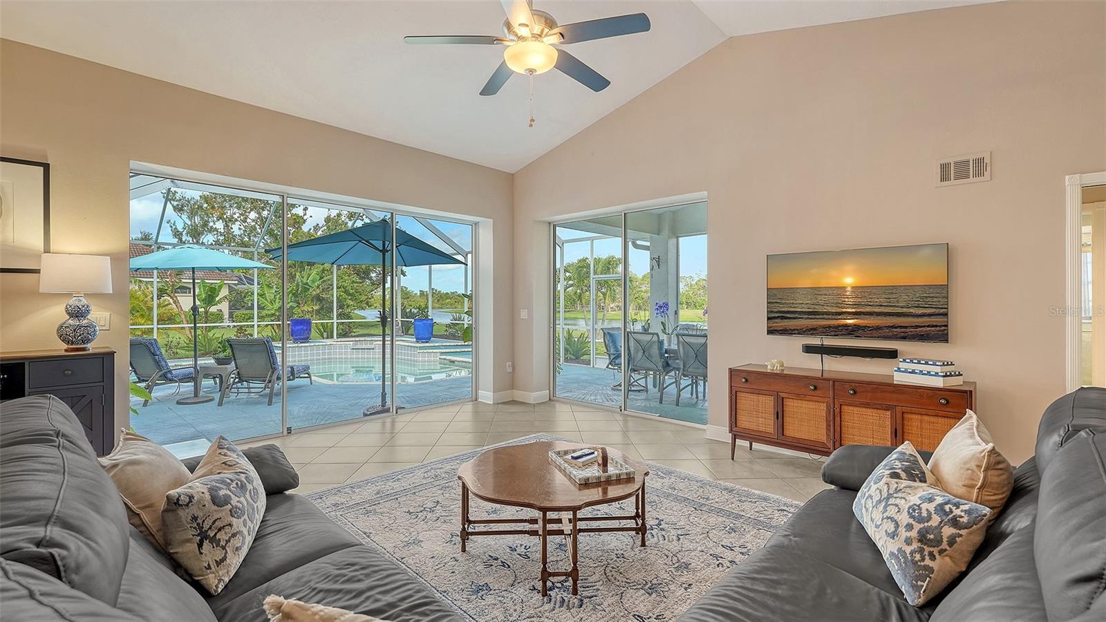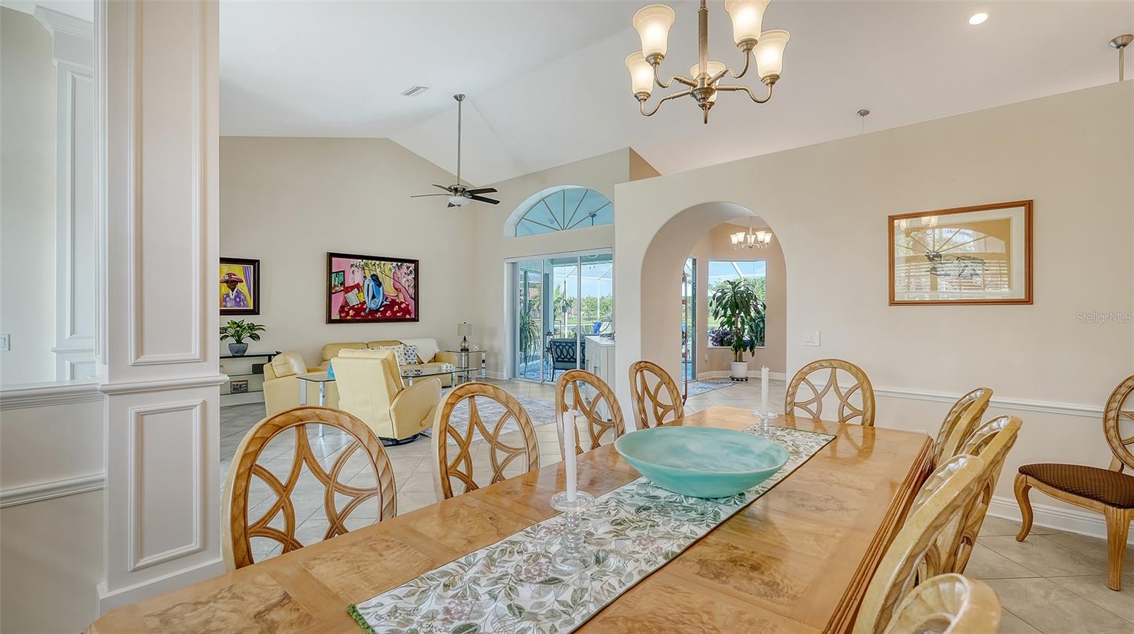 Nestled in the peaceful golf community of Misty Creek, you will be mesmerized by the mature Oaks donning silvery Spanish Moss and majestic Royal Palms which line the streets of this neighborhood. With over 350 acres of preserve land, you will be welcomed by baby fawns while enjoying your morning cup of coffee on your lanai and enchanted by the Roseate Spoonbills while relaxing with your favorite afternoon cocktail! However, the most spectacular aspect of this property is the 15-foot vaulted Cathedral ceiling entrance into the home. This dynamic floor plan gives both privacy and spaciousness for entertaining family and friends. This property accommodates all ages, with three separate bedroom areas including two en-suite guest rooms. A third guest room offers a spacious loft area and a full hallway bathroom adjacent to lanai access. Bedroom areas are private with pocketed doors to buffer sound. The newly painted and carpeted, enormous primary ensuite bedroom boasts of a very large walk-in, changing closet and 12-foot ceilings which continue throughout the majority of the home. Additional primary bathroom access from closet makes way to dual sink vanity separated by a makeup station, a tub and shower stall as well as a water closet. Remodeled kitchen is modernized with gently warm colors, stainless-steel appliances and a white porcelain farmhouse sink. A center island offers additional countertop space for food preparation. Spacious, yet cozy, with a formal living room, dining room (able to house an elongated dining table), family room, in addition to an office/den and 5th half bath, there are areas for everyone! New garage doors make way to voluminous three car garage. Step out onto the screened lanai and enjoy three separate gathering areas and an outdoor kitchen setup surrounding the newly tiled, heated pool and spa accented with stunning Coral Pavers! Enjoy sitting in the additional outdoor paved area, perfect for Adirondacks and a fire pit while you watch, or participate, in fishing for tilapia, and canoeing or kayaking for the adventurous. Misty Creek Country Club was recently purchased by Coral Hospitality who is dedicated to revitalizing and improving this wildlife enriched 72 par, 18-hole golf course, membership optional. A mere 5 holes on the course are adjacent to homes while the rest are enhanced by a backdrop of Preserve land. Misty Creek Golf course is home to the longest hole in Sarasota at a whopping 606 yards!! It is important to note that this home provides you with a NEW TILE ROOF, NEW front doors, NEW garage doors, newer AC unit, newer well pump and motor, newer kitchen appliances and much, much more!!! Don't miss out, schedule your showing today! Realtor lives in neighborhood and is able to accommodate most short notice showings.