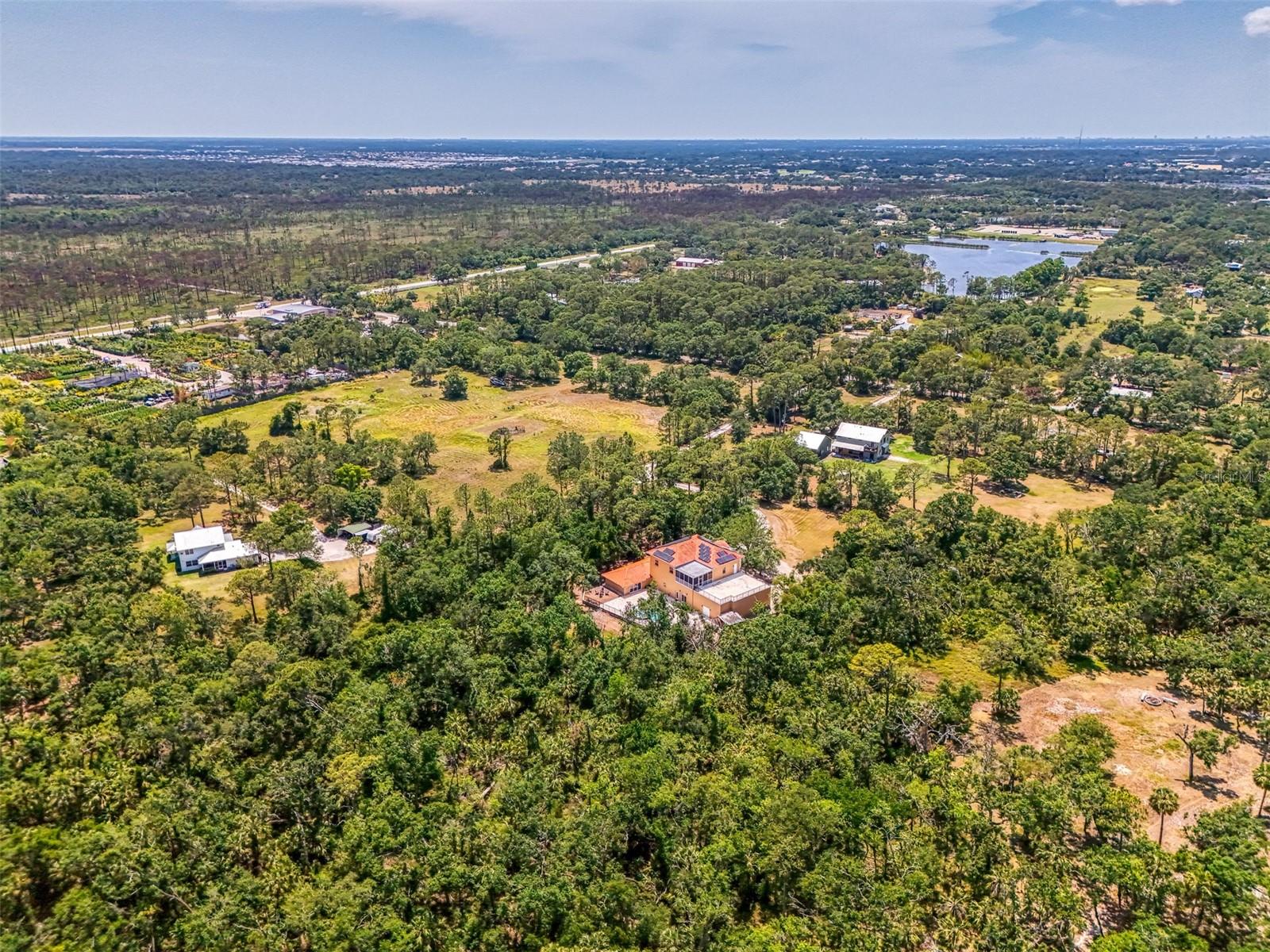 *** NO DEED RESTRICTIONS *** 8 ACRES *** RV or 6-CAR GARAGE*** TRAVERTINE POOL/SPA *** EXCEPTIONAL LOCATION *** EXCELLENT INVESTMENT OPPORTUNITY *** NEW SHINGLE ROOF *** Welcome to this stunning, one-of-a-kind estate, offering over 5,700 square feet of luxurious living space on more than 8 acres of private, wooded wilderness, just moments from town. This magnificent 2-story home boasts an impressive design with 15-foot ceilings on both the first and second floors, creating an open, airy atmosphere throughout. With a versatile floor plan, this home includes 4 spacious bedrooms (Bedroom #2 is 25ft.x21ft. could be divided in two), plus 2 bonus rooms, perfect for a home office, gym, or media room. An attached in-law suite provides additional privacy and comfort, ideal for multi-generational living. The main great room boasts a massive coral stone fireplace and has double doors that open into a grand entertainment room with a wet bar, and views of the pool and lanai area. For those with an RV, boat, or multiple vehicles, you’ll appreciate the attached concrete 6-car garage RV addition designed to accommodate a motor home. This area also doubles as a hurricane shelter with reinforced concrete walls and roof, ensuring safety and peace of mind during stormy weather. Step outside to the gorgeous pool area, featuring travertine decking, an expansive pool and a spa with zero entry sun deck. There's a firepit area which adds to the perfect backyard setting for relaxation or entertaining guests. Whether hosting a family gathering or enjoying a quiet afternoon, this space provides an extraordinary atmosphere for any occasion. A new shingle roof was just installed, with 64 owned solar panels, cutting your electric bills to almost nothing. There is a 2nd floor covered porch, plus a 1500 sq.ft. open sun deck with railing over the garage for more outdoor accommodations. For your RV, there are two 50-amp plugs. Additionally, the home is plumbed for an outdoor shower &/or outdoor kitchen in rear of home. Built with block construction on both floors, this home is a true fortress, offering both durability and elegance. It’s rare to find a property of this magnitude, priced at its recent appraised value, on 8 acres, so close to town, with no restrictions. This home is an opportunity not to be missed. Schedule a showing and experience the unmatched grandeur and tranquility of this unique estate.