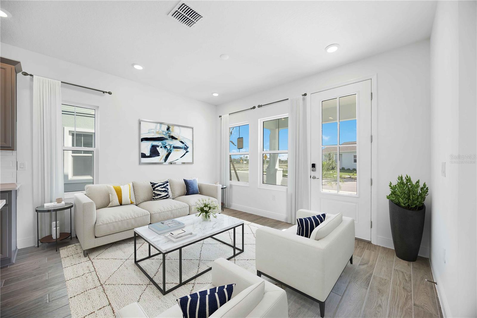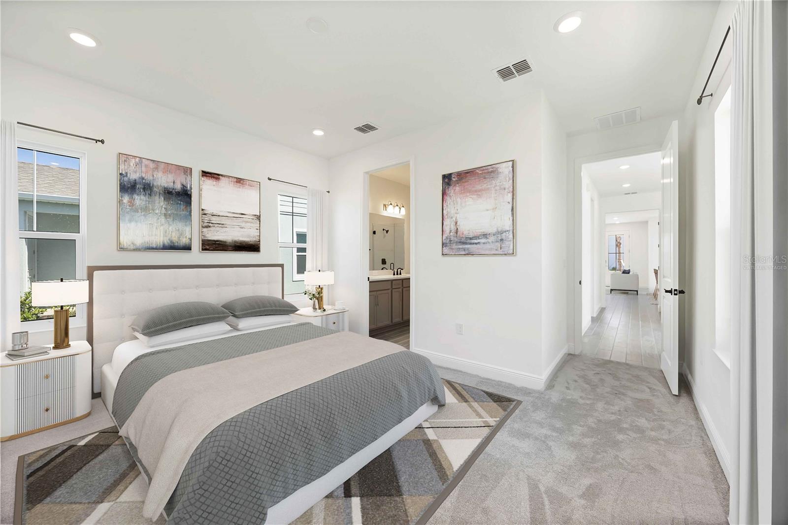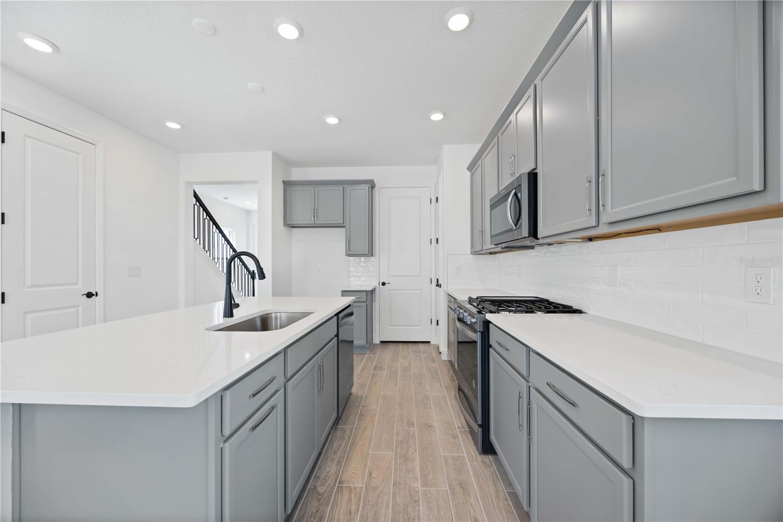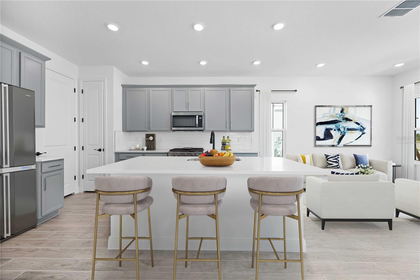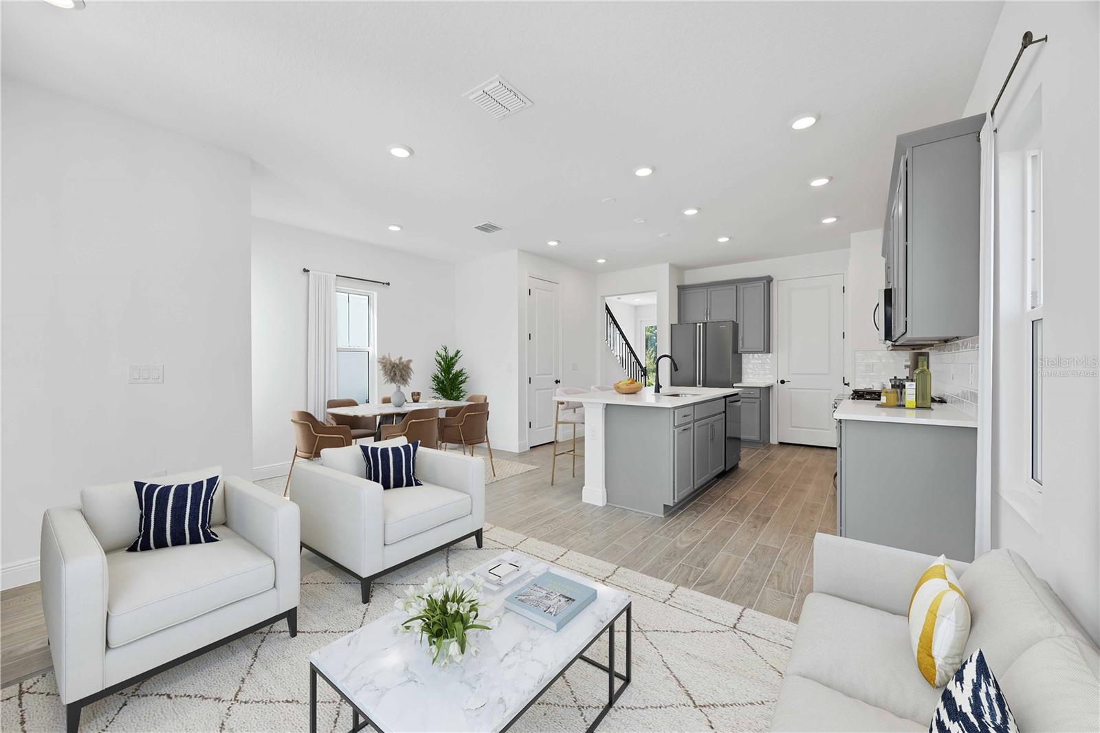 One or more photo(s) has been virtually staged. Move-In Ready – Thoughtfully Designed New Home in Bungalow Walk at Lakewood Ranch. Experience effortless living in this beautifully finished 3-bedroom, 2.5-bathroom home with 1,696 sq. ft., perfectly located in the low-maintenance Bungalow Walk community at Lakewood Ranch. This move-in ready home is designed for comfort, flexibility, and everyday ease. The main floor offers a smart layout featuring an open-concept great room, dining area, and a gourmet kitchen with a center island, quartz countertops, stainless steel appliances, and modern finishes throughout. The primary suite is conveniently located on the main floor, offering a peaceful retreat with a walk-in closet and a beautifully designed bathroom. You’ll also appreciate the main-level laundry room, adding extra convenience to your daily routine. Upstairs, you’ll find two additional bedrooms, a full bathroom, and a loft—perfect for a second living area, home office, or playroom. Enjoy the Florida lifestyle with a welcoming front porch and low-maintenance landscaping, so you can spend less time on chores and more time enjoying everything your community has to provide. At Bungalow Walk, you’ll enjoy amenities including an upcoming sparkling community pool, fire pit, dog park, and open green spaces that foster a true sense of neighborhood connection. Just minutes away is Waterside Place, where you can enjoy boutique shopping, waterfront dining, a weekly farmers market, live music, and year-round events. This home offers the ideal balance of lock-and-leave convenience, comfort, and community charm—and it’s ready for you to move in and make it your own.