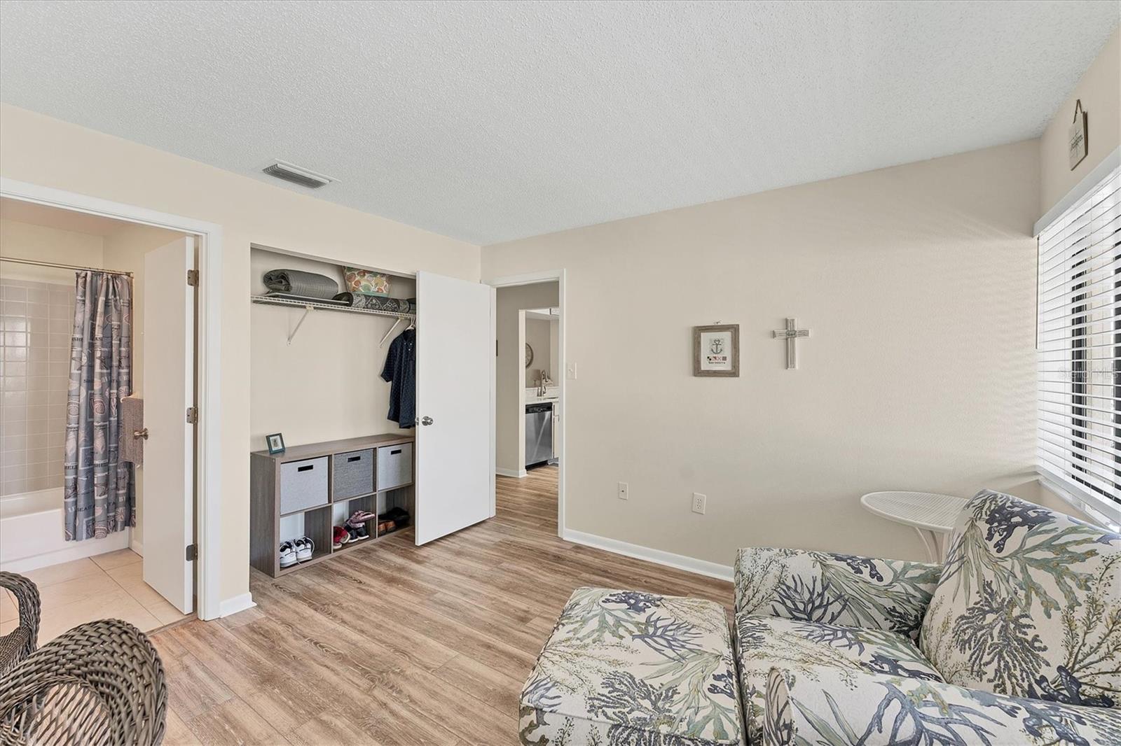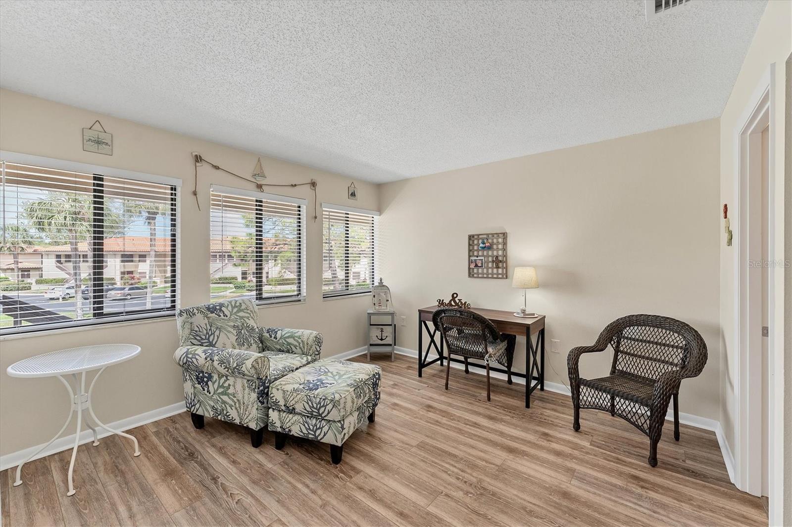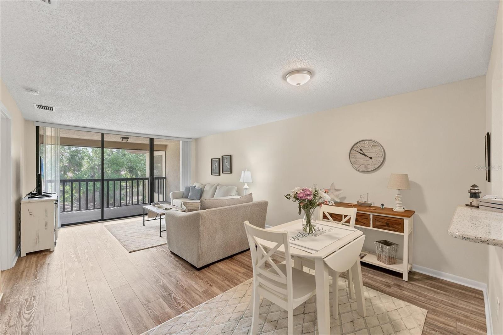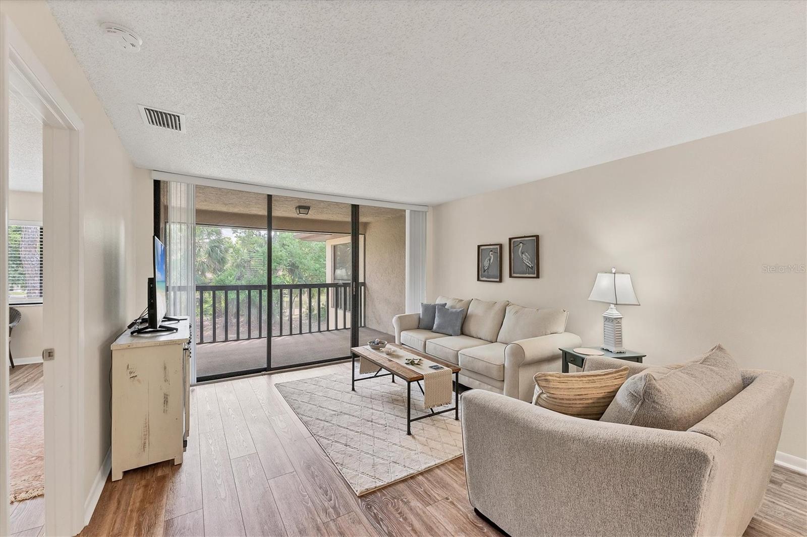 Immaculate, fully furnished 2-bedroom, 2-bath condo is the perfect retreat for a primary residence or vacation getaway. The warm tones and inviting ambiance create a cozy sanctuary, while expansive floor-to-ceiling patio doors seamlessly blend indoor and outdoor living. The spacious 13x8 covered screened-in lanai offers tranquil views of lush woodlands, creating the perfect setting to unwind. Just beyond, a scenic walking path leads to a peaceful pond with a park bench, an ideal spot for morning coffee or evening relaxation. INTERIOR: This 2nd-floor, middle unit is light and bright, and offers brand-new luxury vinyl flooring throughout, adding both style and durability. The spacious 12x17 master bedroom offers two closets and sliders to the screened lanai. The kitchen is open to the main living area and offers stainless steel appliances, including a Kenmore refrigerator, stove, and dishwasher, along with a 1/3 HP heavy-duty garbage disposal—perfect for easy meal prep and cleanup. Additional highlights include an A/C installed in 2019 and a Hot Water Heater installed in 2020, ensuring comfort and efficiency. Enjoy a maintenance-free lifestyle, where exterior upkeep—including the roof—is taken care of for you. COMMUNITY: The Meadows is renowned for its very active, friendly, safe, and beautifully maintained expansive tropical environment where all owners have access to the Community Lifestyle & Wellness Facility: (Fitness/Gym, Pickleball, Pool, Spa, Walking Trails, Parks, and Activities Director who organizes Health Seminars and Friendly Events. Owners have access to tennis (pay-as-you-play). NEARBY: Nathan Benderson Park 3.5 walking/bike path and events, the upcoming Mote SEA Aquarium, Sarasota Orchestra, Whole Foods, Fresh Market, Trader Joe’s, and The Mall at University Town Center, a world-class shopping, entertainment, and dining destination. A short drive to Sarasota’s stunning beaches and vibrant downtown. Don't miss this opportunity to own your slice of paradise. Book your showing today, and ask about the minor furniture exclusions.