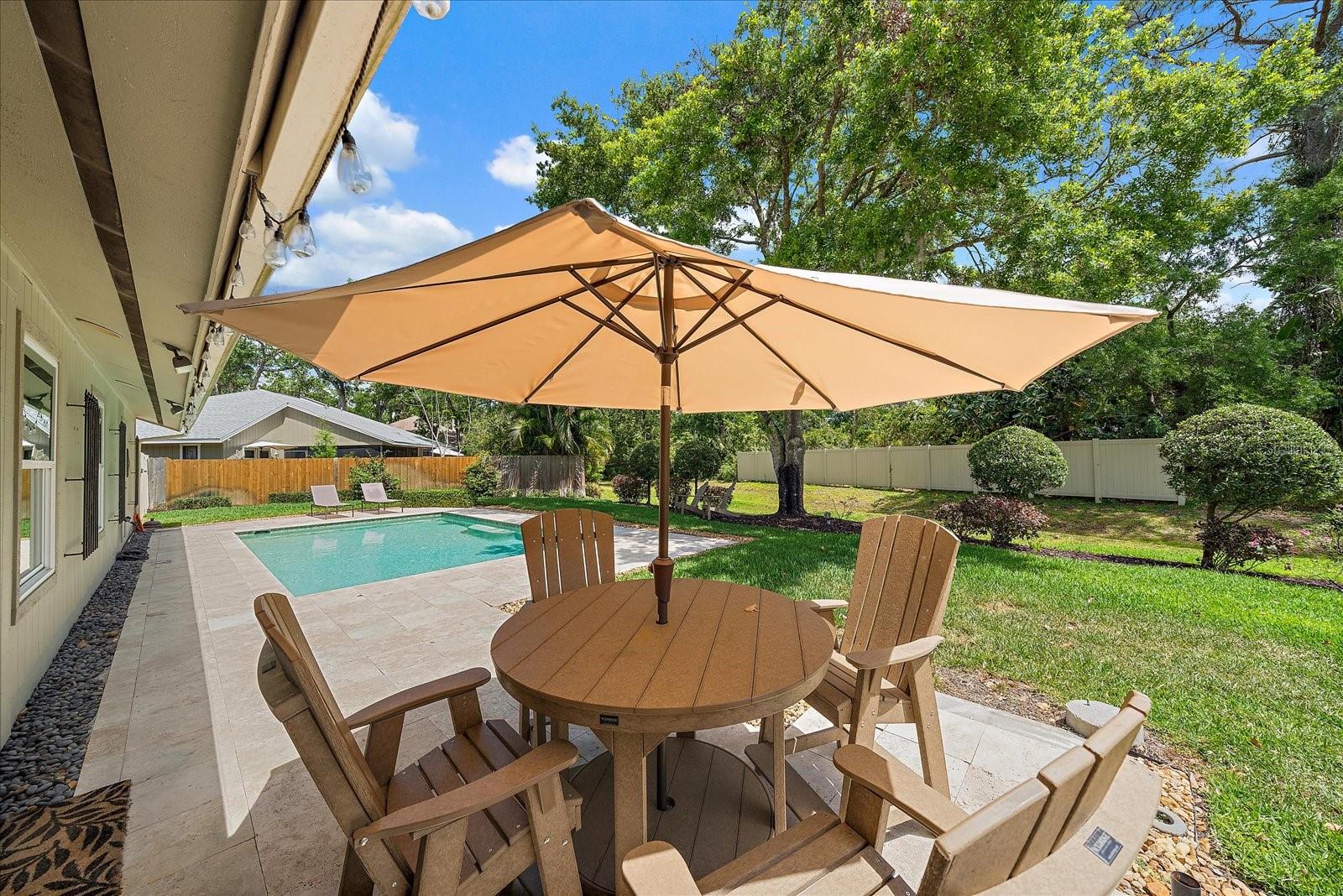 Act quickly to secure this exceptional 3-bedroom, 2-bathroom furnished pool home in Sarasota's tranquil Greystone neighborhood. Situated on a peaceful dead-end street with no through traffic, this property offers both privacy and convenience. The inviting covered front porch is perfect for morning coffees. Inside, vaulted ceilings enhance the spaciousness of the open floor plan, which includes an eat-in kitchen and a large walk-in pantry. The expansive primary suite features a bathroom that opens directly to the pool deck, doubling as a convenient pool bath. Outdoor enthusiasts will appreciate the outdoor kitchen with a BBQ grill, ideal for entertaining. The property also boasts a 2-car garage. Recent upgrades include energy-efficient, hurricane-rated impact windows and doors, providing both safety and peace of mind. Located approximately 6 miles from downtown Sarasota and just 8 miles from the pristine Siesta Key Beach, this home offers easy access to I-75 for commuting. Nearby amenities include shopping centers, diverse dining options, and parks, ensuring all your needs are met within a short drive. Don't miss this opportunity—schedule your showing today!