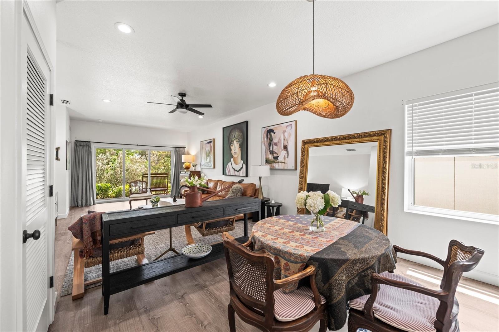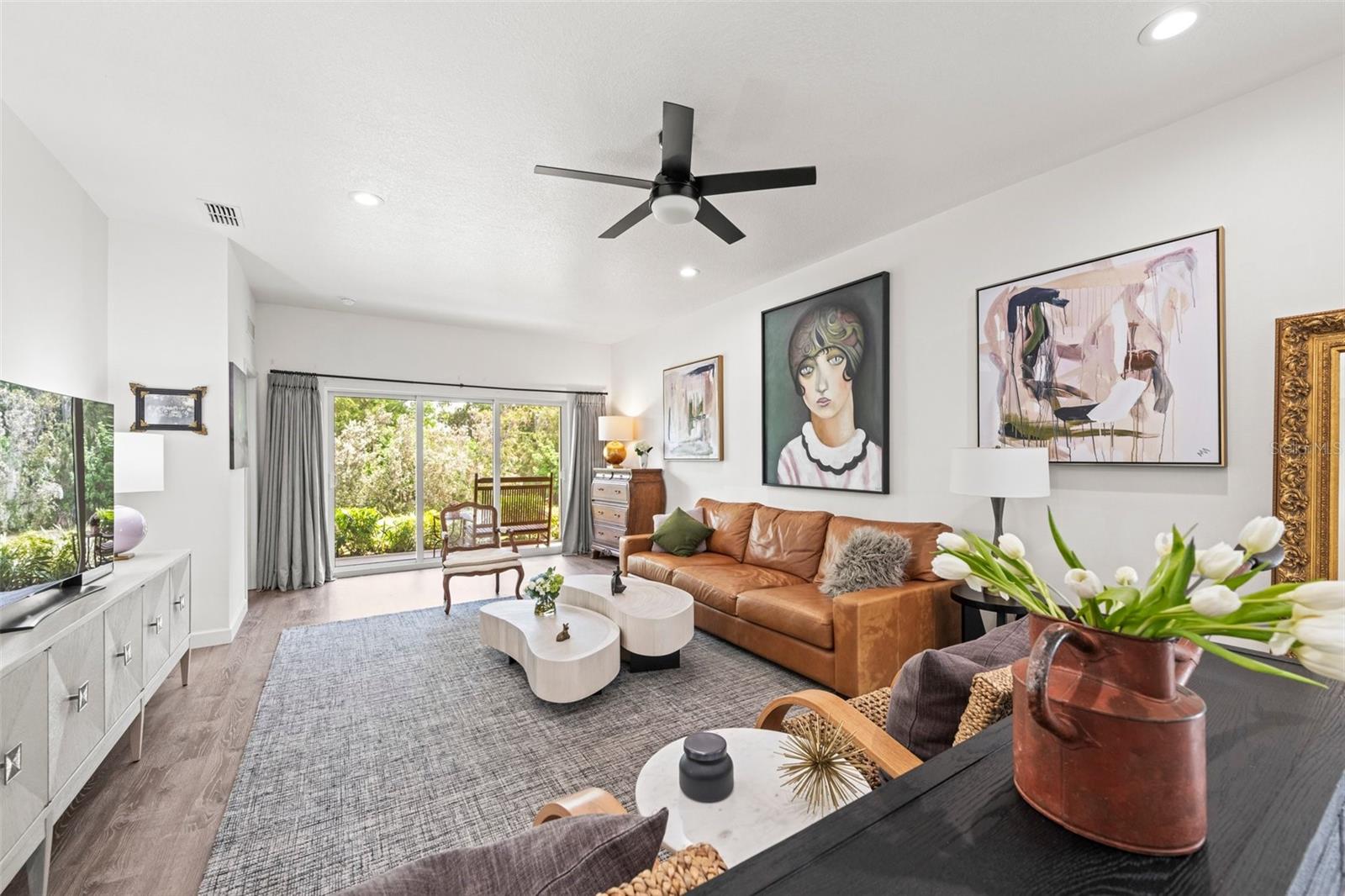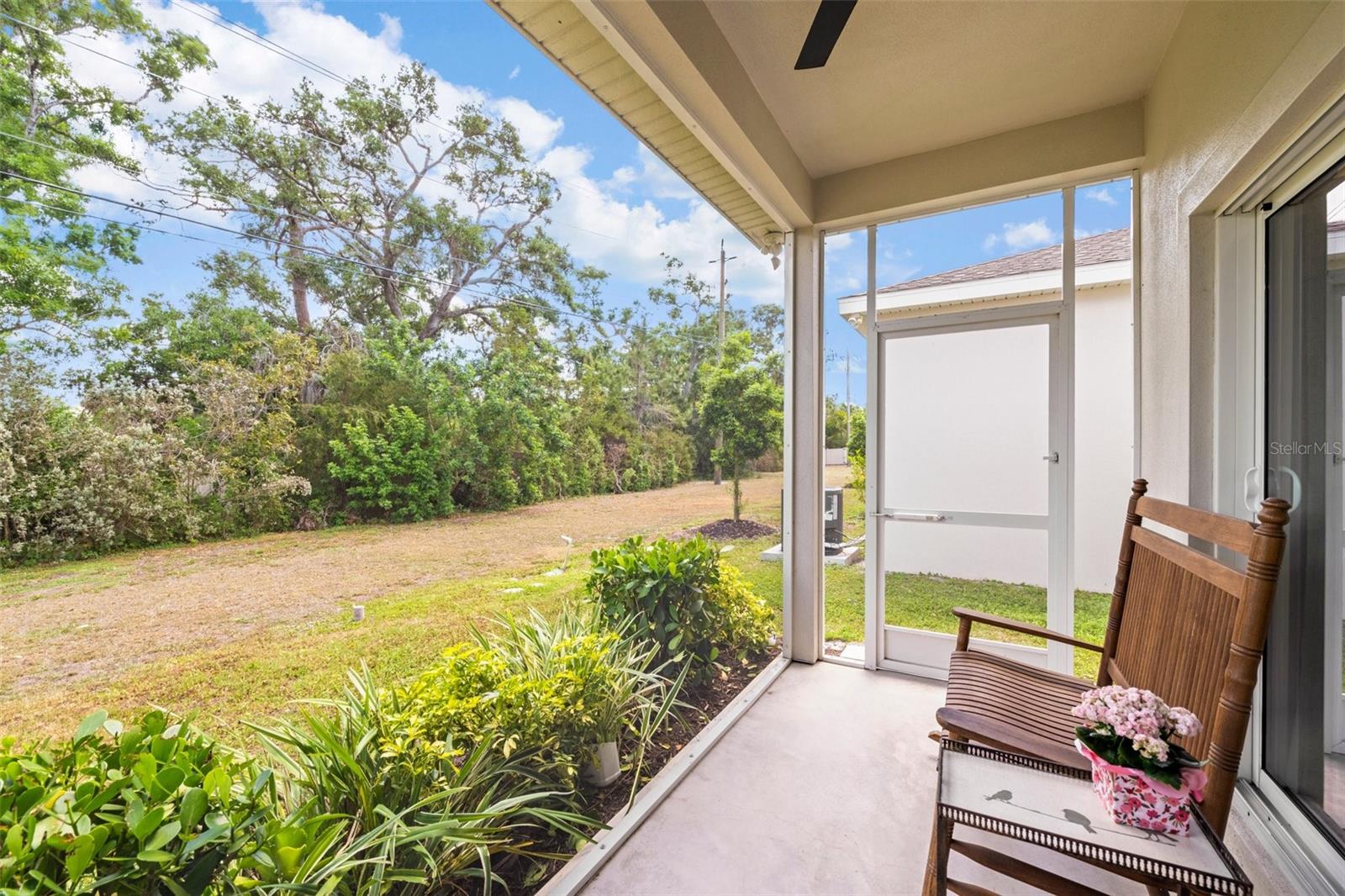 This is a seller paid rate-buydown that reduces the buyer's interest rate and monthly payment. Terms apply, see disclosures for more information™. Tucked at the end of a quiet cul-de-sac and bordering a tranquil wildlife preserve, this 3-bedroom, 2-bathroom home with a 2-car garage offers comfort, charm, and true peace of mind. From the moment you step inside, you'll appreciate the open-concept design, high ceilings, and durable vinyl flooring throughout—no carpet in sight. The kitchen is light and airy, featuring timeless white shaker-style cabinets, Corian countertops, a central island with bar seating, and brand-new stainless steel appliances that add both style and functionality. Enjoy your mornings on the screened lanai, sipping coffee while listening to the soothing songs of Cardinals, Blue Jays, and even a few colorful parrots. The backyard overlooks lush greenery and tall trees, creating a private, serene retreat where you might spot cottontail bunnies or even a pair of owls settling in for the evening. This home was built to last with Insulated Concrete Form (ICF) construction and impact-resistant hurricane windows and doors. It's elevated and secure, offering peace of mind during storm season. Additional touches like elegant lighting and thoughtfully chosen drapes give the space a cozy, welcoming feel. Located in the sought-after gated community of Hammock Place, where homes rarely come available, you'll enjoy a low HOA that includes lawn maintenance. This ideal Sarasota location puts you just minutes from I-75, shopping at UTC, vibrant downtown, and some of the area’s most beautiful beaches.
