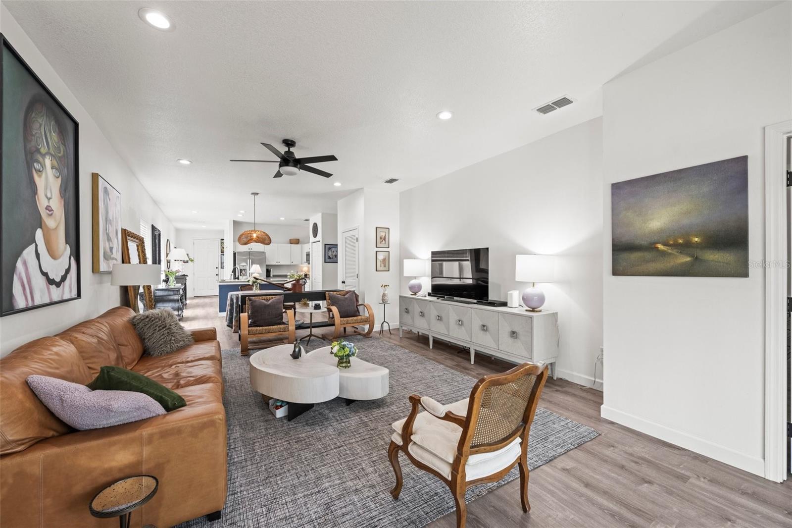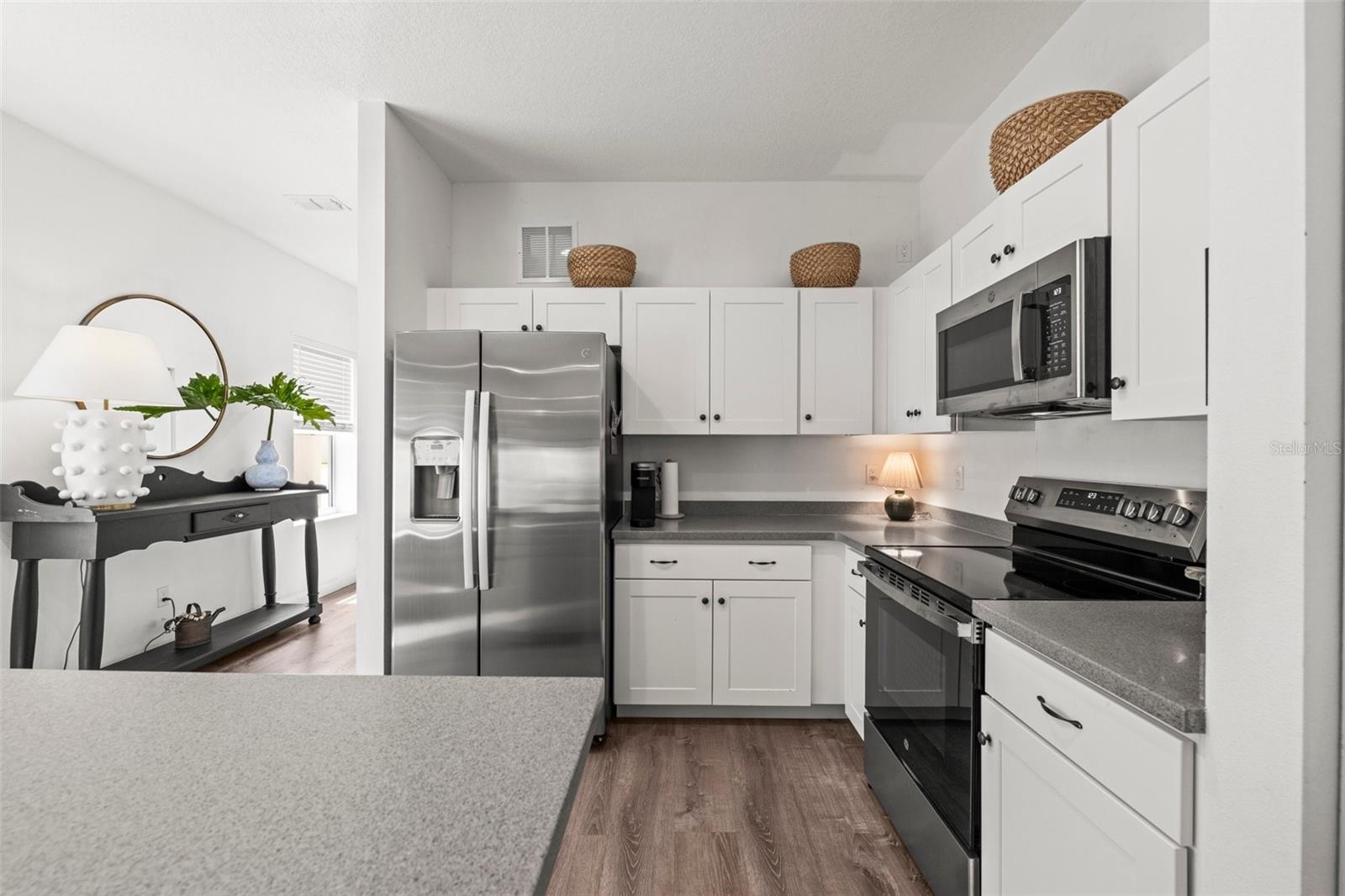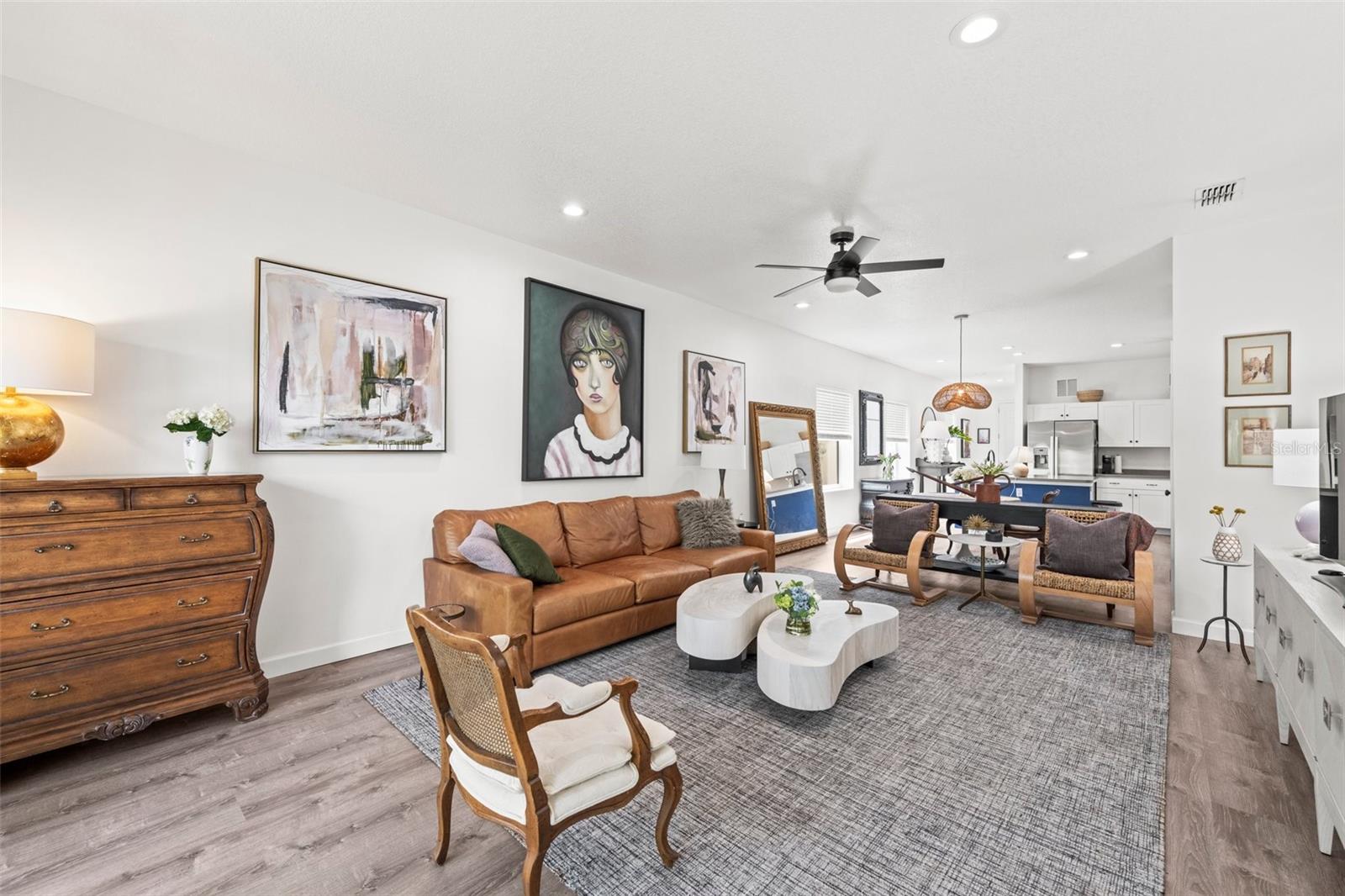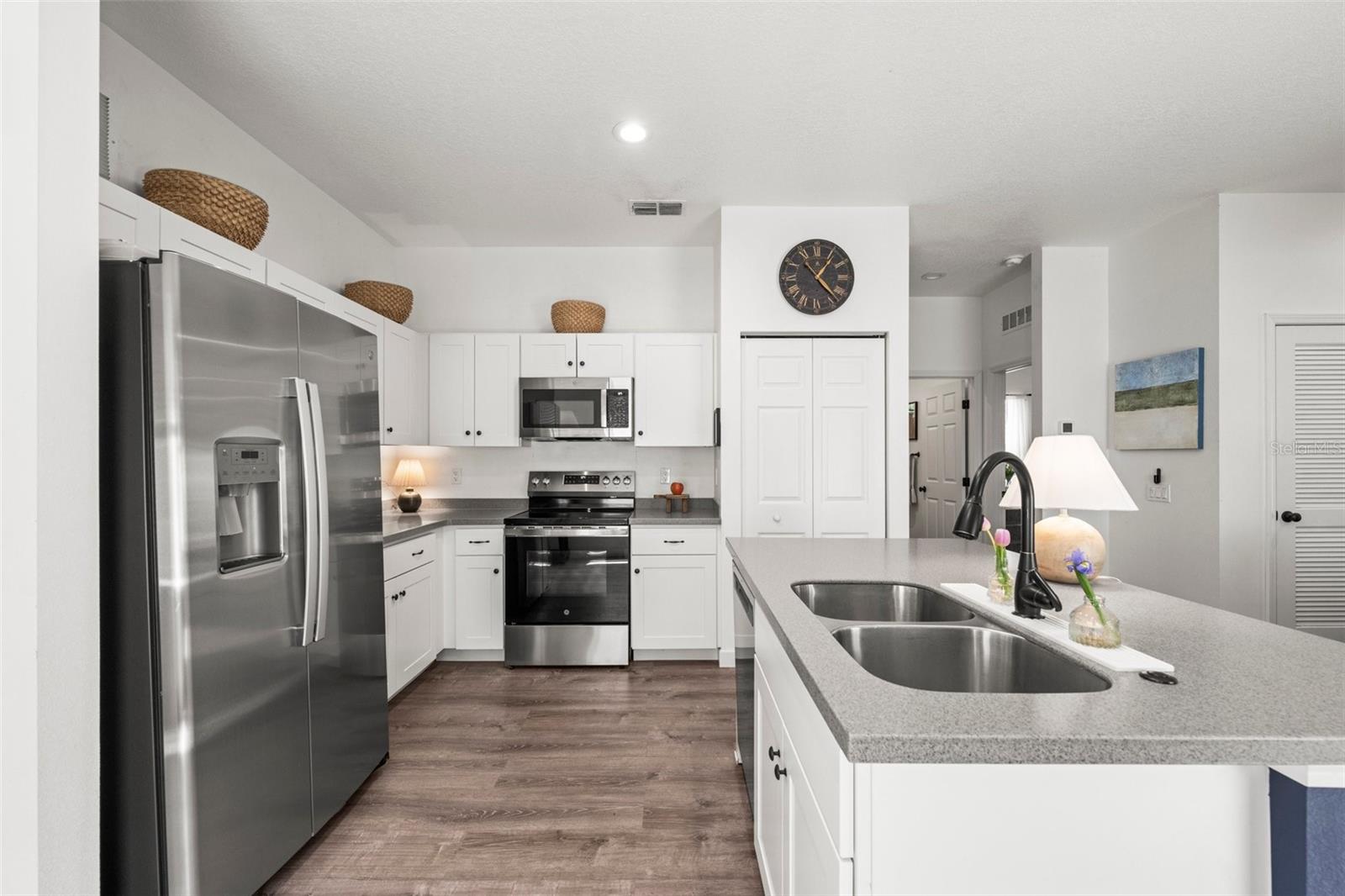 This is a seller paid rate-buydown that reduces the buyer's interest rate and monthly payment. Terms apply, see disclosures for more information™. Tucked at the end of a quiet cul-de-sac and bordering a tranquil wildlife preserve, this 3-bedroom, 2-bathroom home with a 2-car garage offers comfort, charm, and true peace of mind. From the moment you step inside, you'll appreciate the open-concept design, high ceilings, and durable vinyl flooring throughout—no carpet in sight. The kitchen is light and airy, featuring timeless white shaker-style cabinets, Corian countertops, a central island with bar seating, and brand-new stainless steel appliances that add both style and functionality. Enjoy your mornings on the screened lanai, sipping coffee while listening to the soothing songs of Cardinals, Blue Jays, and even a few colorful parrots. The backyard overlooks lush greenery and tall trees, creating a private, serene retreat where you might spot cottontail bunnies or even a pair of owls settling in for the evening. This home was built to last with Insulated Concrete Form (ICF) construction and impact-resistant hurricane windows and doors. It's elevated and secure, offering peace of mind during storm season. Additional touches like elegant lighting and thoughtfully chosen drapes give the space a cozy, welcoming feel. Located in the sought-after gated community of Hammock Place, where homes rarely come available, you'll enjoy a low HOA that includes lawn maintenance. This ideal Sarasota location puts you just minutes from I-75, shopping at UTC, vibrant downtown, and some of the area’s most beautiful beaches.
