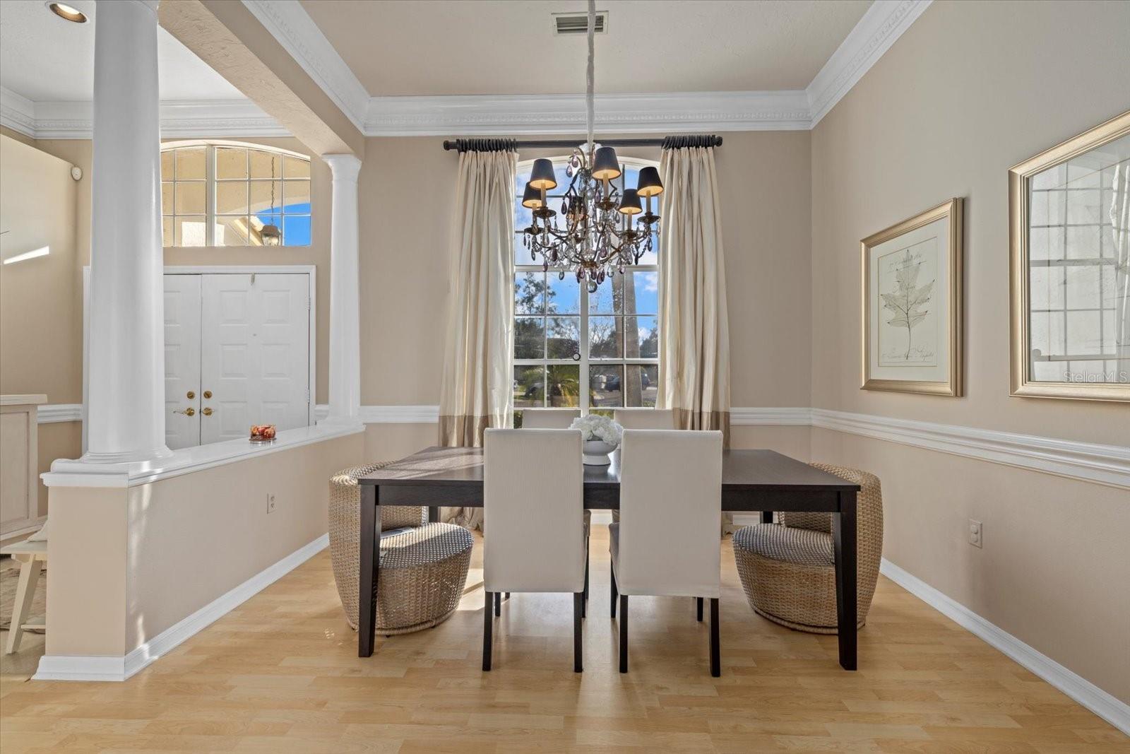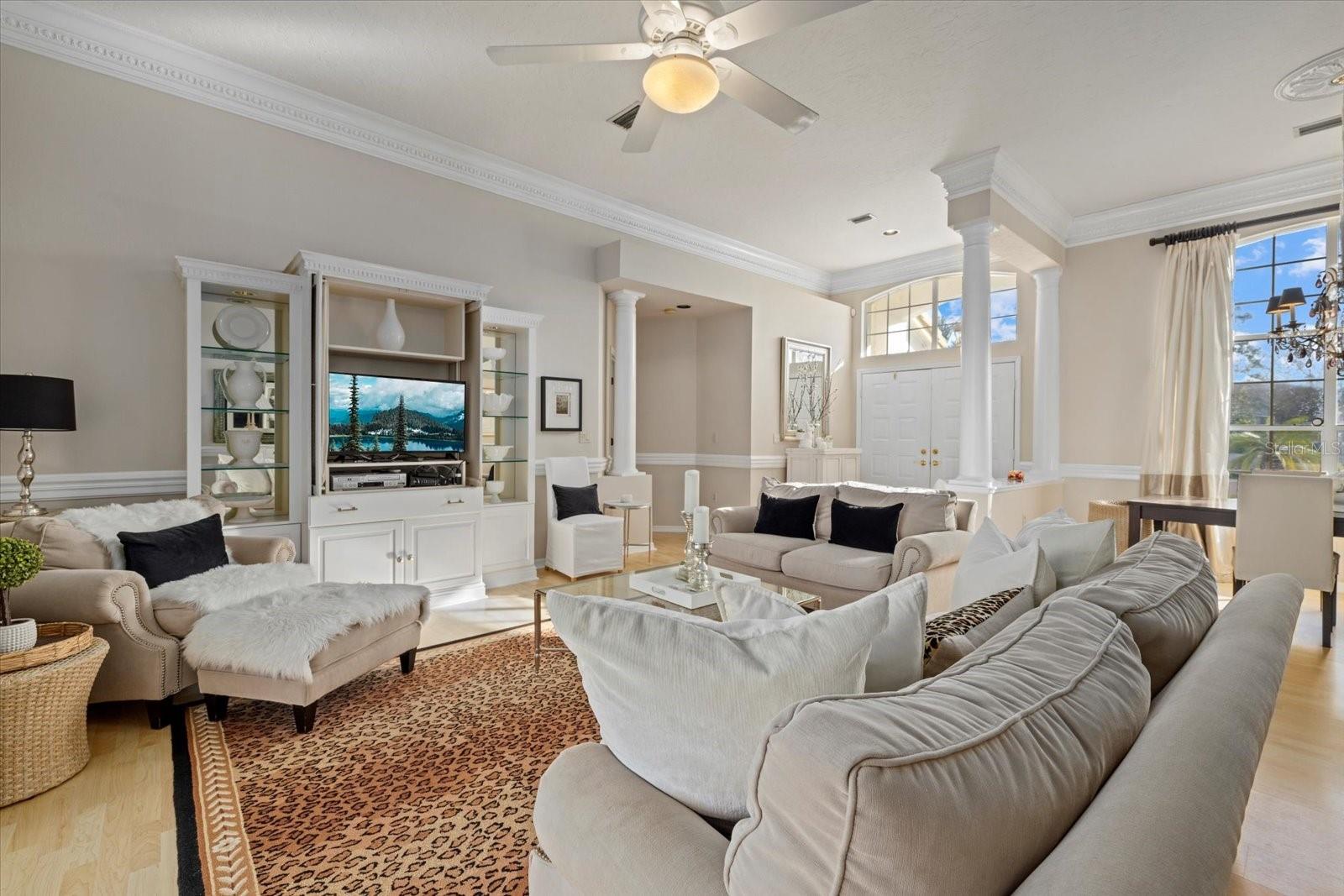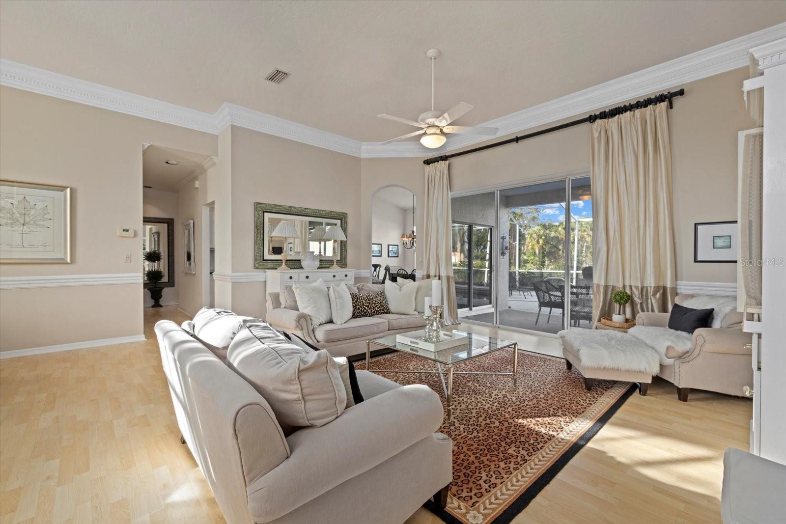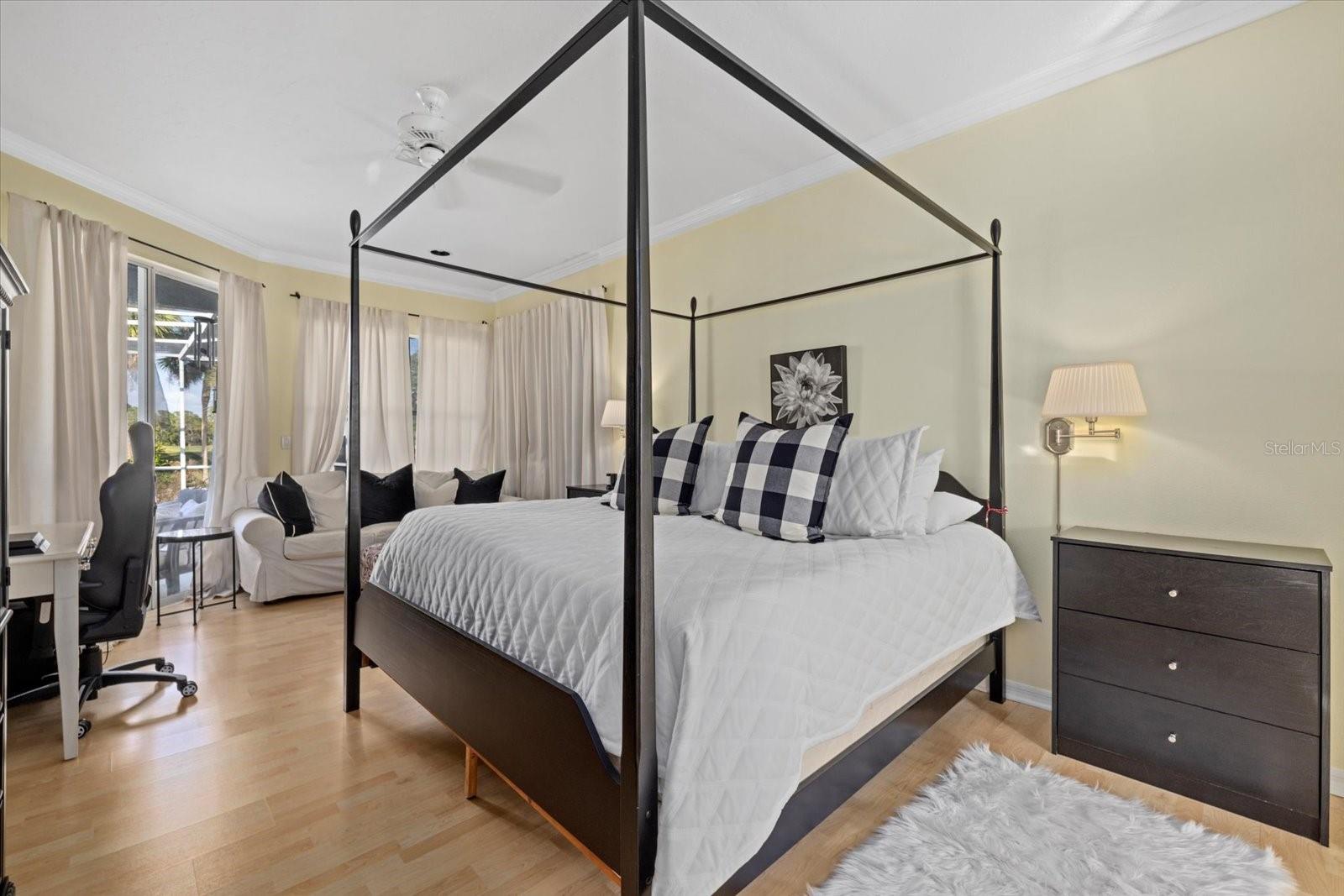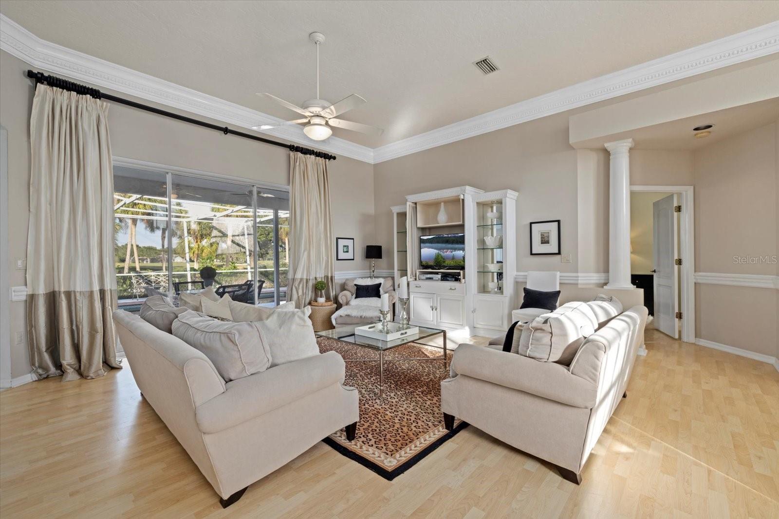 Motivated Seller, reviewing all offers. Welcome to a lifestyle of luxury and tranquility in this stunning home, located in the Meadows Country Club community. Enjoy expansive golf course and serene lake views from your beautifully designed residence, featuring custom architectural details like hand-carved crown molding and 10’ ceilings. The open layout of the great room and dining room offers ample space for entertaining, while disappearing sliders seamlessly blend indoor and outdoor living, leading to the pool and private lanai. The chef’s kitchen boasts black granite counters, a gourmet sink, and a breakfast bar, with a casual dining area offering breathtaking views. The owner’s suite is a peaceful retreat, complete with a sitting area, walk-in closets, and a spa-like bath. A separate guest wing includes two bedrooms and a shared bath, offering privacy for family or visitors. Residency in The Meadows grants access to the Renaissance Access Plan, offering premier amenities, with enhanced country club memberships available. You’re just minutes from UTC, Benderson Park, downtown Sarasota, and the Gulf Coast’s beautiful beaches. This move-in ready home is a true statement of refined living, with the option to purchase turnkey with French neoclassical furnishings and accessories under a separate bill of sale.