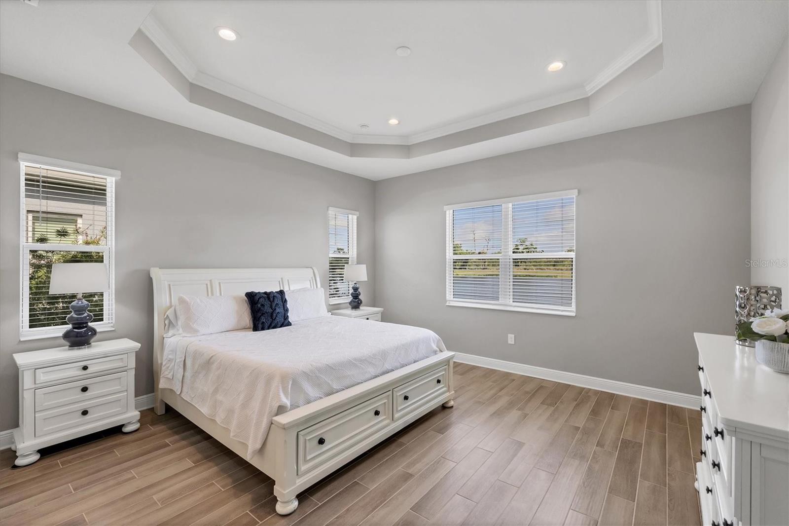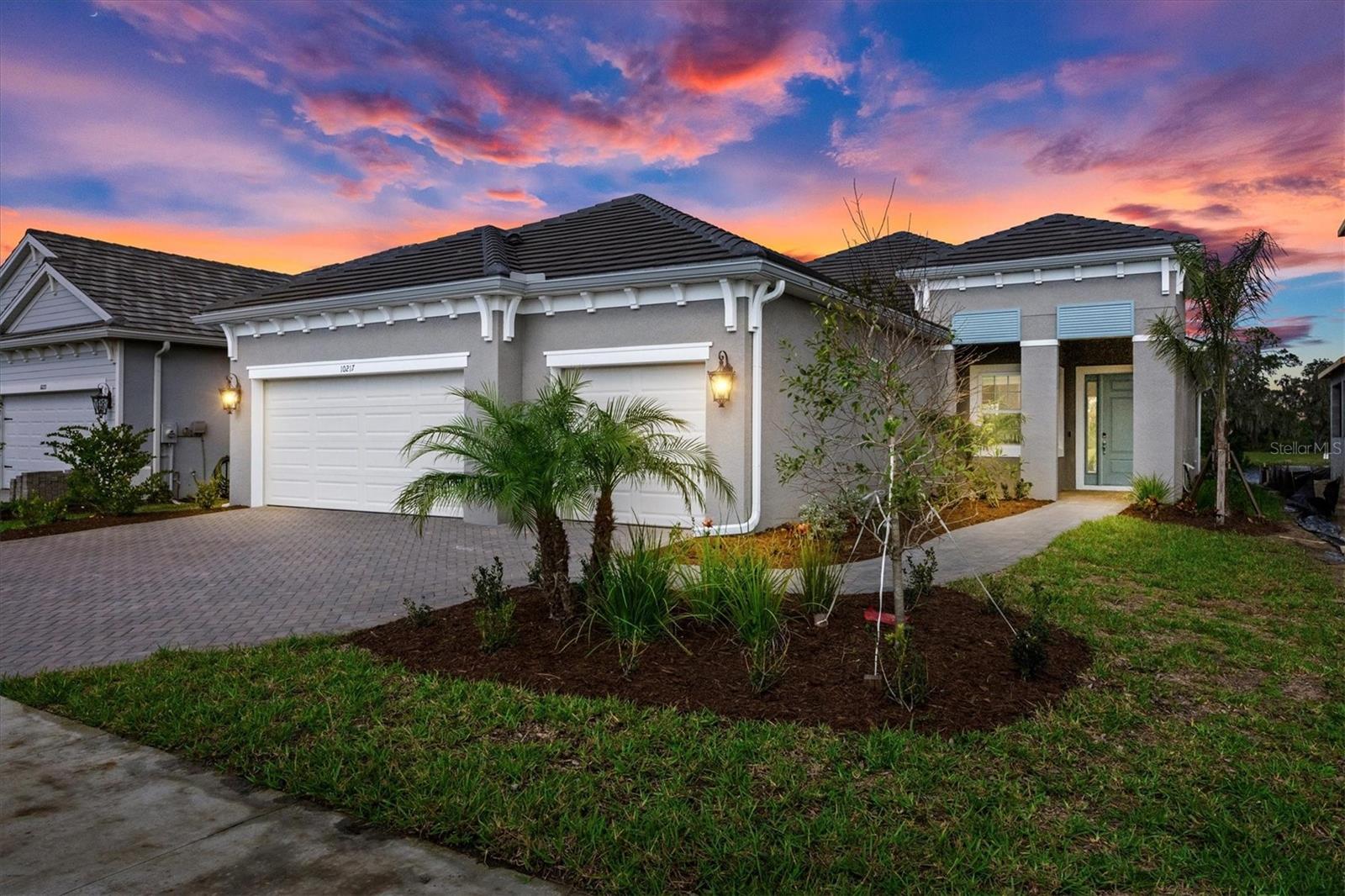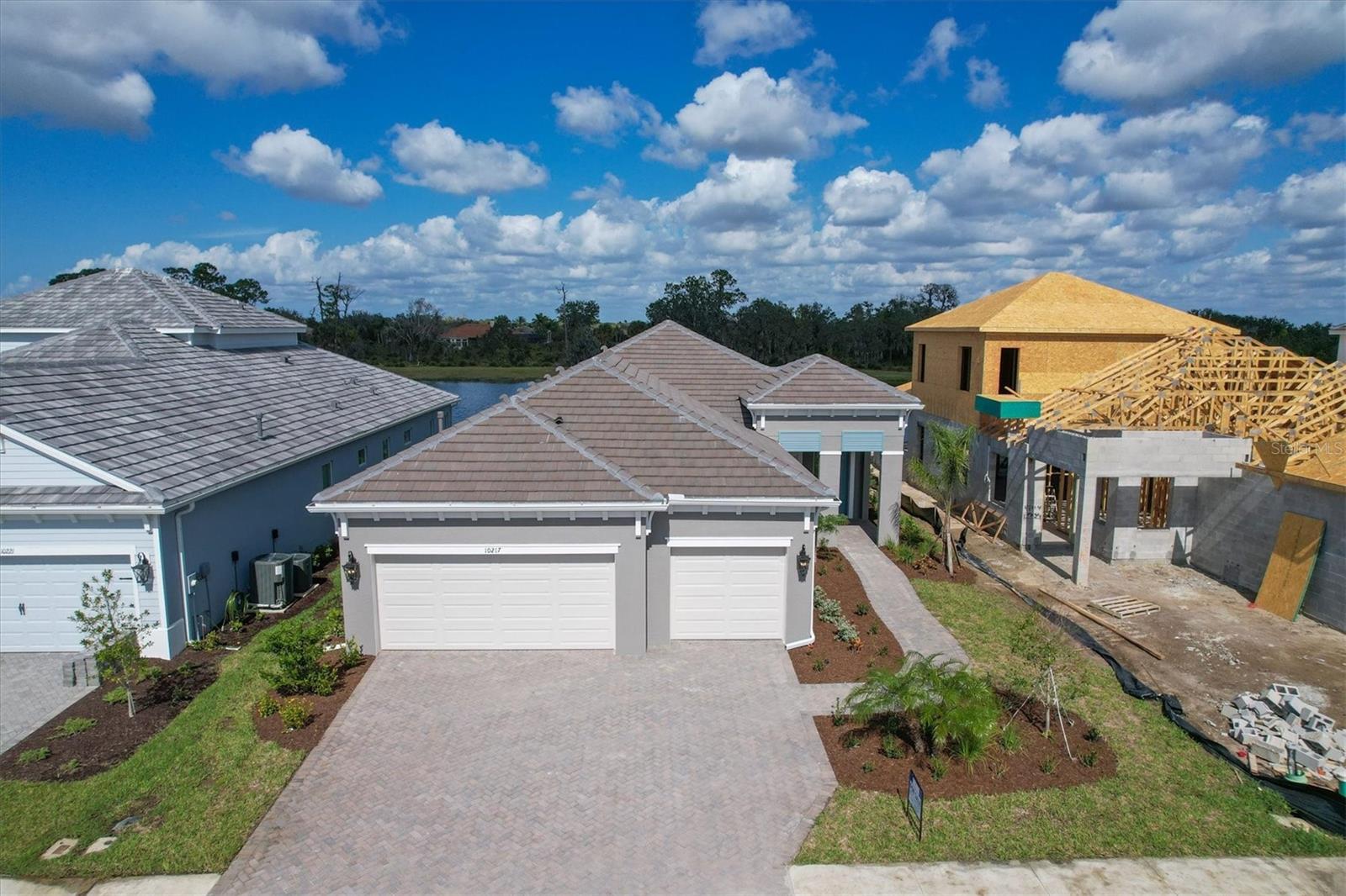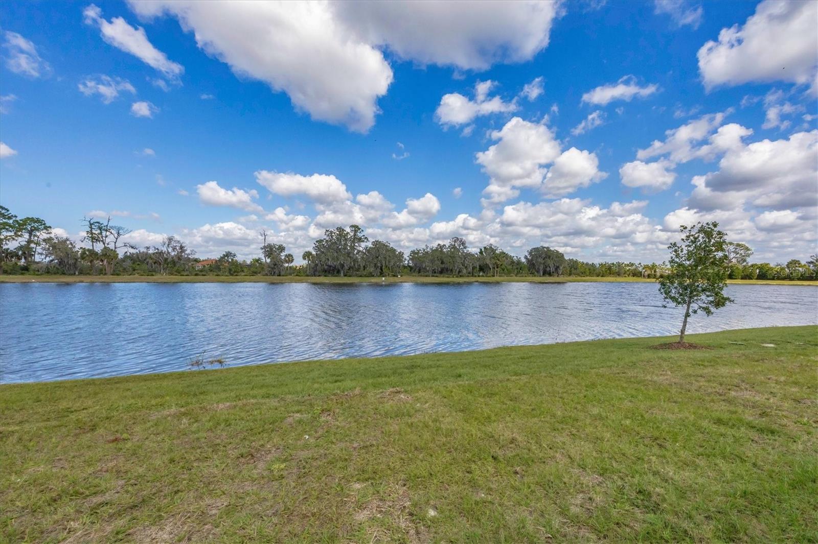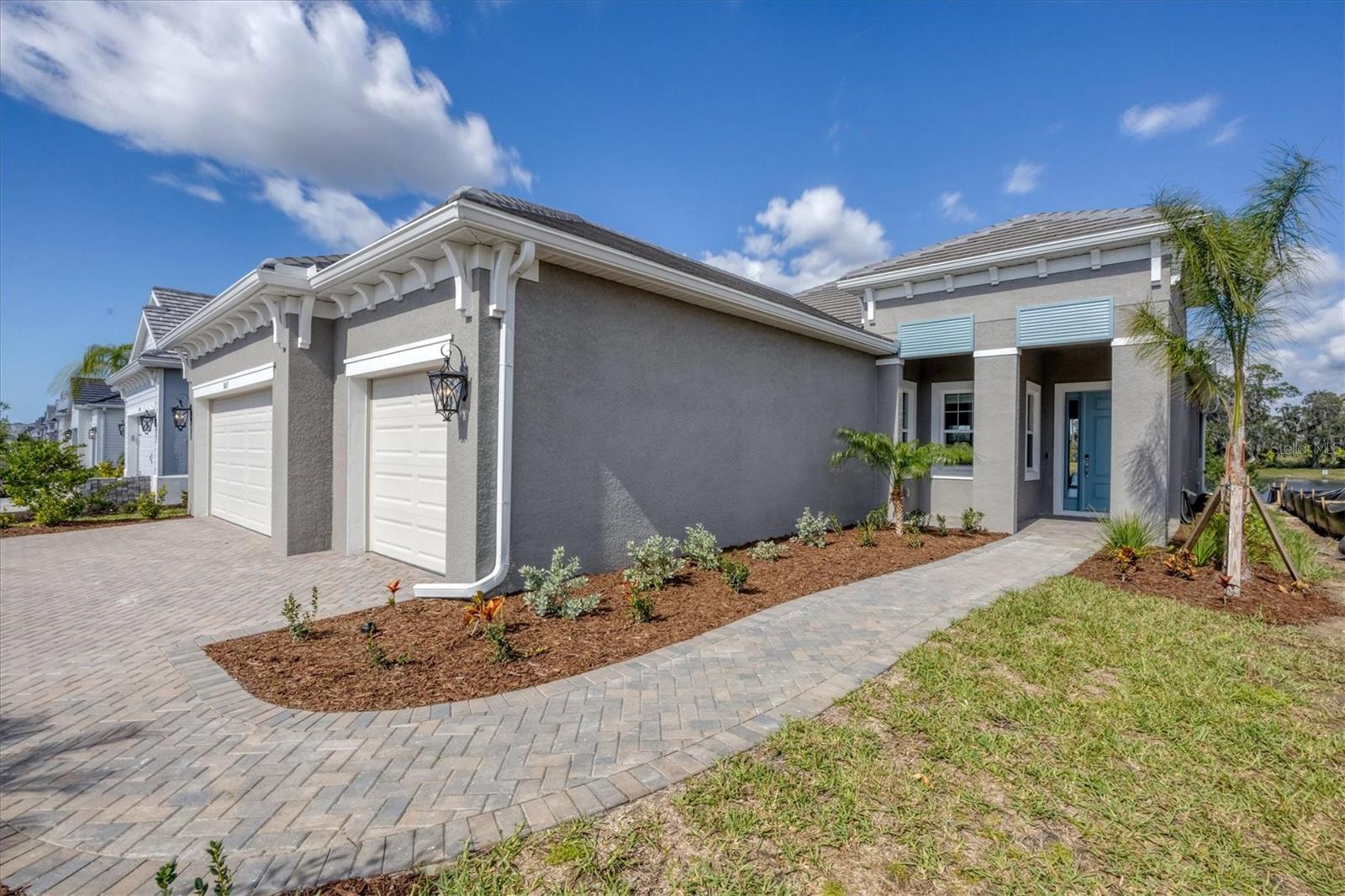 Experience luxurious, maintenance-free living in this stunning coastal-inspired home in Grand Park, one of Sarasota’s premier communities! Located at 10217 Canaveral Circle, this nearly brand-new 3-bedroom, 2.5-bath home with a large den sits on one of the most breathtaking waterfront lots in the neighborhood—offering expansive lake views with no homes directly across the water. Inside, you’ll find neutral tile flooring throughout, soaring high ceilings with elegant moldings and tray details, and an open-concept chef’s kitchen featuring quartz countertops, shaker cabinets, stainless steel appliances, a gas cooktop with a custom hood, and an oversized island—perfect for entertaining. The exterior is equally impressive, with a 3-car garage, tile roof, paver driveway, hurricane protections for windows and a spacious rear patio where you can enjoy serene water views. Plus, there’s ample room to add a private pool if desired. Grand Park offers resort-style amenities, including a brand-new clubhouse, state-of-the-art fitness center, two gorgeous pools, a boardroom, two tennis courts, four pickleball courts, a playground, a dog park, and massive sporting fields. Conveniently located near Twin Lakes Park, I-75, top-rated new schools and less than 10 miles to the award winning beaches of Siesta Key, this home is the perfect blend of elegance, comfort, and prime location. Don’t miss this rare opportunity—schedule your private tour today!