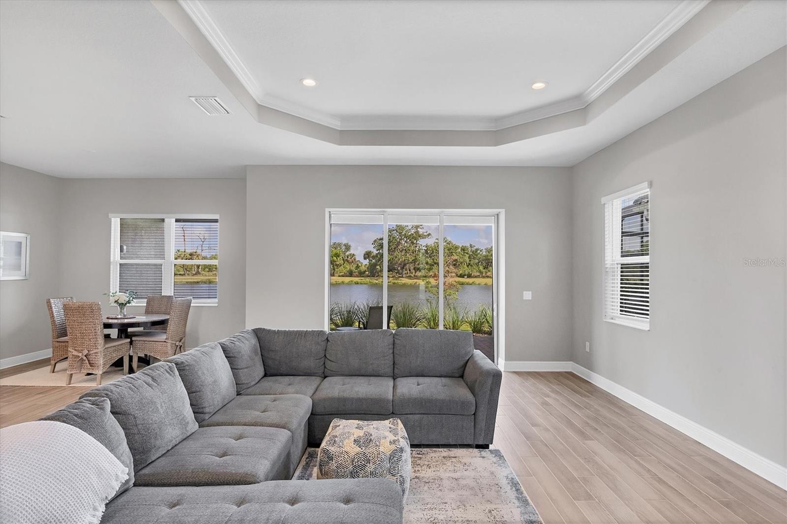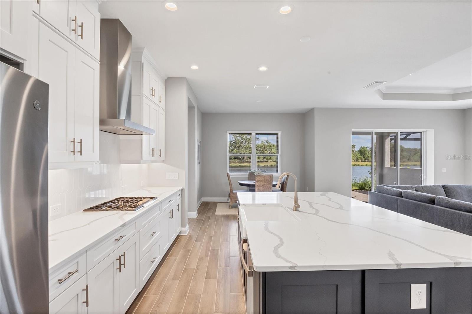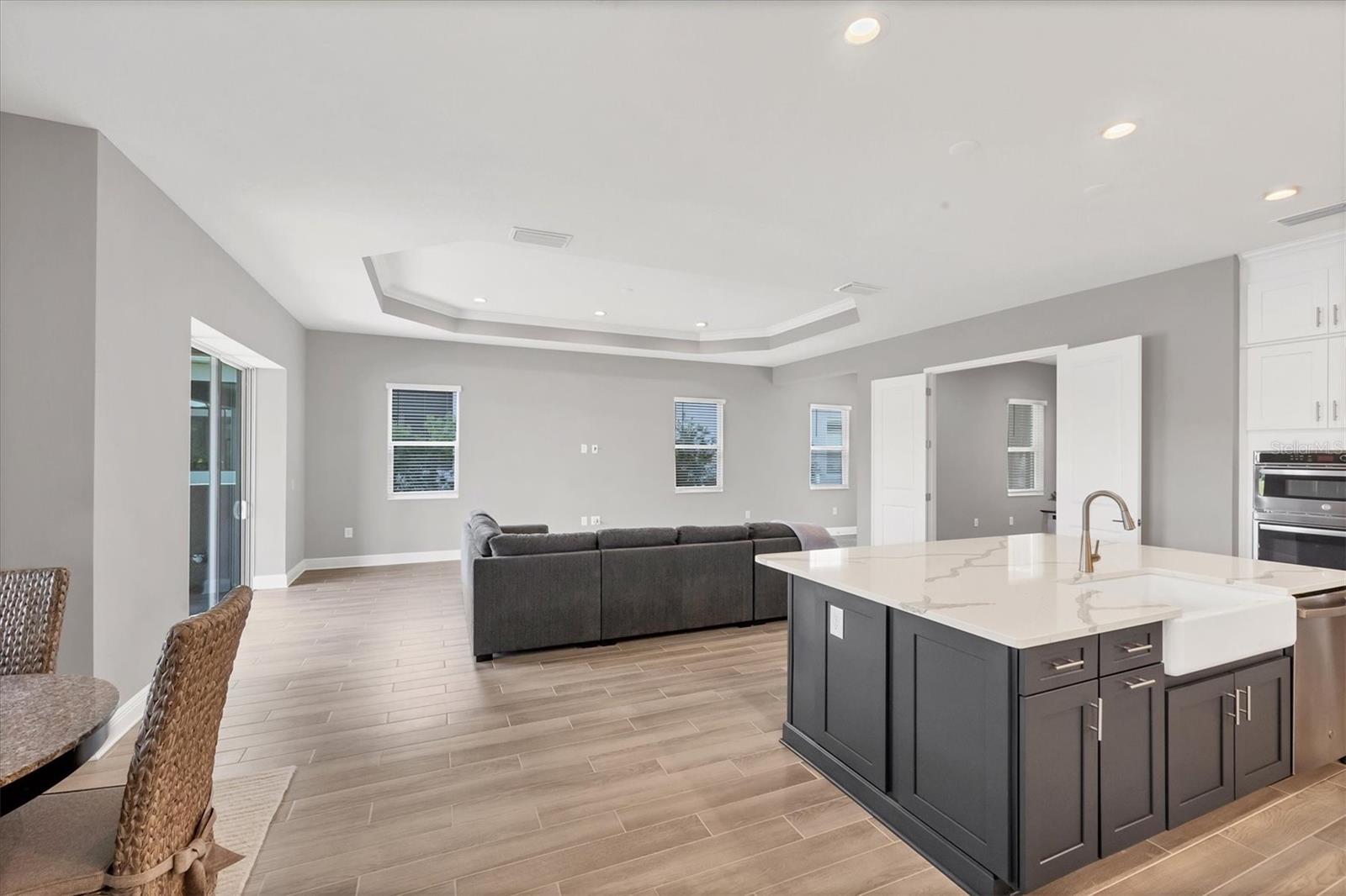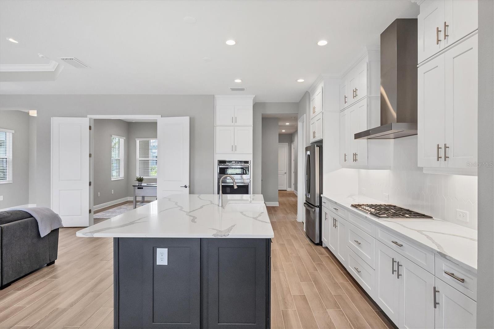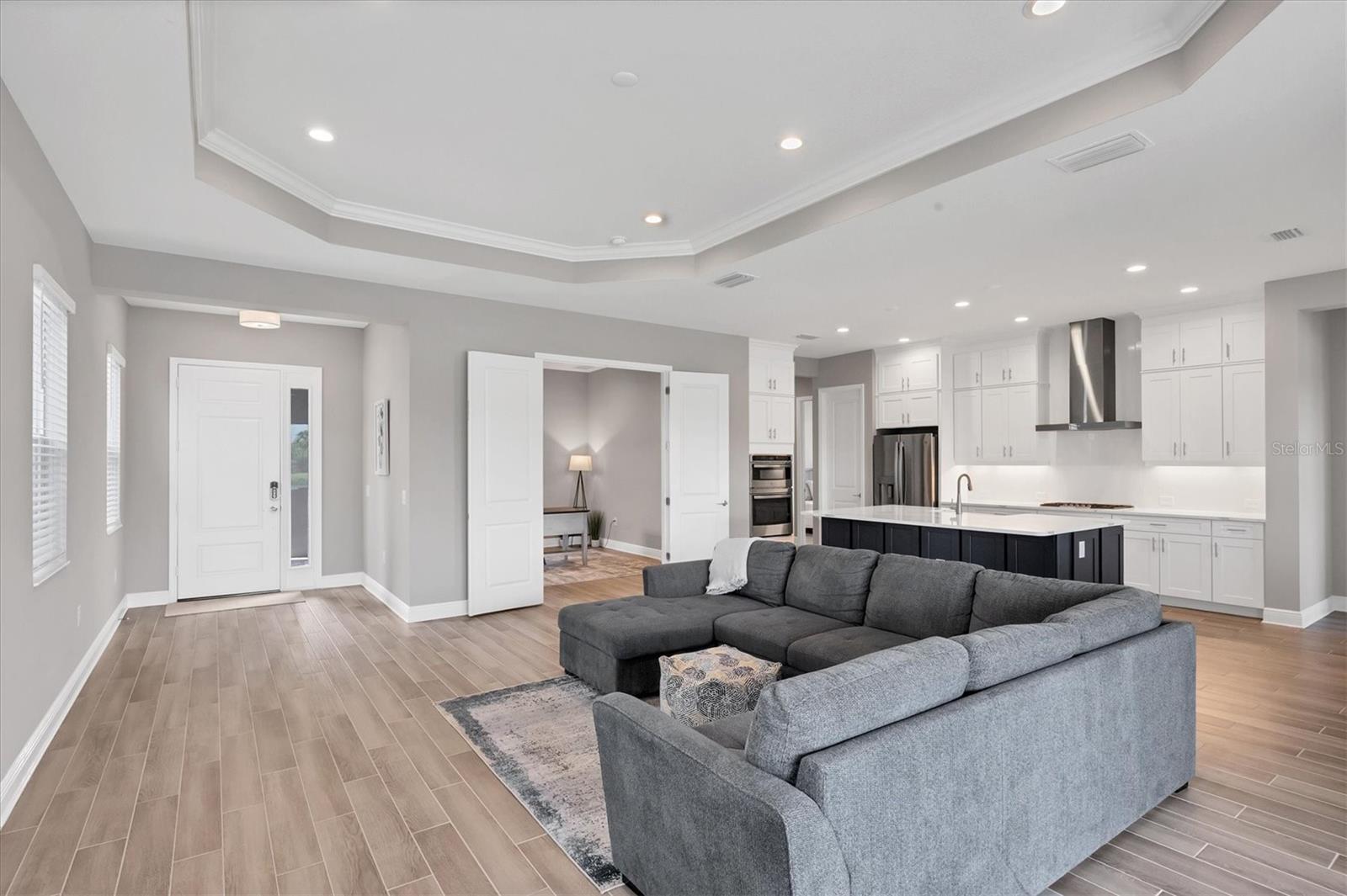 Experience luxurious, maintenance-free living in this stunning coastal-inspired home in Grand Park, one of Sarasota’s premier communities! Located at 10217 Canaveral Circle, this nearly brand-new 3-bedroom, 2.5-bath home with a large den sits on one of the most breathtaking waterfront lots in the neighborhood—offering expansive lake views with no homes directly across the water. Inside, you’ll find neutral tile flooring throughout, soaring high ceilings with elegant moldings and tray details, and an open-concept chef’s kitchen featuring quartz countertops, shaker cabinets, stainless steel appliances, a gas cooktop with a custom hood, and an oversized island—perfect for entertaining. The exterior is equally impressive, with a 3-car garage, tile roof, paver driveway, hurricane protections for windows and a spacious rear patio where you can enjoy serene water views. Plus, there’s ample room to add a private pool if desired. Grand Park offers resort-style amenities, including a brand-new clubhouse, state-of-the-art fitness center, two gorgeous pools, a boardroom, two tennis courts, four pickleball courts, a playground, a dog park, and massive sporting fields. Conveniently located near Twin Lakes Park, I-75, top-rated new schools and less than 10 miles to the award winning beaches of Siesta Key, this home is the perfect blend of elegance, comfort, and prime location. Don’t miss this rare opportunity—schedule your private tour today!