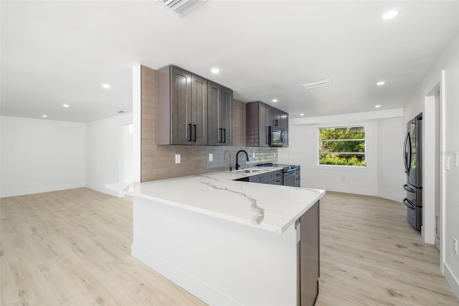 One or more photo(s) has been virtually staged. Modern charm meets energy efficiency at 7158 Leewynn Drive. Step into this beautifully updated three-bedroom, two-bath home offering 1,900 square feet under air and an open, airy layout filled with natural light from the floor-to-ceiling windows. Set on a generous .33-acre lot, there’s plenty of space to create your dream backyard oasis. Ample room for a pool, outdoor kitchen or garden escape. Key features include roof (2016) with fully paid-off solar panels. Enjoy electric bills under $30 a month. New air-conditioning system (2024) including all-new ductwork. Luxury vinyl plank flooring throughout. Stunning quartz countertops. New kitchen with stylish finishes. Two beautifully renovated bathrooms. Modern light fixtures throughout. New landscaping for fantastic curb appeal. Connected to public water, a $10,000 upgrade. *On septic, lower utility costs. Washer/dryer hookup available. Customize to your preference. In a prime Sarasota location, you’re just minutes from top-rated schools, shopping, dining and everything the Gulf Coast lifestyle has to offer. Don’t miss this move-in-ready gem with major upgrades already done for you. Just bring your furniture and décor, and start living your Florida dream!