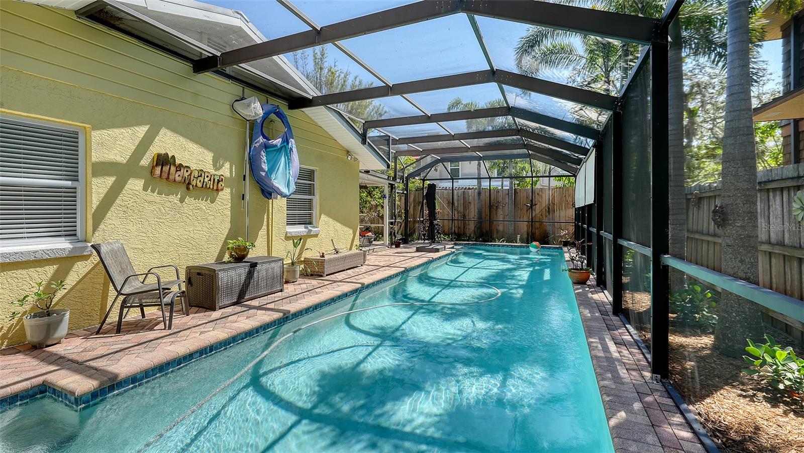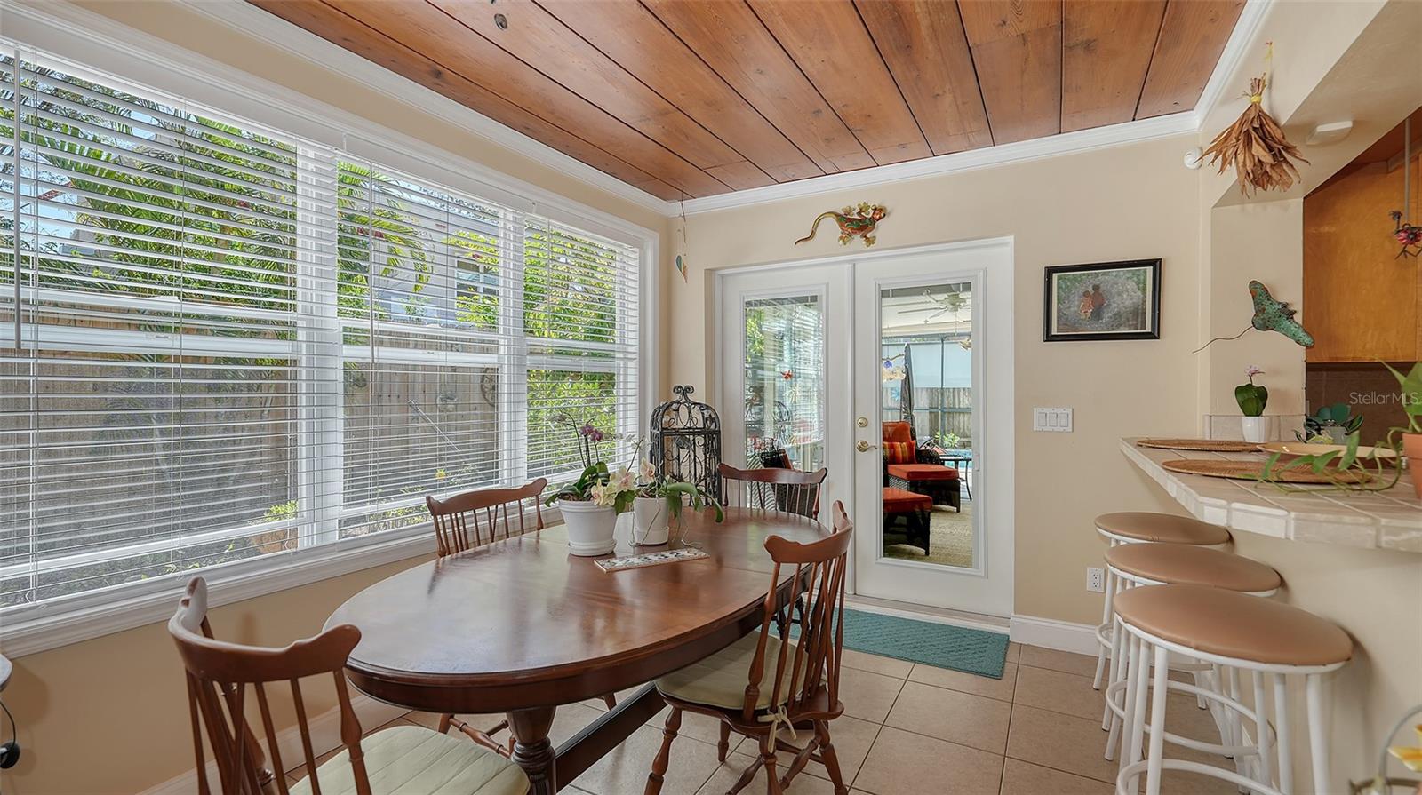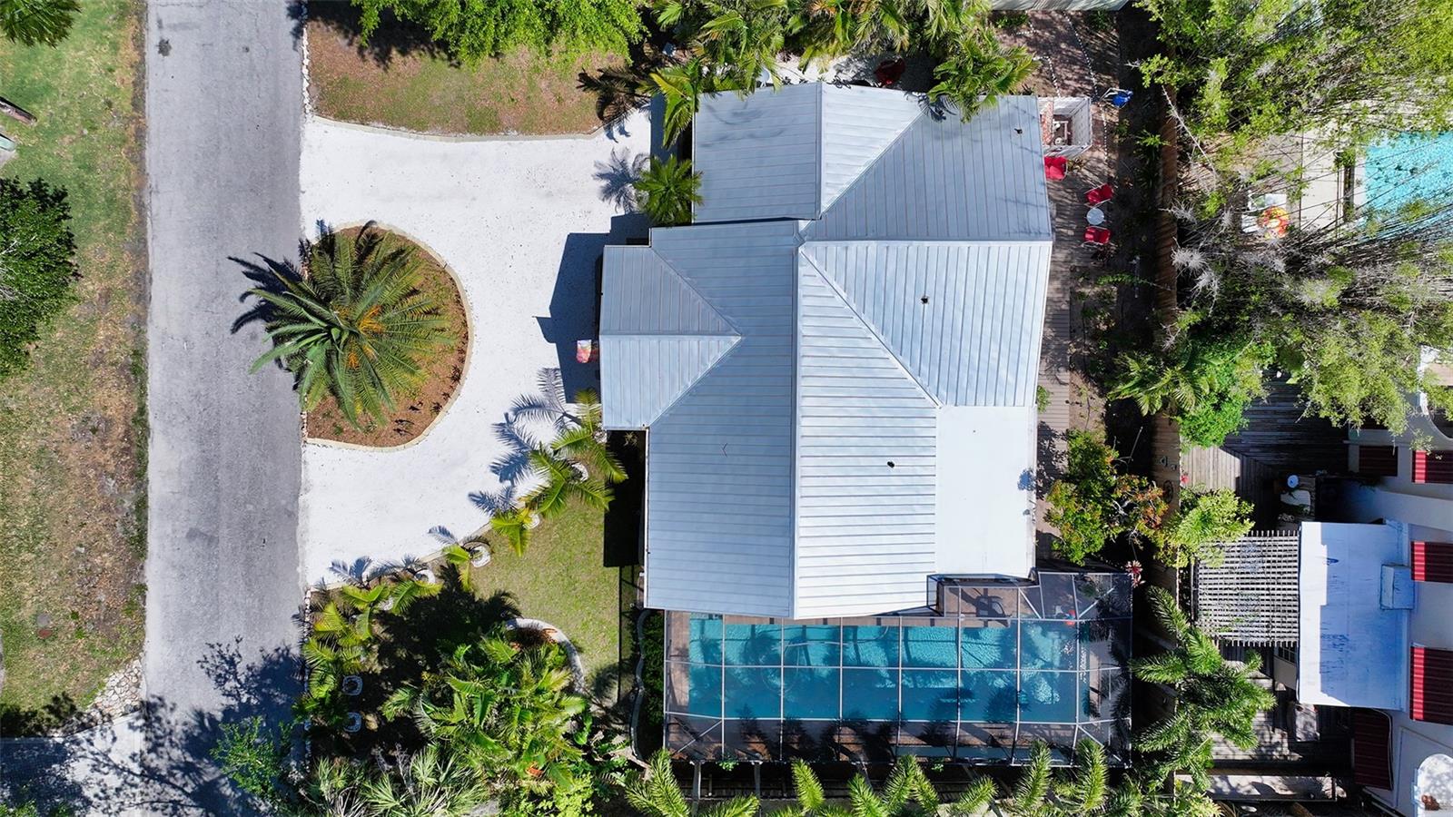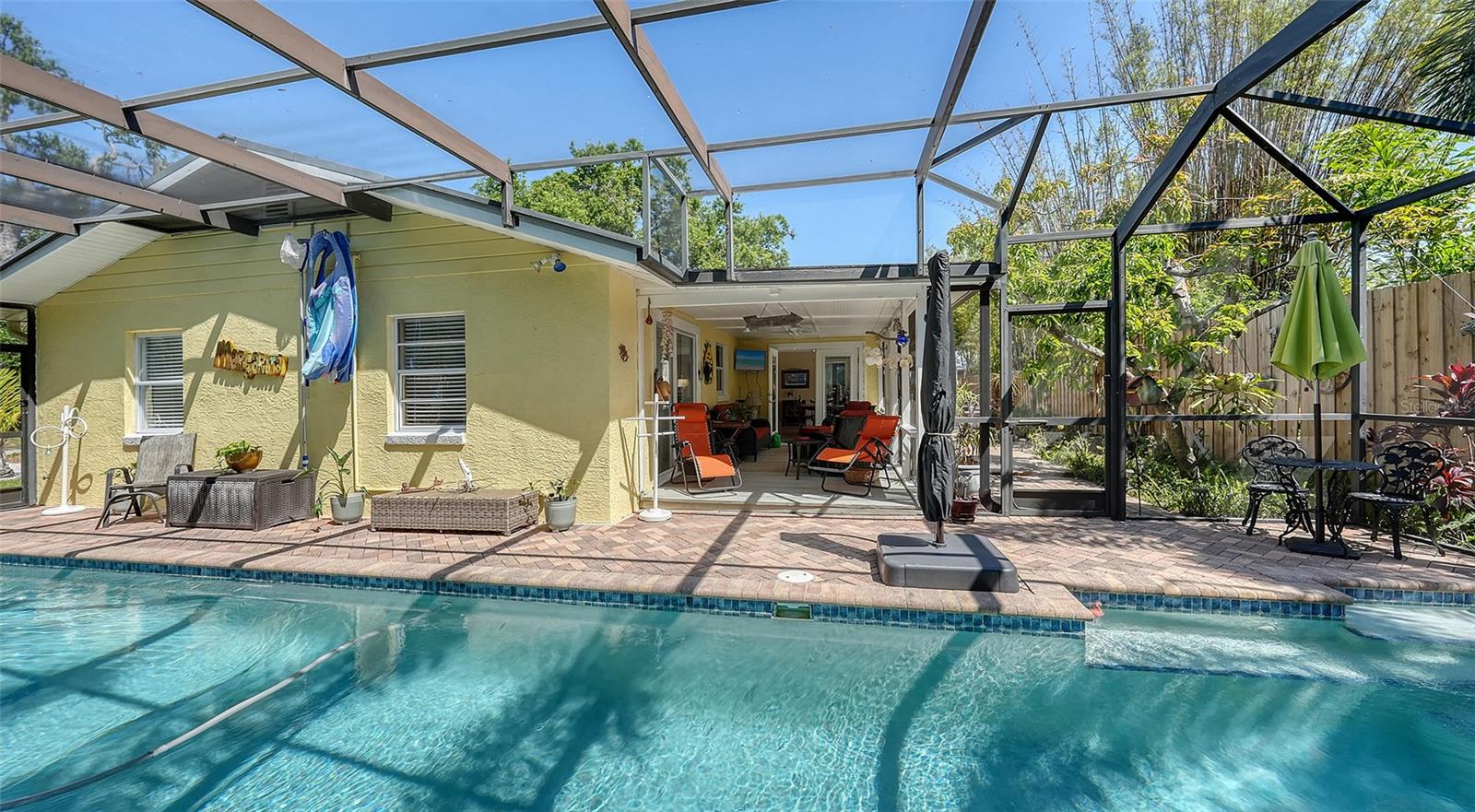 2332 Alameda Description - Broker owned & occupied immaculate pool home fully updated in best area of 'Indian Beach' with high and dry elevation. Large extra wide lot surrounded by trees with room to expand home. Front porch curb appeal, with metal roof and natural shell circular drive, leads into an open floorplan with split bedrooms. Windows and light throughout. Large eat-in kitchen with brand new Samsung Bespoke appliances, stone tile counters and solid wood cabinets. Open plan integrates the wood floor living room with tiled kitchen and a large sunroom dining area boasting wood ceiling where French doors lead to large screen porch and pool. Master suite has wood ceiling, bath with dual sinks/solid wood vanity and large walk-in shower plus French doors open to private outdoor sitting area. Large secondary bedrooms with built-ins, one with sliders opening on porch and pool. Large laundry room with wood ceilings. Back porch integrates with huge 12’x45’ screened party/lap pool that must be seen to appreciate. New pool pump and filtration plumbing. New porch roof 2023. Back yard has extensive decking with grilling/seating area and fully enclosed 4-season outdoor shower. Large 16’x12’ storage shed complete with electricity, lighting, peg board and built-in shelving. New A/C system with York 10-Year Warranty. Irrigation system with eco-friendly separate irrigation meter. New professional exterior paint. Plumbing updated through attic. An absolutely lovely setting in a home surrounded with oaks, palms and fruit-producing avocado tree. Walk to two bayfront parks. Five minutes to Publix, 10th Street Boat Ramp. Easy ride to airport, downtown, St. Armands and more.