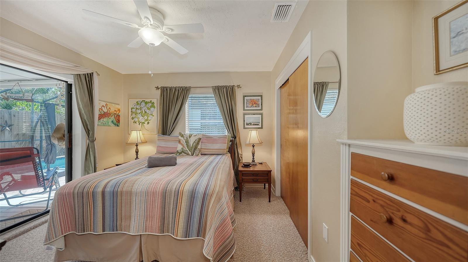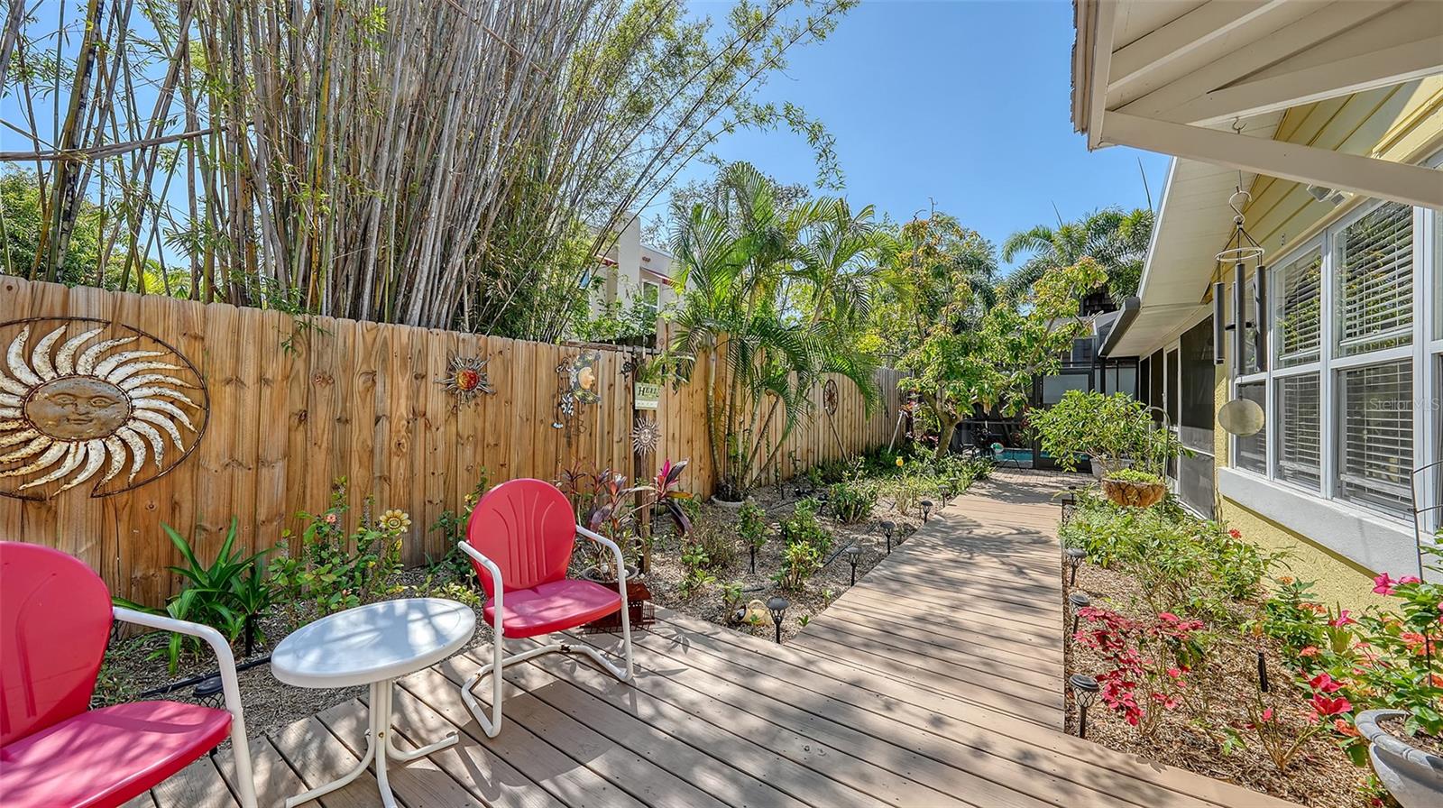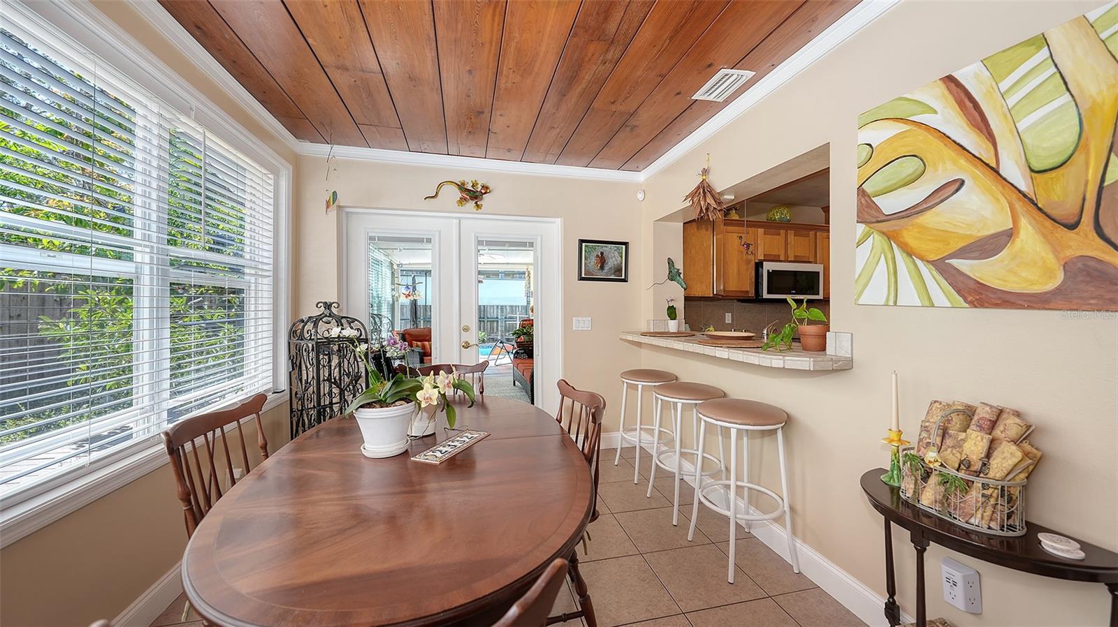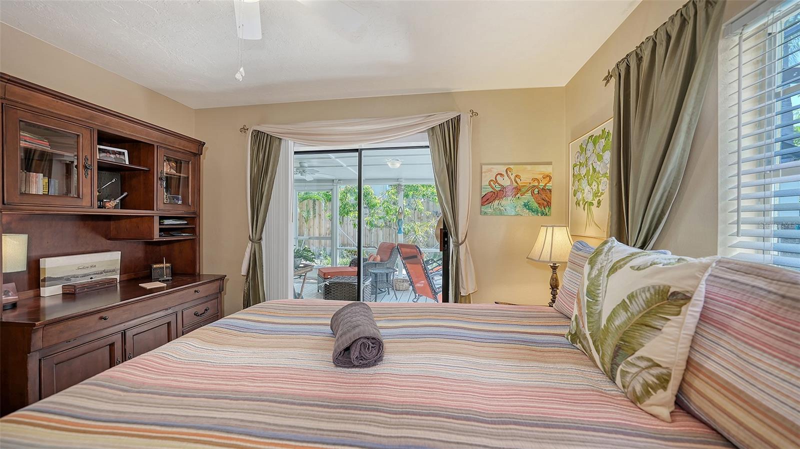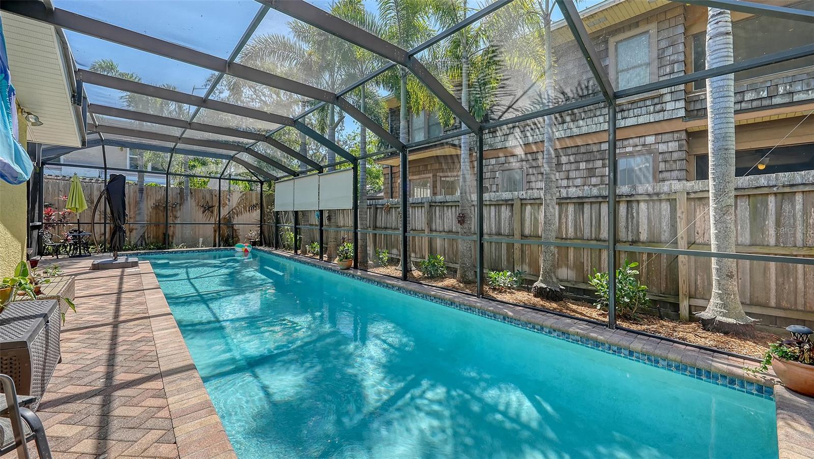 2332 Alameda Description - Broker owned & occupied immaculate pool home fully updated in best area of 'Indian Beach' with high and dry elevation. Large extra wide lot surrounded by trees with room to expand home. Front porch curb appeal, with metal roof and natural shell circular drive, leads into an open floorplan with split bedrooms. Windows and light throughout. Large eat-in kitchen with brand new Samsung Bespoke appliances, stone tile counters and solid wood cabinets. Open plan integrates the wood floor living room with tiled kitchen and a large sunroom dining area boasting wood ceiling where French doors lead to large screen porch and pool. Master suite has wood ceiling, bath with dual sinks/solid wood vanity and large walk-in shower plus French doors open to private outdoor sitting area. Large secondary bedrooms with built-ins, one with sliders opening on porch and pool. Large laundry room with wood ceilings. Back porch integrates with huge 12’x45’ screened party/lap pool that must be seen to appreciate. New pool pump and filtration plumbing. New porch roof 2023. Back yard has extensive decking with grilling/seating area and fully enclosed 4-season outdoor shower. Large 16’x12’ storage shed complete with electricity, lighting, peg board and built-in shelving. New A/C system with York 10-Year Warranty. Irrigation system with eco-friendly separate irrigation meter. New professional exterior paint. Plumbing updated through attic. An absolutely lovely setting in a home surrounded with oaks, palms and fruit-producing avocado tree. Walk to two bayfront parks. Five minutes to Publix, 10th Street Boat Ramp. Easy ride to airport, downtown, St. Armands and more.