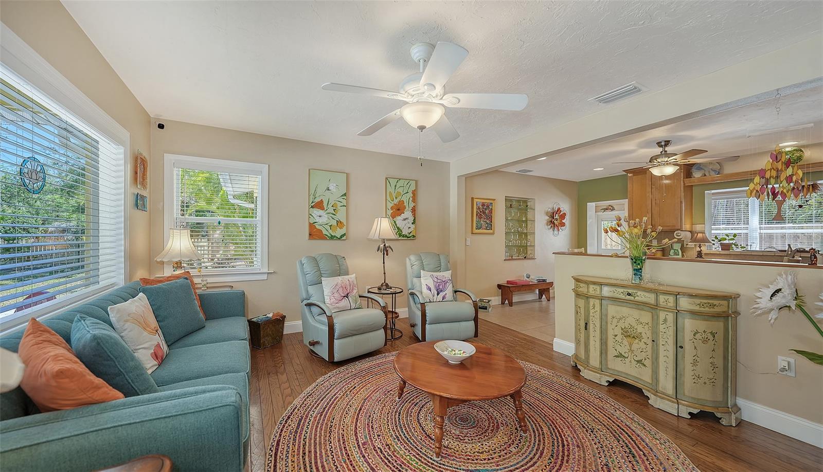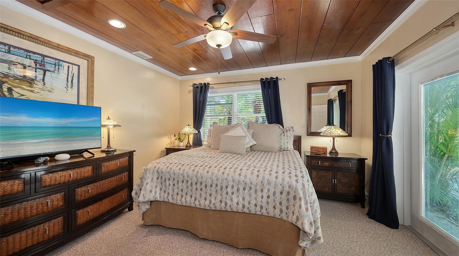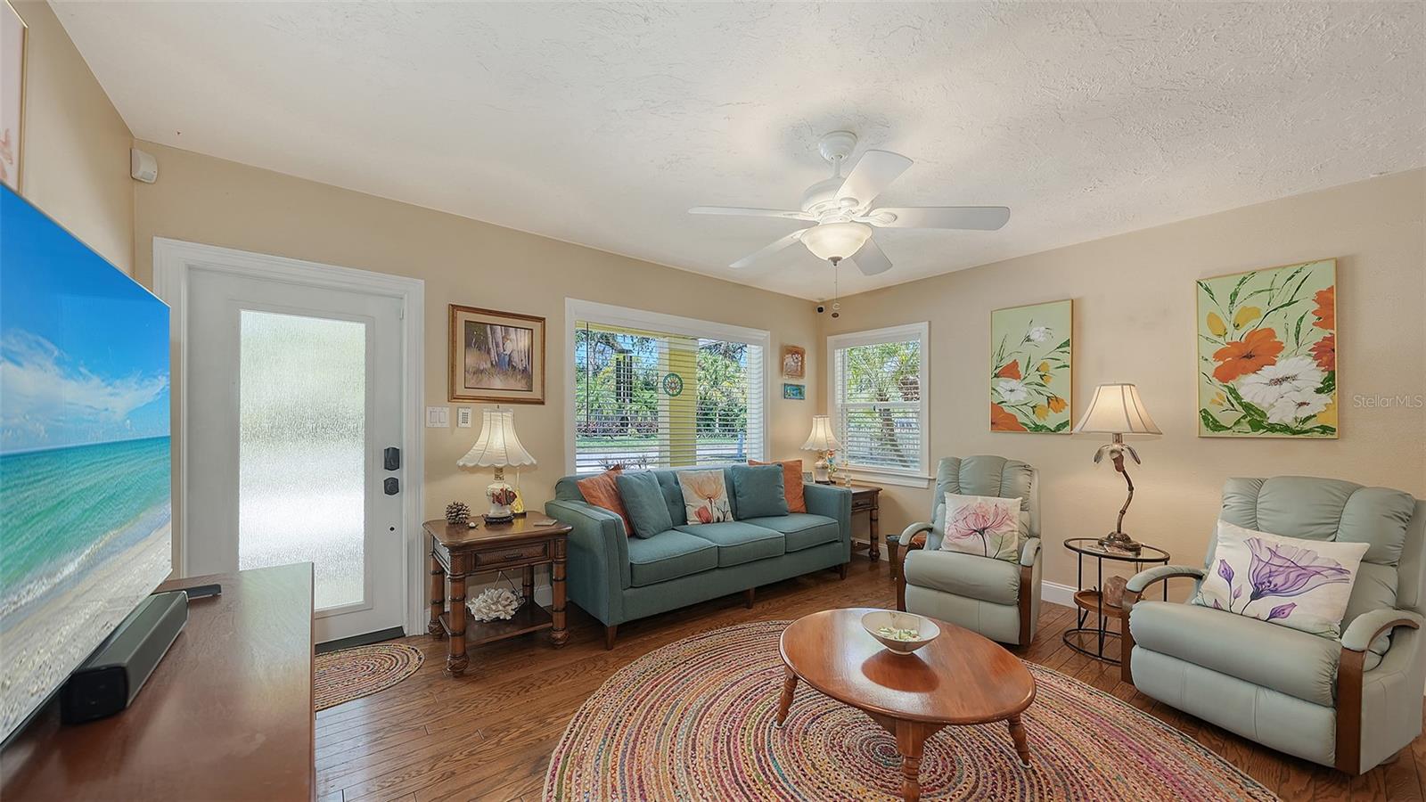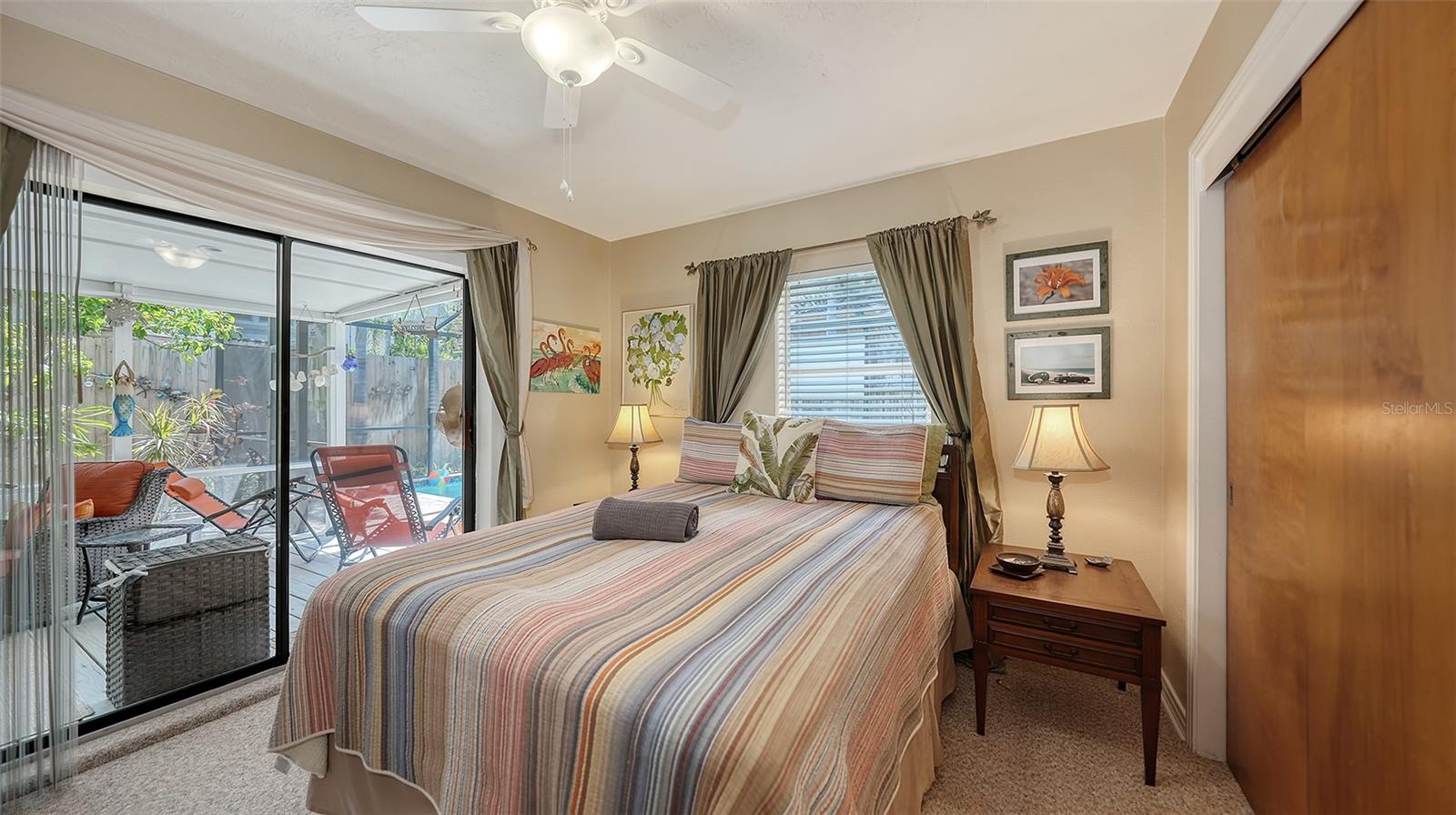 2332 Alameda Description - Broker owned & occupied immaculate pool home fully updated in best area of 'Indian Beach' with high and dry elevation. Large extra wide lot surrounded by trees with room to expand home. Front porch curb appeal, with metal roof and natural shell circular drive, leads into an open floorplan with split bedrooms. Windows and light throughout. Large eat-in kitchen with brand new Samsung Bespoke appliances, stone tile counters and solid wood cabinets. Open plan integrates the wood floor living room with tiled kitchen and a large sunroom dining area boasting wood ceiling where French doors lead to large screen porch and pool. Master suite has wood ceiling, bath with dual sinks/solid wood vanity and large walk-in shower plus French doors open to private outdoor sitting area. Large secondary bedrooms with built-ins, one with sliders opening on porch and pool. Large laundry room with wood ceilings. Back porch integrates with huge 12’x45’ screened party/lap pool that must be seen to appreciate. New pool pump and filtration plumbing. New porch roof 2023. Back yard has extensive decking with grilling/seating area and fully enclosed 4-season outdoor shower. Large 16’x12’ storage shed complete with electricity, lighting, peg board and built-in shelving. New A/C system with York 10-Year Warranty. Irrigation system with eco-friendly separate irrigation meter. New professional exterior paint. Plumbing updated through attic. An absolutely lovely setting in a home surrounded with oaks, palms and fruit-producing avocado tree. Walk to two bayfront parks. Five minutes to Publix, 10th Street Boat Ramp. Easy ride to airport, downtown, St. Armands and more.