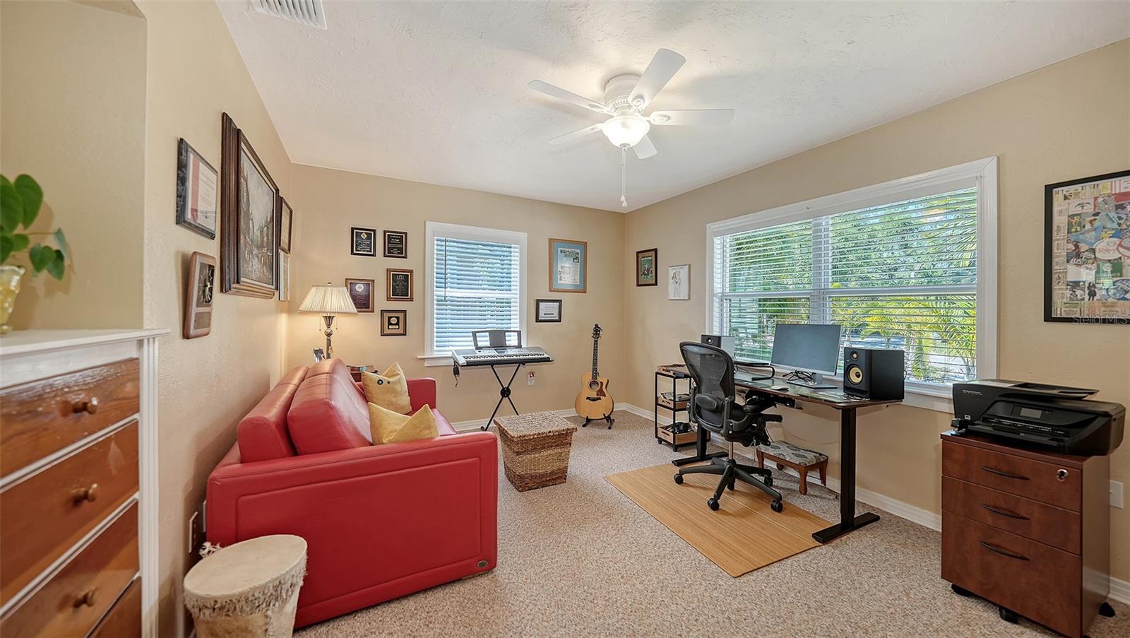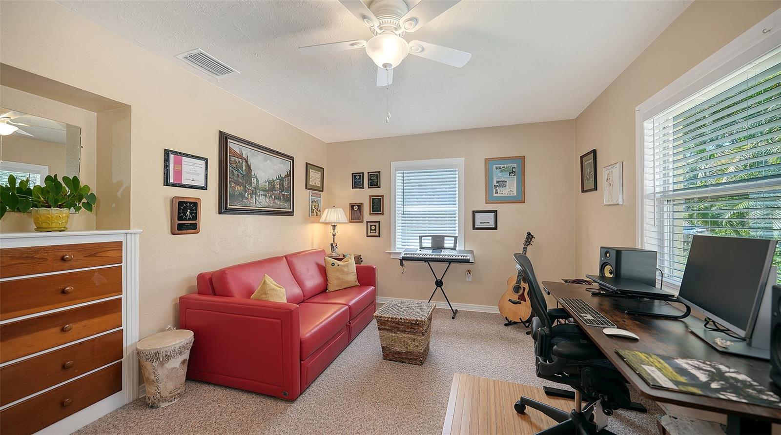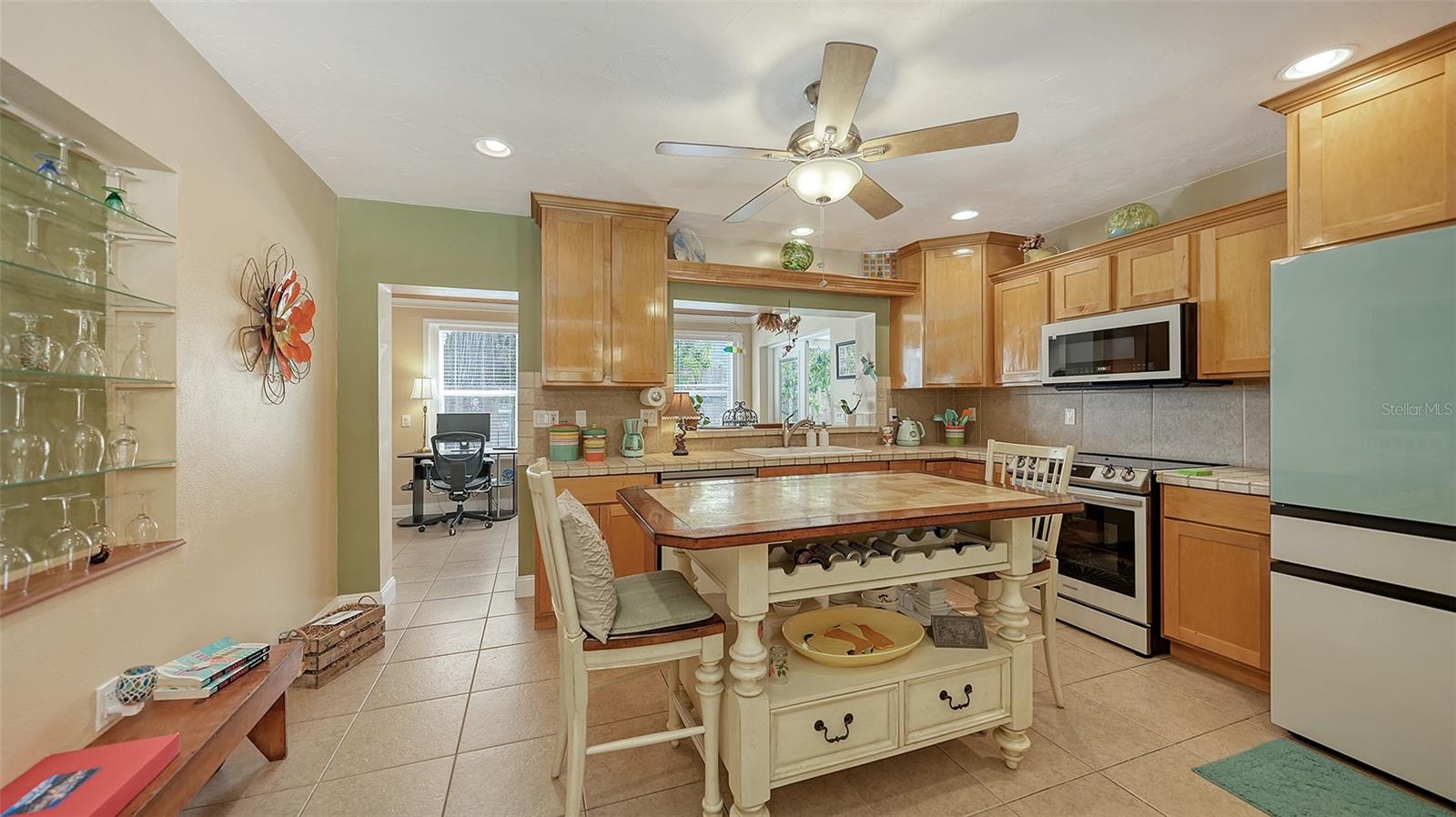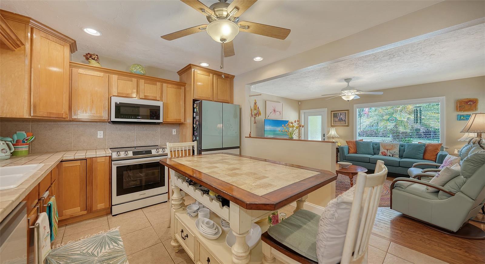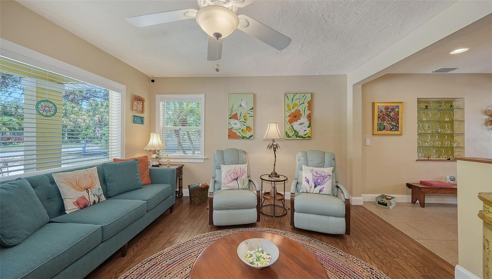 2332 Alameda Description - Broker owned & occupied immaculate pool home fully updated in best area of 'Indian Beach' with high and dry elevation. Large extra wide lot surrounded by trees with room to expand home. Front porch curb appeal, with metal roof and natural shell circular drive, leads into an open floorplan with split bedrooms. Windows and light throughout. Large eat-in kitchen with brand new Samsung Bespoke appliances, stone tile counters and solid wood cabinets. Open plan integrates the wood floor living room with tiled kitchen and a large sunroom dining area boasting wood ceiling where French doors lead to large screen porch and pool. Master suite has wood ceiling, bath with dual sinks/solid wood vanity and large walk-in shower plus French doors open to private outdoor sitting area. Large secondary bedrooms with built-ins, one with sliders opening on porch and pool. Large laundry room with wood ceilings. Back porch integrates with huge 12’x45’ screened party/lap pool that must be seen to appreciate. New pool pump and filtration plumbing. New porch roof 2023. Back yard has extensive decking with grilling/seating area and fully enclosed 4-season outdoor shower. Large 16’x12’ storage shed complete with electricity, lighting, peg board and built-in shelving. New A/C system with York 10-Year Warranty. Irrigation system with eco-friendly separate irrigation meter. New professional exterior paint. Plumbing updated through attic. An absolutely lovely setting in a home surrounded with oaks, palms and fruit-producing avocado tree. Walk to two bayfront parks. Five minutes to Publix, 10th Street Boat Ramp. Easy ride to airport, downtown, St. Armands and more.