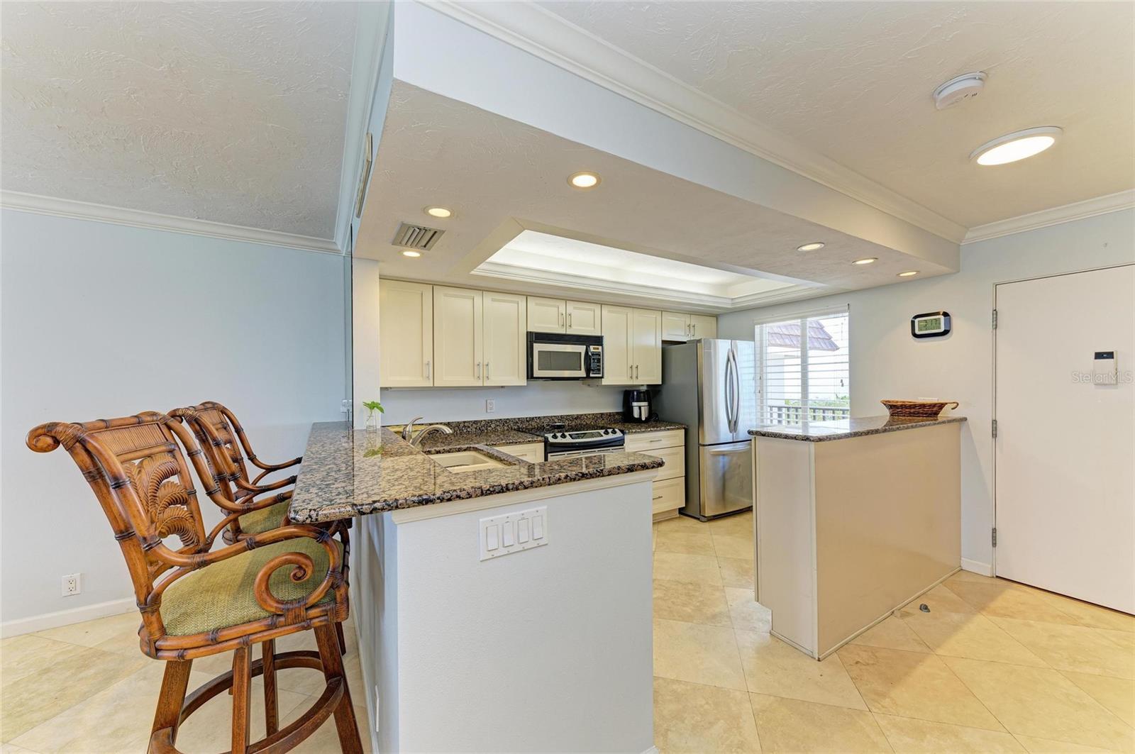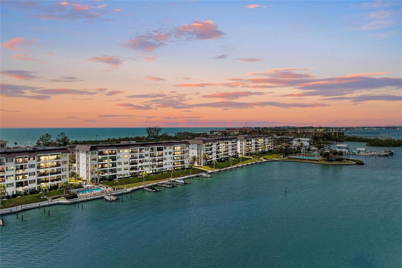 Rare Penthouse Opportunity with BREATHTAKING Gulf & Bay Views on Siesta Key! Experience the pinnacle of coastal living with this exceptional 2-bedroom, 2-bathroom PENTHOUSE condo, the only one of its kind currently available in the entire complex. Offering unparalleled panoramic views, this is your chance to enjoy mesmerizing sunrises AND sunsets every day. This spacious 1,190 sq. ft. updated unit comes TURNKEY-FURNISHED and features elegant travertine tile floors with a soundproofing barrier underlay. The fully open kitchen is designed with granite countertops, wood cabinetry, and stainless-steel appliances. The bathrooms have also been updated with modern finishes. Additional details such as crown molding and recessed lighting add a refined touch. The private enclosed balcony stretches along the condo’s edge, expanding the living space and offering STUNNING WATER VIEWS. The community boasts RESORT-STYLE AMENITIES, including two heated pools, tennis and pickleball courts, and a completely renovated clubhouse with a brand-new fitness center, billiards and ping pong room, and kitchen. For water enthusiasts, there is kayak and paddleboard storage with a dedicated launch area. Dock slips are available for annual rental, accommodating boats up to 40 feet. Located just across the street from Turtle Beach, this penthouse unit offers instant access to the Gulf. A boat launch is directly across the street as well, providing effortless access to the water. Midnight Pass is only a half-mile paddleboard, kayak, or boat ride away, offering a serene and picturesque setting. Enjoy the convenience of being within walking distance of two incredible waterfront dining options: Turtles Restaurant and Ophelia’s on the Bay. Plus, Siesta Village is just five miles away, and a free shuttle to the village is available right across the street. Don’t miss this rare opportunity to own a penthouse retreat in one of Siesta Key’s most desirable locations. Call today to schedule your private tour.