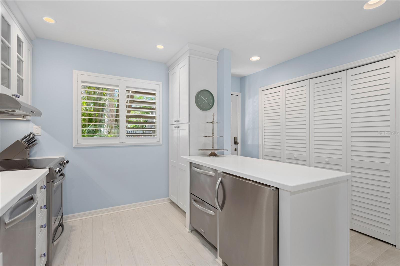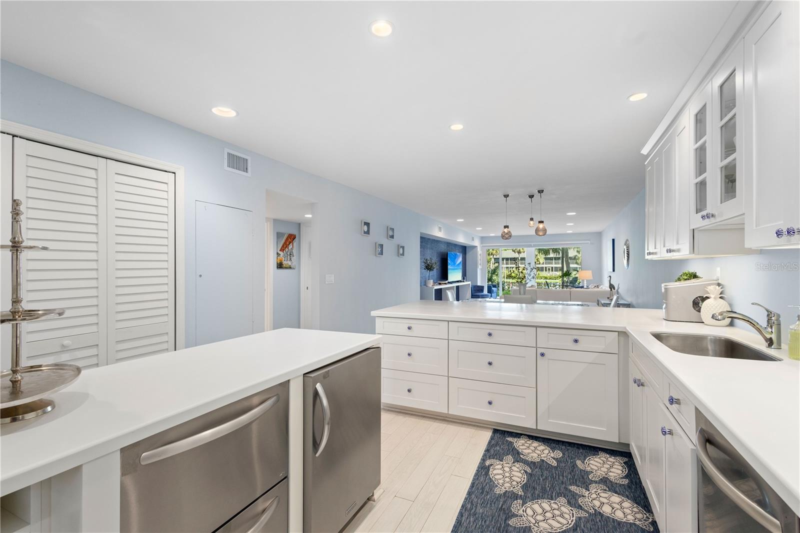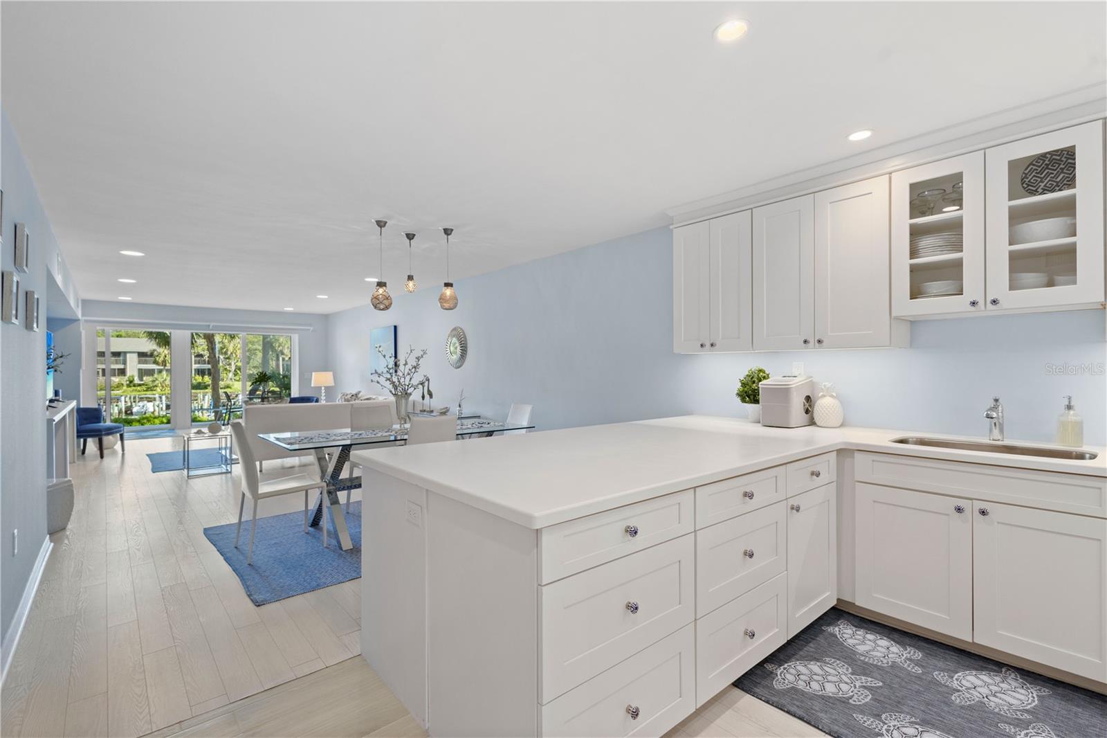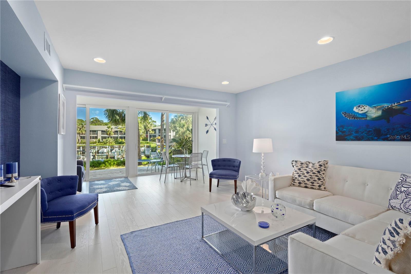You will fall in love the moment you enter this rarely available FIRST FLOOR waterfront condominium located at Pelican Cove in beautiful Sarasota, Florida! Lovely fully renovated 2 bedroom, 2 bathroom, with a study/office just off the master bedroom with breath taking water views of the harbor basin. You will enjoy entertaining in this open floor plan that is light and bright. The stunning kitchen boasts white cabinetry with lots of drawers and pull outs, white Corian counter tops, stainless appliances, built in wine rack, and three refrigerators. Master bedroom en suite features two custom closets, one which is a large walk-in, and tastefully renovated bathroom with exquisite finishes includes an enclosed shower. This impressive condo has plantation shutters, sliding impact resistant glass doors, large wood deck over looking the harbor, tile and laminate floors through out, brand new water heater, and is offered furnished. Pelican Cove is a gated waterfront community renowned for it's resort-like amenities including an 86-slip boat harbor, kayak launch, 6 heated swimming pools, hot tub, fitness center, lighted tennis and pickleball courts, basketball, shuffle board, 5 miles of walking trails and board walks, and dog walking areas. The community offers loads of social activities, clubs and classes featuring an art studio, pottery, wood working, sculpting, and classes at Pelican Cove University. There are 37 plus clubs including culinary arts, Tai Chi, yoga, biking, photography, fiber art and card clubs. Conveniently located to Siesta Key Beach, downtown Sarasota, restaurants, shopping, cultural attractions, hospitals, airports, and so much more.