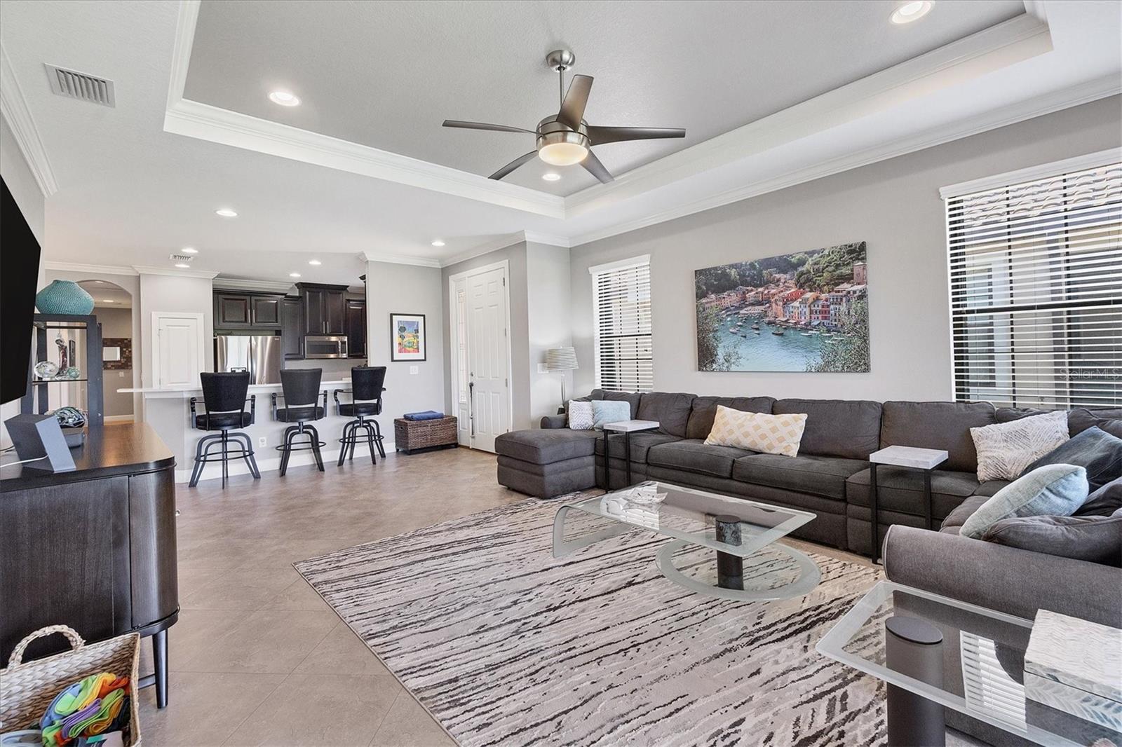 Location! Location! Location! Immerse yourself in the Sarasota lifestyle while living in this beautiful 3 bd + den villa in the much sought after community of Esplanade by Siesta Key. This villa is located minutes from #1 rated Siesta Key Beach, downtown Sarasota with its vibrant theater and nightlife, and St. Armands Circle, which is home to more than 140 upscale boutiques, award-winning, restaurants, and posh art galleries. While not out enjoying all Sarasota has to offer, make yourself at home in the resort style community which offers a large kitchen/game room, 24 hour gym, zero entry heated pool, spa, bocce ball, tennis, and pickle ball courts. Make play dates with your pups at the neighborhood dog park, and make new friends at the multiple monthly events set up by your active lifestyle committee. Inside this very spacious villa, you will find neutral decor with an abundance of upgraded features. These include tray ceilings in the dining room, living room, and master bedroom, crown molding throughout, covered lanai, two full bathrooms with granite countertops, kitchen with white quartz countertop and bar with newer electric range, newer dishwasher, and boiling water tap. All closets, including two walk-in closets are outfitted with custom wire shelving designed for maximum storage. The spacious laundry room includes counter space for folding, a sink for hand washables, under cabinet roll out trash cans, and open designer overhead shelving. The two car garage has additional built in shelving, an overhead luggage rack, pull down attic stairs, and garage door insulation. Refrigerator, washer and dryer included with sale.