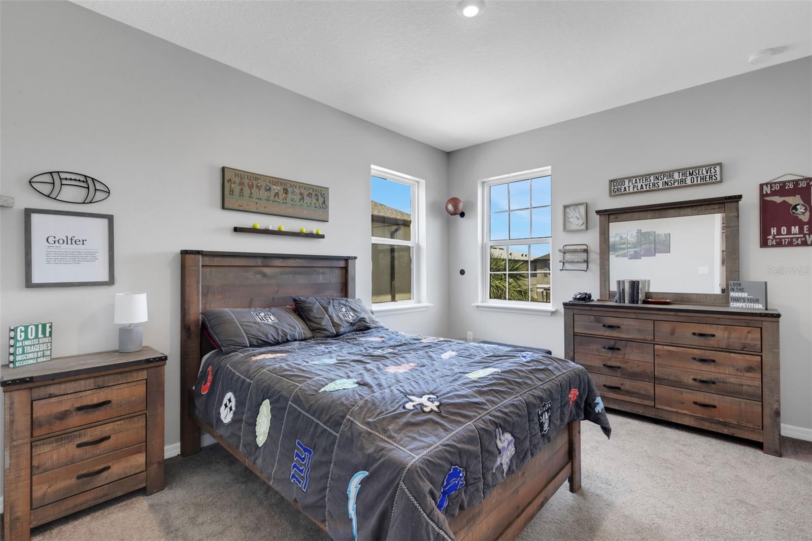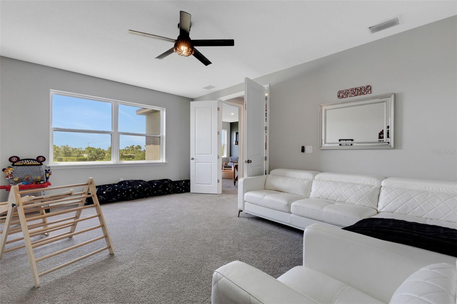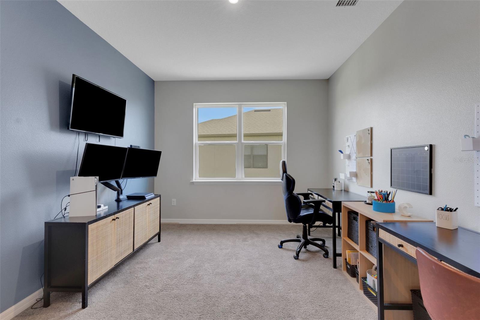Welcome to Skye Ranch! This popular gated neighborhood has almost every amenity you can think of and the BRAND NEW K-8 SKYE RANCH SCHOOL opening next door this fall!!! You'll have all the room you need in this 2,922 sq ft Anastasia model, which features a ground floor primary bedroom and office, with 3 more bedrooms upstairs plus a HUGE bonus room and a loft area. The 20'x14' bonus room is currently set up as a movie/play room but would make a great 2nd office, home gym, game room or even a 5th bedroom. Chefs will love the large, well appointed kitchen with gas cooktop, a large pantry, lots of storage and plenty of prep space. The open floorplan is great for entertaining or keeping an eye on your crew in the large backyard, which overlooks a pond and has all sorts of room for games and sports. It's large enough to add a pool, and Southern rear exposure means plenty of sun throughout the day. Home solar panels will provide you with green energy throughout the year while reducing your electric bill AND shielding you from future electricity price increases! Skye Ranch is one of those neighborhoods you'll rarely want to leave once you move in. The world class amenities include "The Hub" community center, which features a resort-style pool with splashpad, kiddie pool, lap pool, spa, BBQ area, indoor basketball court, rock climbing wall, fitness center, movement studio, cafe with espresso bar, fire pit, community room and even a game room for the little ones. Across from The Hub is Turner Park, where you'll have access to an outdoor basketball court, tennis, pickleball, sand volleyball, soccer fields, baseball/softball fields, a dog park (this is a pet friendly neighborhood!) and an event lawn. Skye Ranch even has an Activities Director that coordinates social events for the neighborhood, and miles of scenic trails. This neighborhood IS an amenity. The owners love it so much they're building a larger house in the neighborhood! This is a good one - where else can you find a brand new K-8 school in walking/bike/scooter distance!? Call today for your private showing!