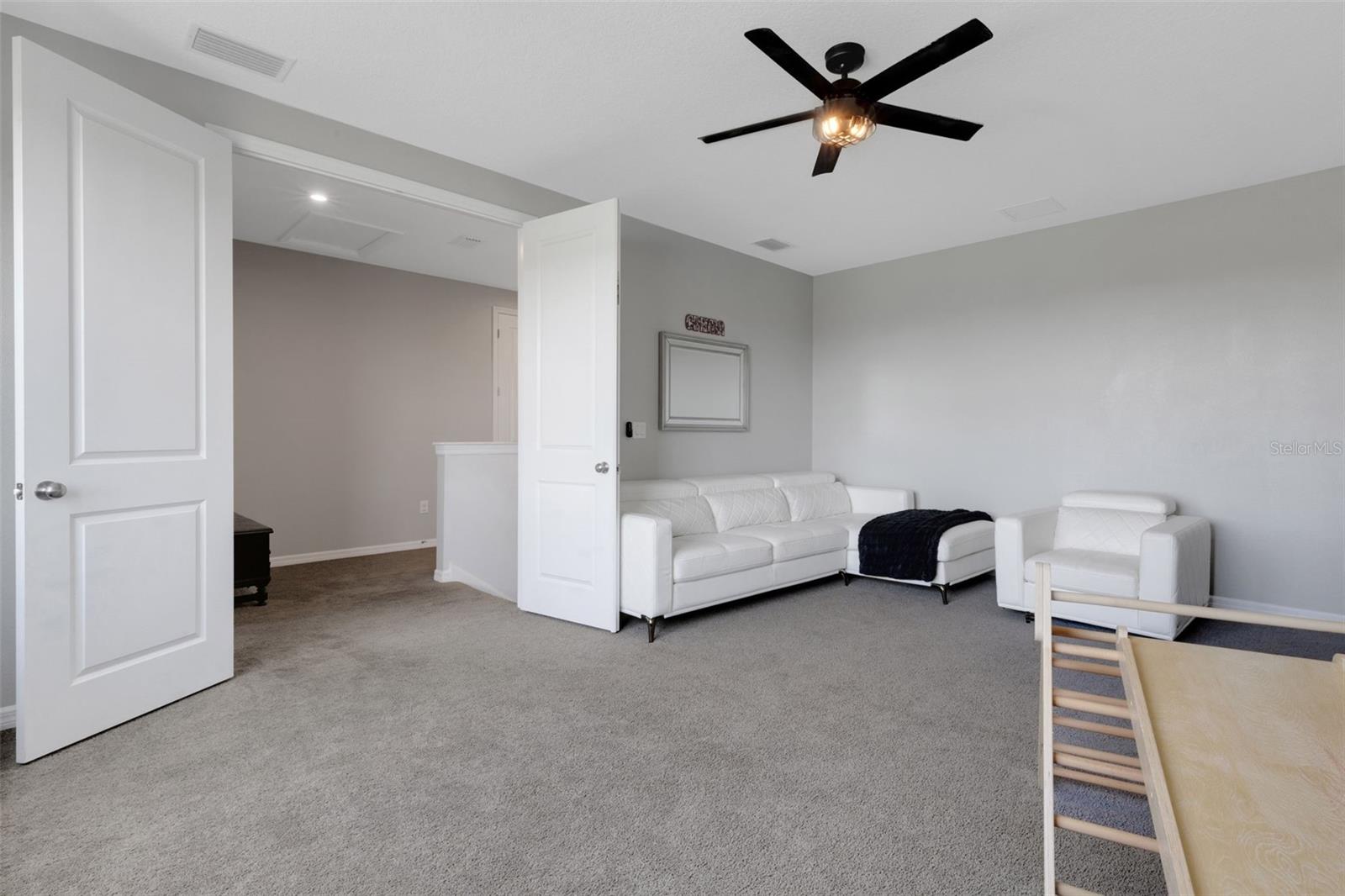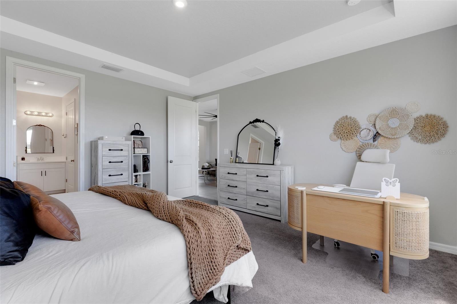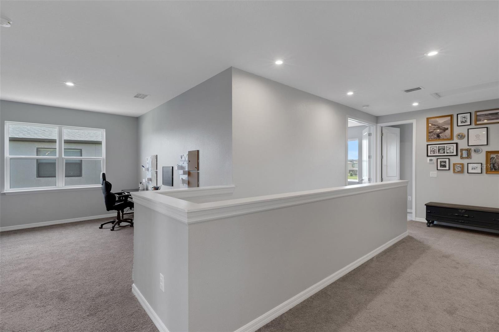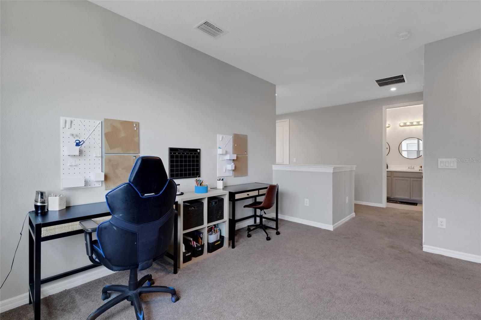 Welcome to Skye Ranch! This popular gated neighborhood has almost every amenity you can think of and the BRAND NEW K-8 SKYE RANCH SCHOOL opening next door this fall!!! You'll have all the room you need in this 2,922 sq ft Anastasia model, which features a ground floor primary bedroom and office, with 3 more bedrooms upstairs plus a HUGE bonus room and a loft area. The 20'x14' bonus room is currently set up as a movie/play room but would make a great 2nd office, home gym, game room or even a 5th bedroom. Chefs will love the large, well appointed kitchen with gas cooktop, a large pantry, lots of storage and plenty of prep space. The open floorplan is great for entertaining or keeping an eye on your crew in the large backyard, which overlooks a pond and has all sorts of room for games and sports. It's large enough to add a pool, and Southern rear exposure means plenty of sun throughout the day. Home solar panels will provide you with green energy throughout the year while reducing your electric bill AND shielding you from future electricity price increases! Skye Ranch is one of those neighborhoods you'll rarely want to leave once you move in. The world class amenities include "The Hub" community center, which features a resort-style pool with splashpad, kiddie pool, lap pool, spa, BBQ area, indoor basketball court, rock climbing wall, fitness center, movement studio, cafe with espresso bar, fire pit, community room and even a game room for the little ones. Across from The Hub is Turner Park, where you'll have access to an outdoor basketball court, tennis, pickleball, sand volleyball, soccer fields, baseball/softball fields, a dog park (this is a pet friendly neighborhood!) and an event lawn. Skye Ranch even has an Activities Director that coordinates social events for the neighborhood, and miles of scenic trails. This neighborhood IS an amenity. The owners love it so much they're building a larger house in the neighborhood! This is a good one - where else can you find a brand new K-8 school in walking/bike/scooter distance!? Call today for your private showing!