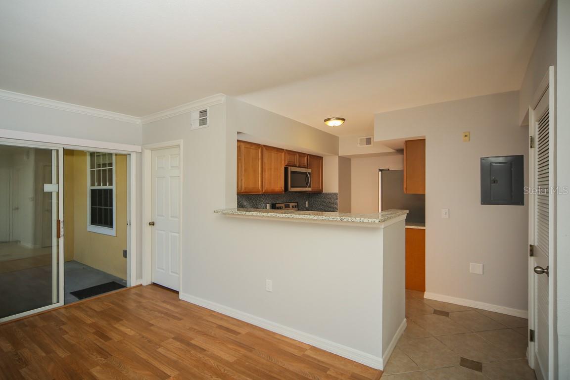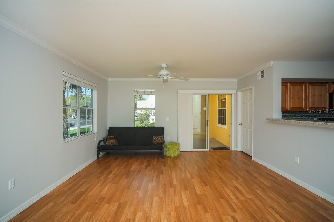 Discover your slice of paradise in this inviting, easily accessible first-floor corner condo. Enjoy the ease of maintenance-free living, with no stairs to climb. Nestled within the secure, gated community of Villagio, this residence provides a relaxed lifestyle with an array of amenities. The kitchen features stainless steel appliances, granite countertops, and an eat-in kitchen bar, perfect for casual dining. The floor plan is a desirable split plan, providing added privacy. The bathrooms showcase nice tile work, adding a touch of elegance. The primary bedroom has a spacious walk-in closet and en-suite bathroom. Additionally, there's a perfect enclave that can be used as a small office or large storage area, offering flexible space. This property provides easy access to all that Sarasota has to offer. Enjoy the community clubhouse, stay active in the fitness center, relax by the resort-style pool, or play a match on the tennis courts. Located close to downtown Sarasota, St. Armands Circle, beautiful beaches like Siesta Key, and a multitude of shopping and dining options. This location provides the best of the Sarasota lifestyle. Please note, this unit is currently tenant occupied, and will be vacant by the end of May."