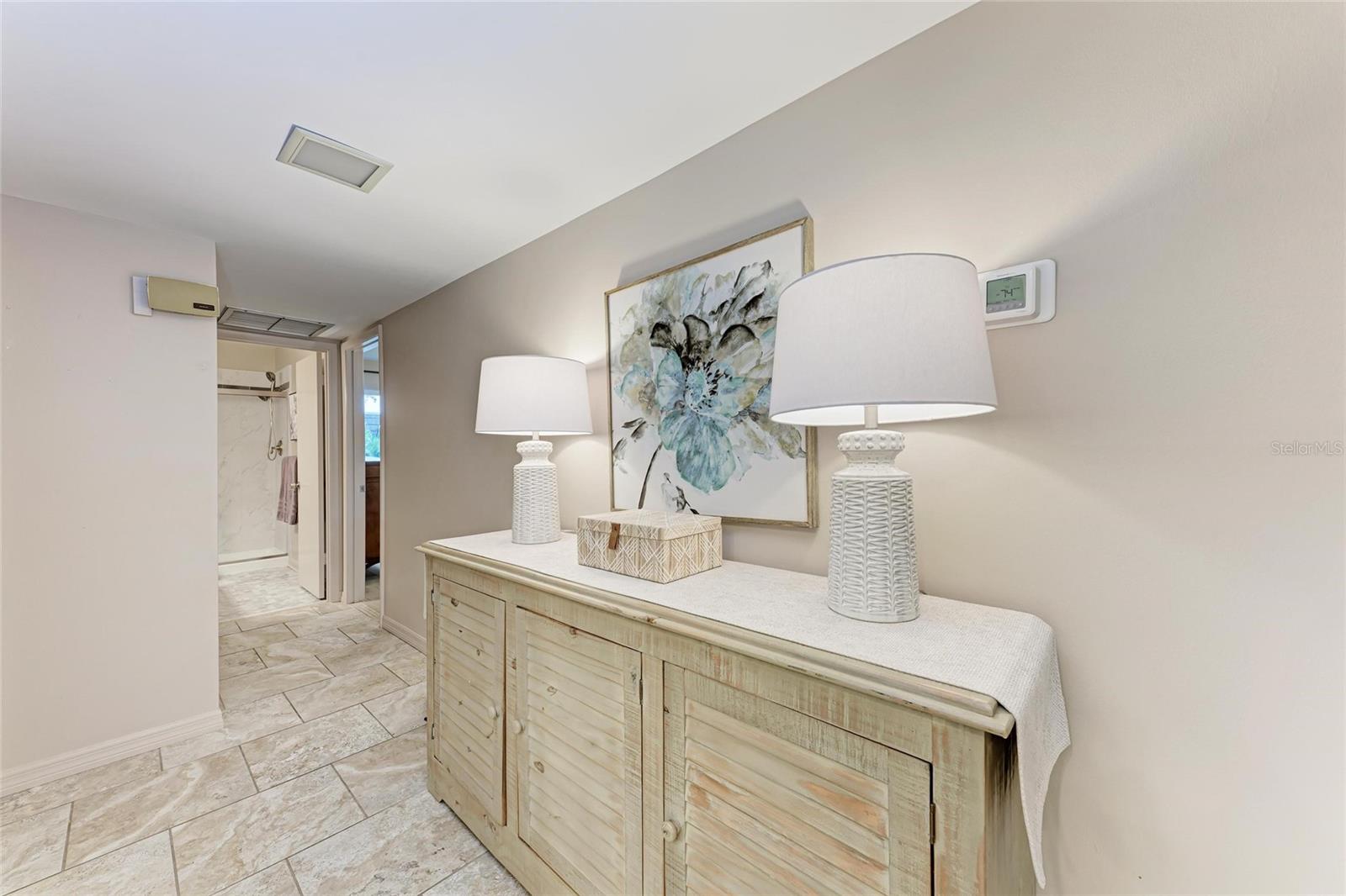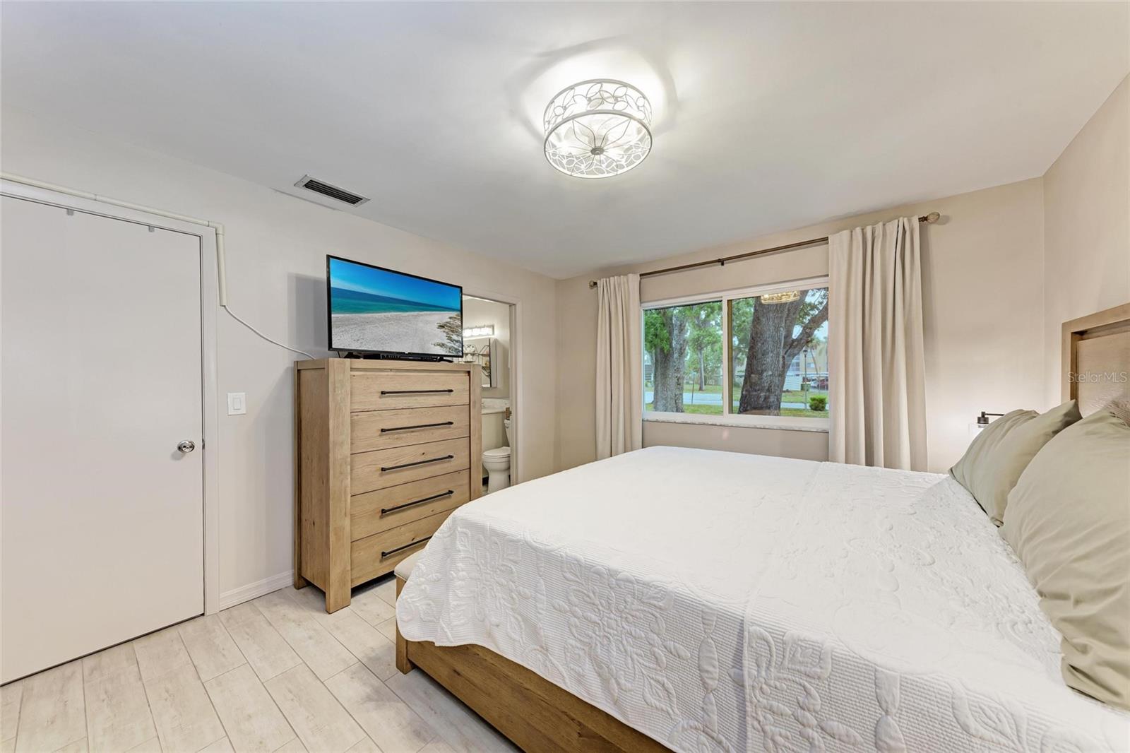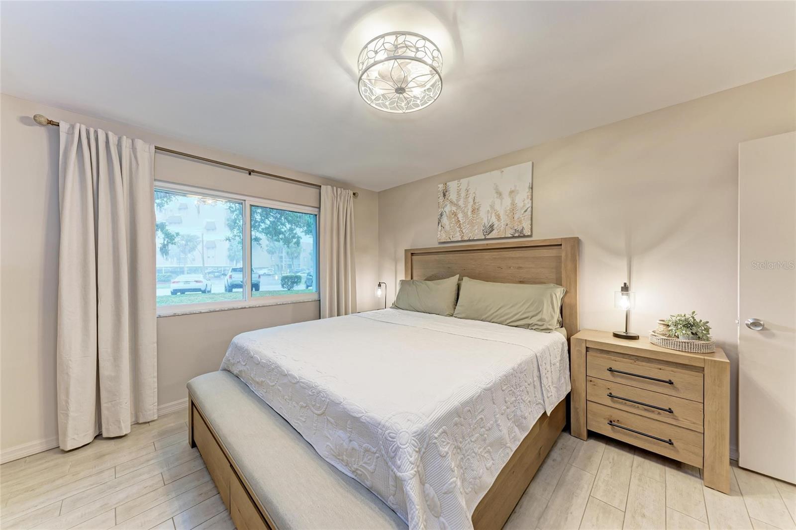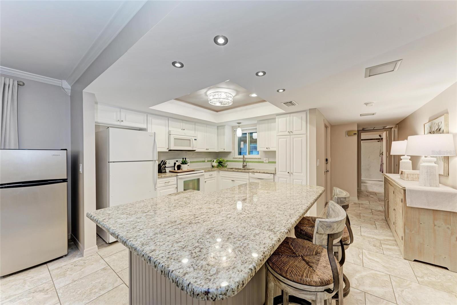 CLICK PICTURES TO SEE MORE! LOOKS LIKE A NEW MODEL HOME ON THE IN SIDE! Open floor plan with tons of light and picturesque views of the mature tropical landscaping across the back of the home!! Large sliding doors lead to the lanai! Updated END UNIT Villa in Glen Oaks Ridge - 55+ A French Provincial style home. Home has a NEW ROOF, Flood zone X the least minimal risk zone, NEW HURRICANE RATED WINDOWS for $13,000 in April 2025 and NEW WINDOW TREATMENTS, removed popcorn ceiling, NEW landscaping and had the home professionally painted including the walls, doors and trim! Kitchen cabinets were refinished, New light fixtures, Hot water heater is NEW in January 2024, and THE CLOSET REMODELED! This home has over 1,500 square feet that includes 2 bedrooms, 2 full bathrooms. Both bathrooms have been updated, Living room, dining room, den/study, Florida room plus a large laundry/utility room and it has a private driveway/carport not shared with others. Wait till you see this Beautifully updated kitchen that includes the removal of two walls to open it up, adding a breakfast bar, all new cabinetry, stone counters and back splash. No carpet here...tile floors throughout plus updated lighting and crown molding. Out front you have a newly screened front porch, a small courtyard, 1 car carport and a driveway for another car and plenty of guest parking across the street! Glen Oaks Ridge is a pet friendly and active community with a wonderful HEATED pool overlooking a large lake with a fountain, clubhouse with a library, fitness room, billiards and shuffleboard. LOCATION, LOCATION, LOCATION...walk to two parks, Bobby Jones golf course, short drive to plenty of shopping, UTC, downtown Sarasota, I-75, St. Armand's, Lido Beach, etc.