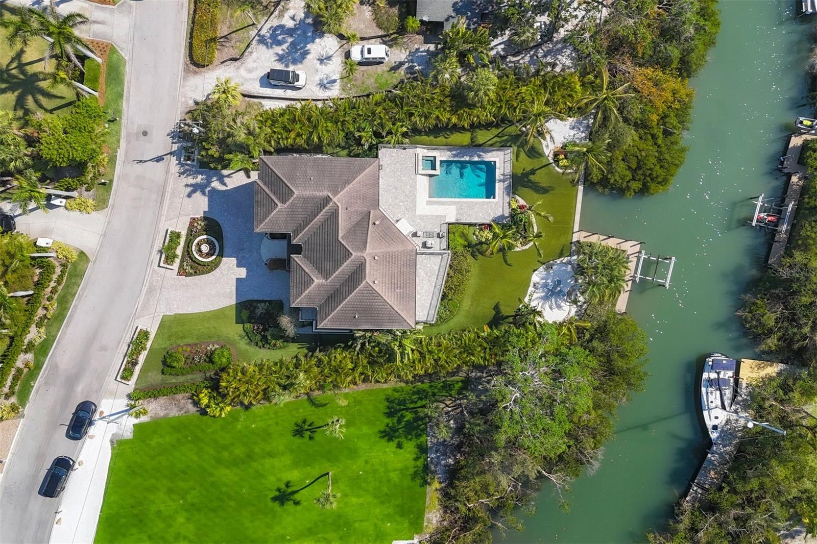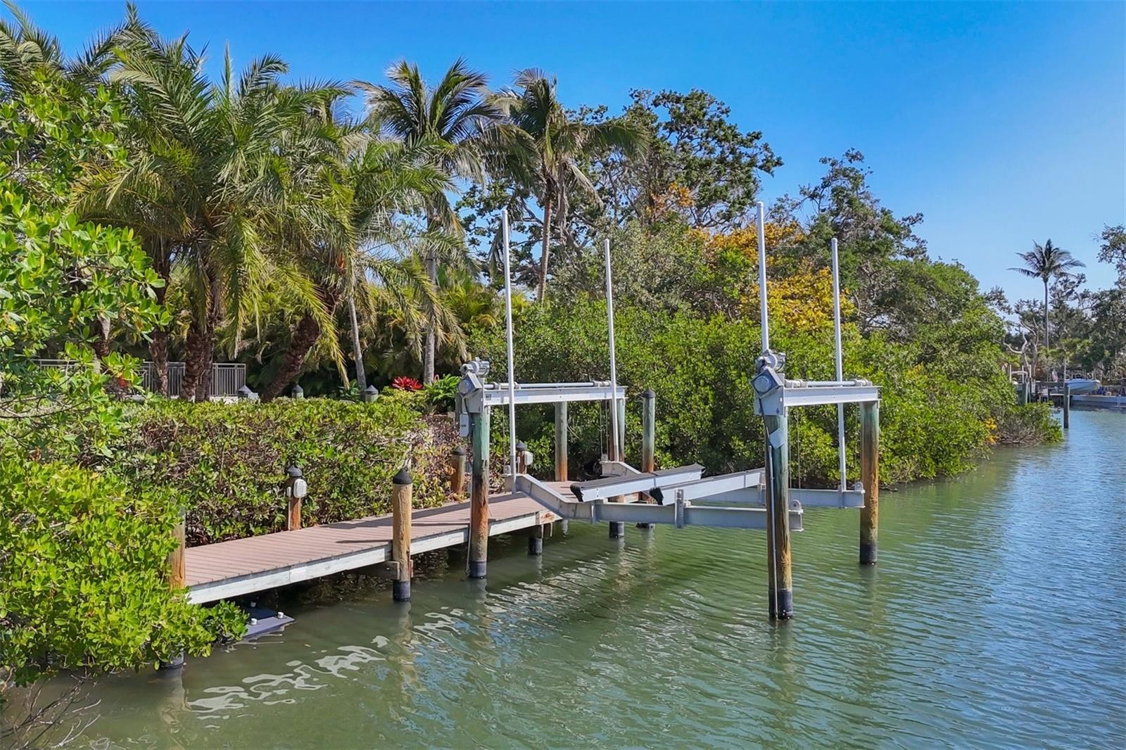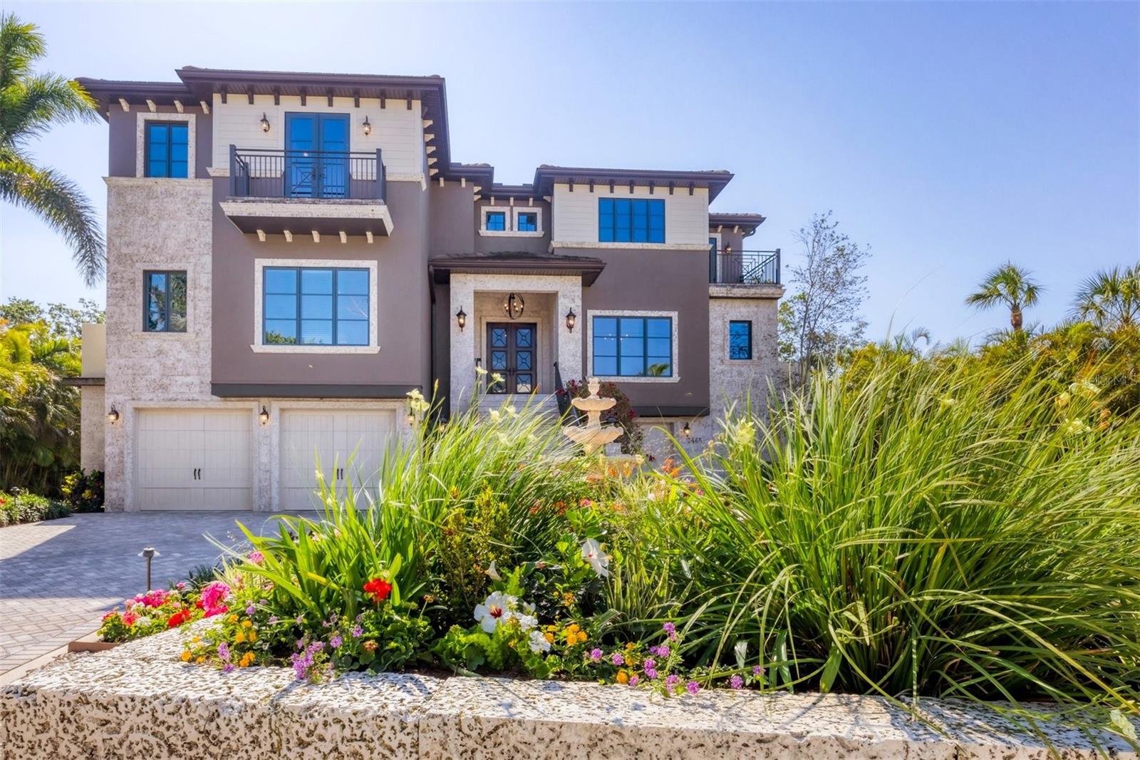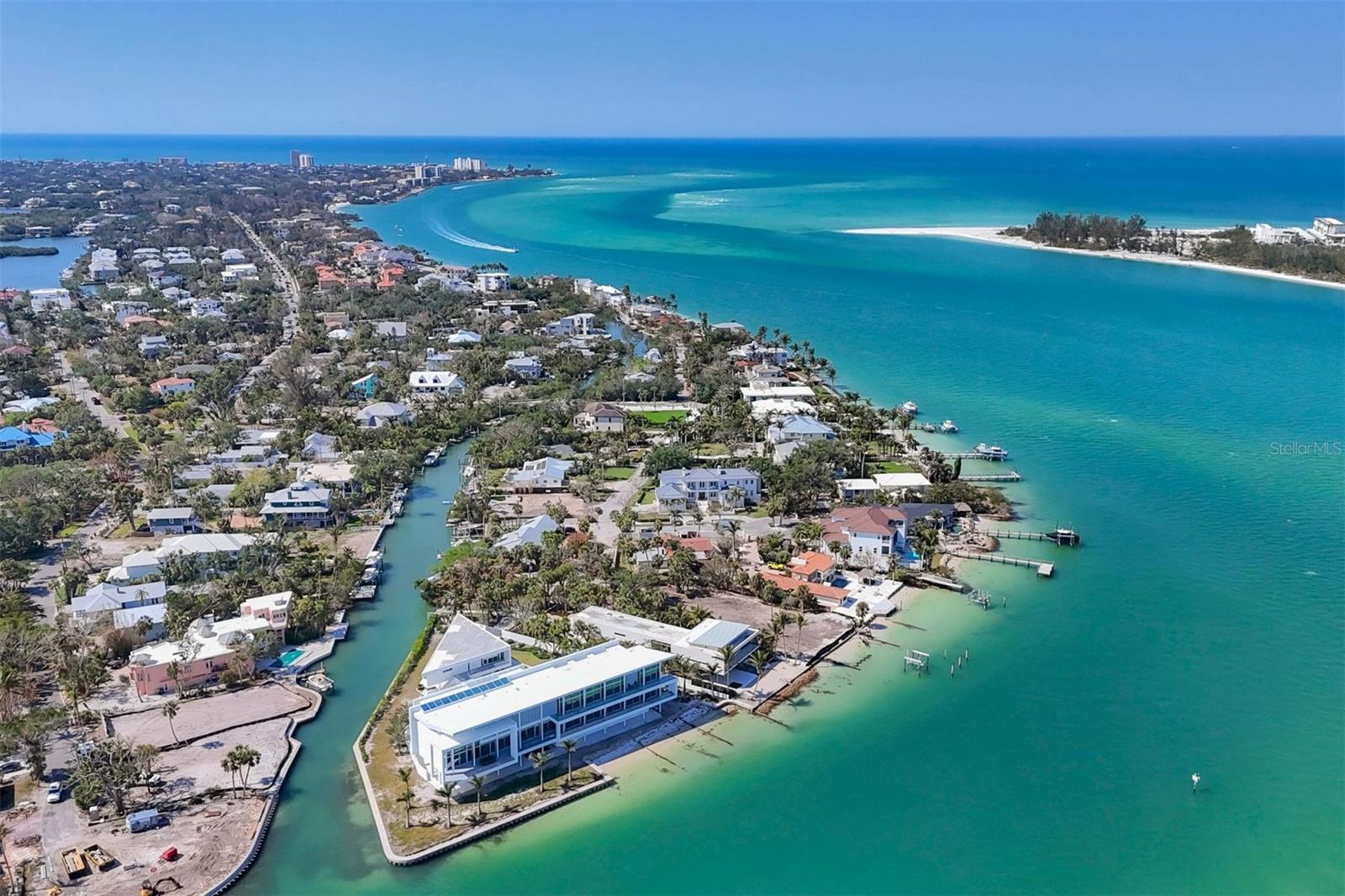 One or more photo(s) has been virtually staged. *Located on the north end of Siesta Key, this custom-built luxury waterfront home sits on a very private lot, surrounded by lush tropical landscaping and mature coconut palms. Perfectly positioned on a coastal playground just off Big Pass, it offers deep-water access, boating convenience, and serene natural beauty. The flexible layout includes 5 en-suite bedrooms, an elevator to all three levels, and a spacious main-level suite ideal for guests or multigenerational living. An engineer-approved option to remove a non-load-bearing wall allows for easy creation of a great room concept—a virtual rendering is included in the photo gallery to illustrate the potential. The chef’s kitchen features GE Monogram and Fisher & Paykel appliances, a butler’s pantry, beverage station, and pocketing glass doors opening to a full summer kitchen, PebbleTec saltwater pool and spa, and lush outdoor spaces. Hurricane-rated windows and doors, elevated construction, and a full-home generator protected the interior during recent storms—no water intrusion or damage occurred, with water reaching only the garage level. Extras include a 13,000 lb. lift, composite dock, 3-car garage with EV charger, whole-house water filtration, security system, and ample storage. A rare opportunity to own a private, resilient, and reimagined Siesta Key waterfront retreat.