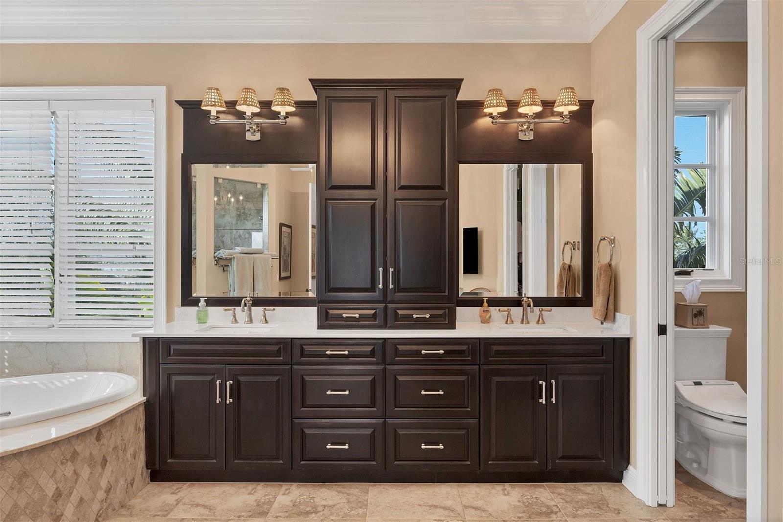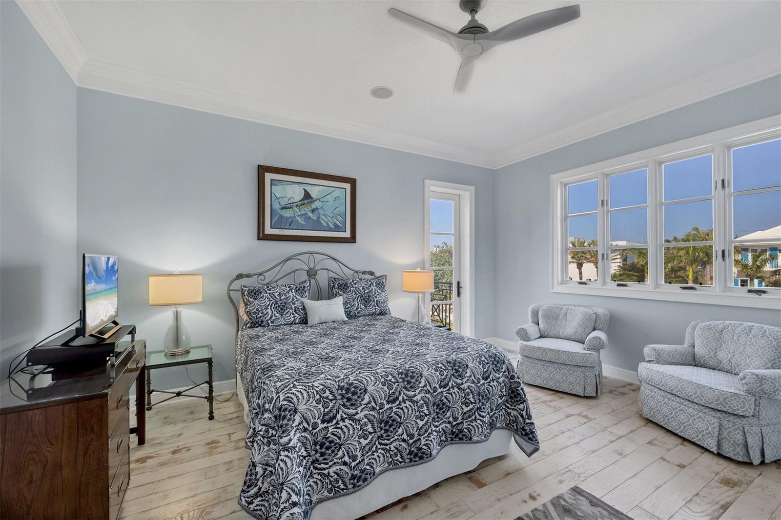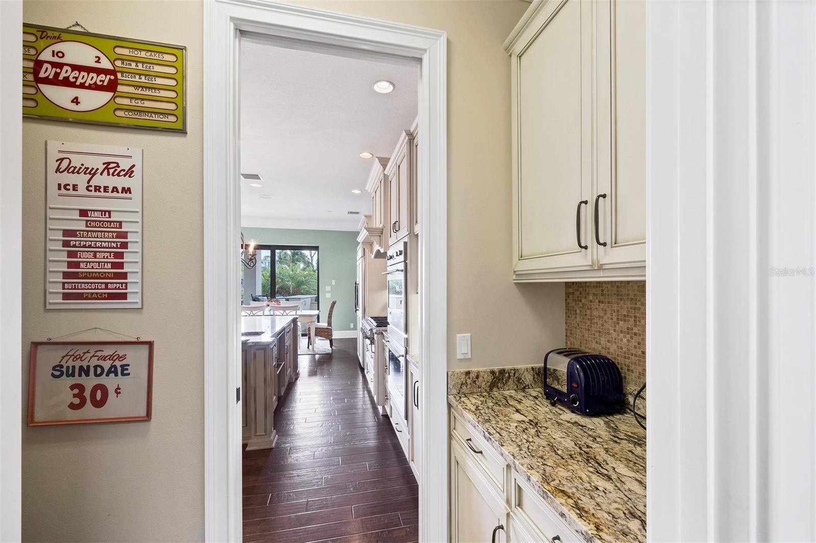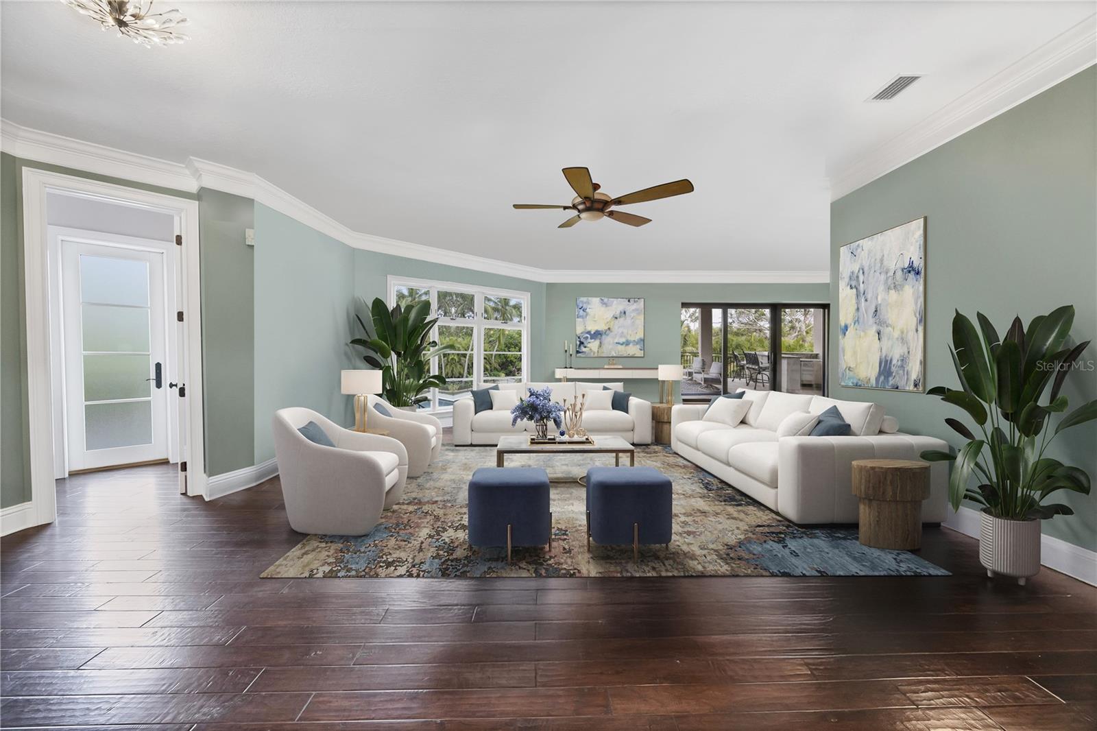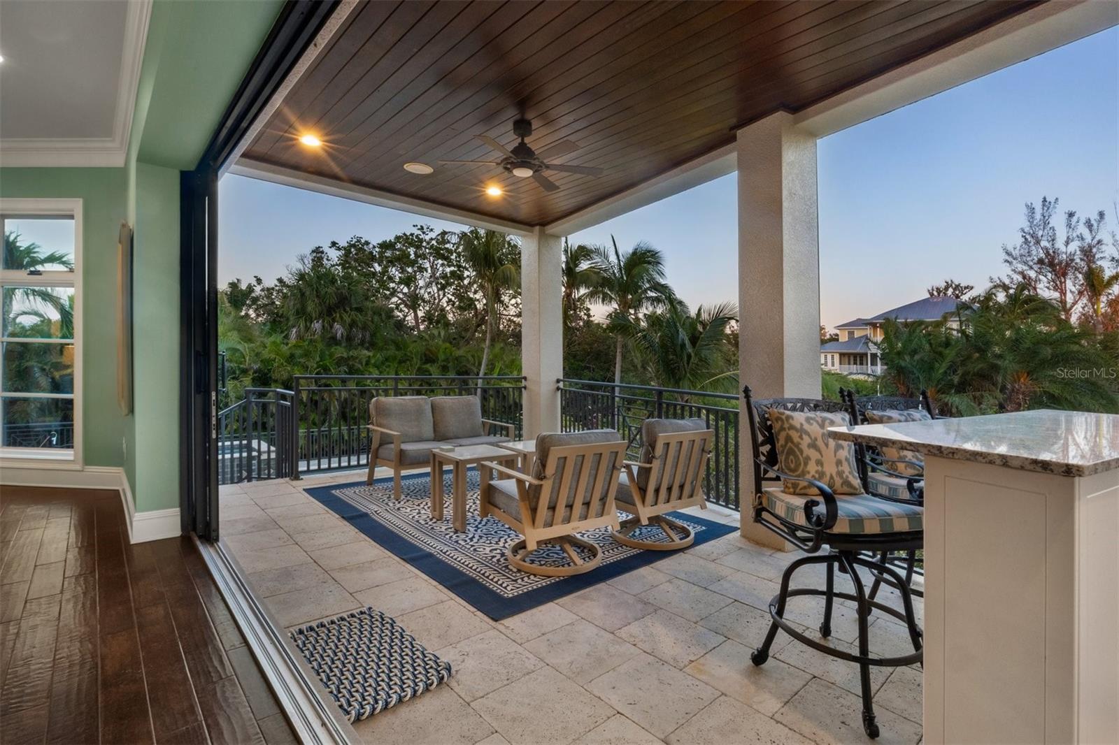 One or more photo(s) has been virtually staged. *Located on the north end of Siesta Key, this custom-built luxury waterfront home sits on a very private lot, surrounded by lush tropical landscaping and mature coconut palms. Perfectly positioned on a coastal playground just off Big Pass, it offers deep-water access, boating convenience, and serene natural beauty. The flexible layout includes 5 en-suite bedrooms, an elevator to all three levels, and a spacious main-level suite ideal for guests or multigenerational living. An engineer-approved option to remove a non-load-bearing wall allows for easy creation of a great room concept—a virtual rendering is included in the photo gallery to illustrate the potential. The chef’s kitchen features GE Monogram and Fisher & Paykel appliances, a butler’s pantry, beverage station, and pocketing glass doors opening to a full summer kitchen, PebbleTec saltwater pool and spa, and lush outdoor spaces. Hurricane-rated windows and doors, elevated construction, and a full-home generator protected the interior during recent storms—no water intrusion or damage occurred, with water reaching only the garage level. Extras include a 13,000 lb. lift, composite dock, 3-car garage with EV charger, whole-house water filtration, security system, and ample storage. A rare opportunity to own a private, resilient, and reimagined Siesta Key waterfront retreat.