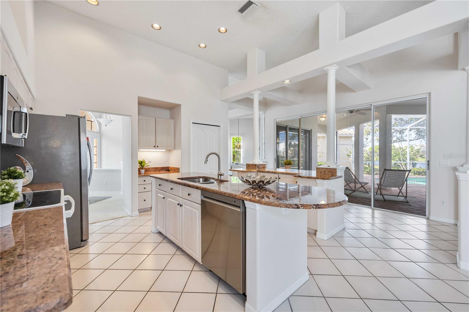 Discover your dream home in the prestigious Huntington Point community of Sarasota! This stunning 4-bedroom, 3-bathroom residence boasts a spacious 2-car garage and a sparkling private pool, perfect for enjoying Florida’s sunny lifestyle. Nestled along a serene lake, this home offers breathtaking views and an exceptional blend of elegance and comfort. Step inside to find soaring volume ceilings and an abundance of natural light streaming through large windows, creating an airy and inviting atmosphere. The open-concept kitchen is a chef’s delight, featuring granite countertops, a generous kitchen island, a built-in desk, and a pantry for ample storage. Entertain with ease in the formal dining room or gather for casual meals in the adjacent dining area. The owner’s suite is a true sanctuary, complete with dual vanities, a separate soaking tub, and a walk-in shower, all while overlooking the tranquil lake. With three additional well-appointed bedrooms and two more bathrooms, there’s plenty of space for family, guests, or a home office. Outside, relax by the pool or take in the picturesque lake views from your private oasis. Located in the heart of Sarasota, Huntington Point offers a peaceful retreat with convenient access to top schools, shopping, dining, and Gulf Coast beaches. Don’t miss this rare opportunity to own a slice of paradise—schedule your private tour today!