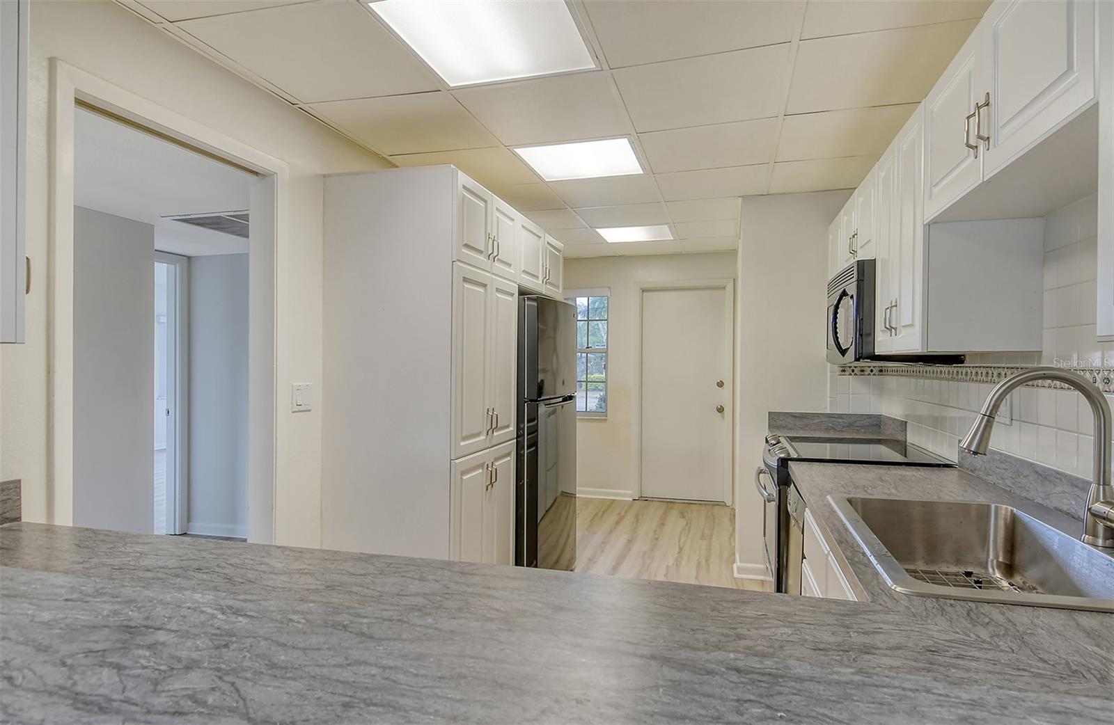 One or more photo(s) has been virtually staged. Priced Below Appraisal Valve. Recently Reduced and Rarely Available bright and open first floor corner unit, 3 bedrooms, two bathrooms naturally bright and airy with full golf course views and adjacent to the community pool in the well-established community of Palm Aire! Solid cement block construction. Not in a Flood Zone and has never had any damage as a result of Florida's hurricane season! This two-story building is in total compliance with new Florida Condo Laws! New roof has been installed! Inside updates were completed in April 2025. New flooring and new window treatments throughout. New kitchen cabinet with sink and plumbing fixture, new water heater, New GE appliances: refrigerator, washer and dryer. Newer GE stove and Newer Bosch dish washer. AC less than 8 years old -current twice-yearly maintenance contract. Hall bath received a lovely update with a new vanity and high-rise toilet. A new high-rise toilet was also installed in primary bedroom's bathroom. Great storage throughout. The Primary Bedroom has two closets- one a full walk-in another a large wall. This spacious floorplan comes with of a rare amount of storage with well-planned built-ins throughout. This is a solid investment opportunity for several reasons: it is located in Palm Aire, and should you select to join the Golf and Country Club you can choose from a variety of membership packages both Full-Time or Seasonal Membership options to the Champions and The Lakes courses. The Club provides its members with a host of amenities including golf, tennis and dining. Palm Aire is located off University Park Blvd. the gateway to a host of commercial options for shopping, entertainment, UTC mall, Benderson -east to parks. Heading west on University Parkway Blvd. to the Bradenton Sarasota airport, Ringling Museum and downtown Sarasota and a variety cultural location, along with the area's world-famous beaches. It can be your full-time home, your part time residence or a great rental property. Great options with great opportunity. No CDD fees, exterior building insurance, unit's water and lawn care included in monthly Condo Fee. Seller is Motivated!