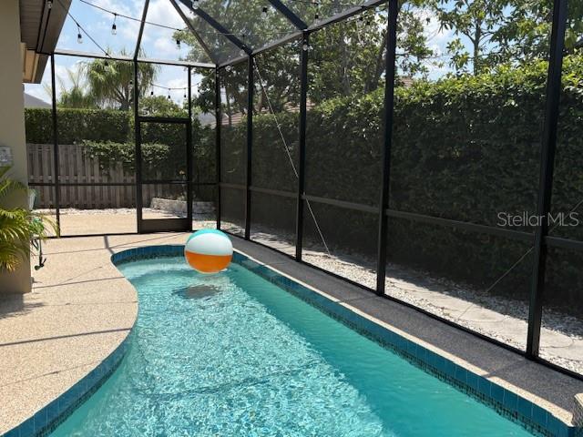 This beautifully updated 3 bedroom 2 bath with secluded private pool, is move in ready WITH furnishings in the very desirable community of The Trails. This lush serenely landscaped property with an open floor plan and vaulted ceilings features Quartz counter tops, stainless appliances, new lighting, kitchen island, and easy maintenance epoxy coated concrete flooring to name a few. The fenced in, screened pool area with waterfall feature also has new epoxy coated, non slip flooring throughout with an area for an outdoor kitchen or BBQ if desired. The Trails LOW HOA fees and NO CDD fees amenities include a swimming pool, tennis court and clubhouse. Conveniently located near the UTC Mall, restaurants, shopping, hospital, Downtown Sarasota, multiple beaches including the world famous Siesta Key Beaches only 10 miles away! PLUS New roof installed 1/2025! and A/C was replaced in 2018.