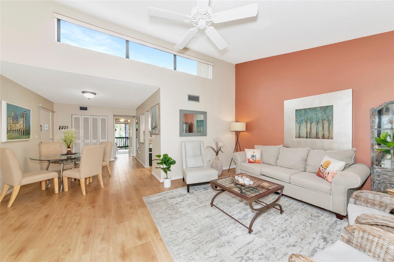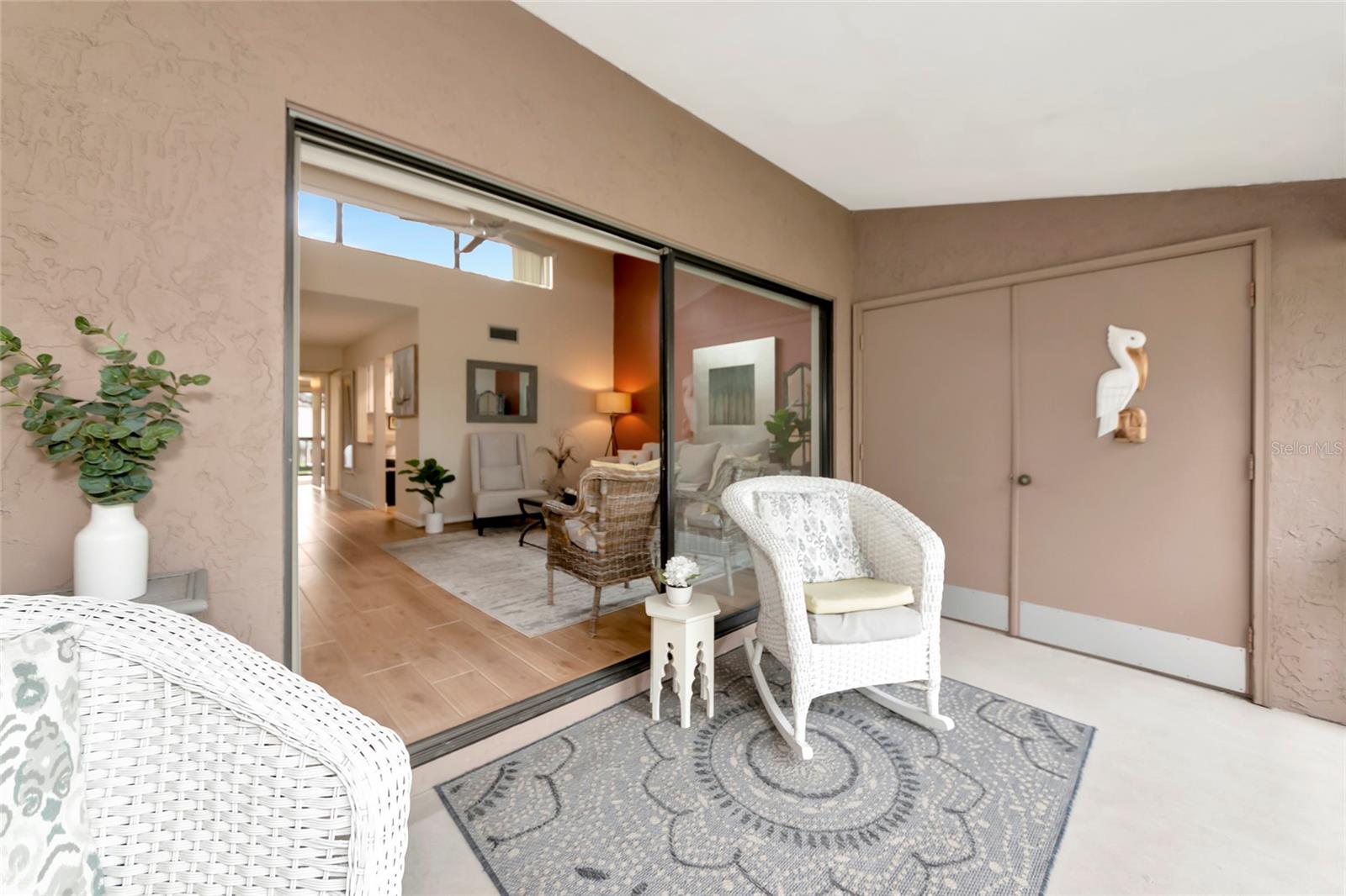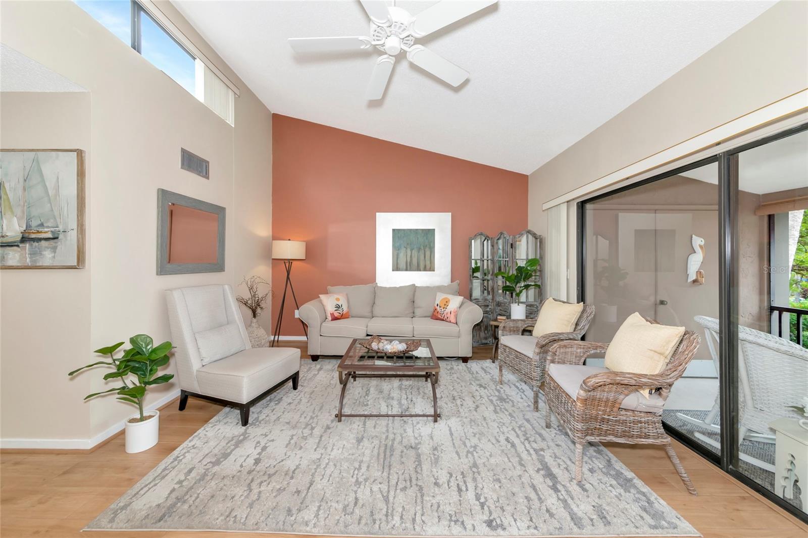 Welcome to Pelican Cove – Sarasota’s a one-of-a-kind hidden gem, nestled within 75 acres of lush, tropical landscape and “Old Florida” charm. This 24 hour guard-gated waterfront community offers a lifestyle like no other, with miles of scenic walking trails winding through a bird sanctuary and vibrant botanical gardens. Enjoy resort-style amenities including: heated swimming pools, A state-of-the-art fitness center, lighted tennis courts, 3 active clubhouses with a packed calendar of events. And so much more. The Harbor at Pelican Cove features: 85 slips for sailboats and powerboats up to 40 feet; hundreds of storage racks for kayaks, canoes and paddleboards; 4 launches from the boardwalk, 2 of them floating easy launches; fishing docks; and a large gazebo for social gatherings. 1-bedroom, 1-bath designer-furnished condo is turnkey ready—just bring your suitcase! Soaring cathedral ceilings, clerestory windows, and a sun-drenched screened porch create a light and airy atmosphere. Step out of the living room onto your private balcony, sip coffee, and enjoy the peaceful view of the pool and canal beyond. On the balcony you will find a spacious utility room. Inside, you’ll find hardwood laminate floors throughout, upfront is large bedroom that has ample closet space, and its own private balcony as well. Whether you're seeking a full-time residence or a seasonal getaway, this condo offers an affordable entry into the coveted Pelican Cove lifestyle—where nature, relaxation, and recreation meet. Schedule your Private showing today!!!!!