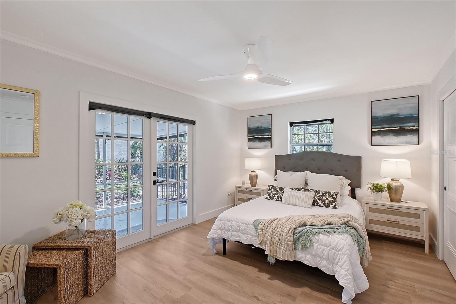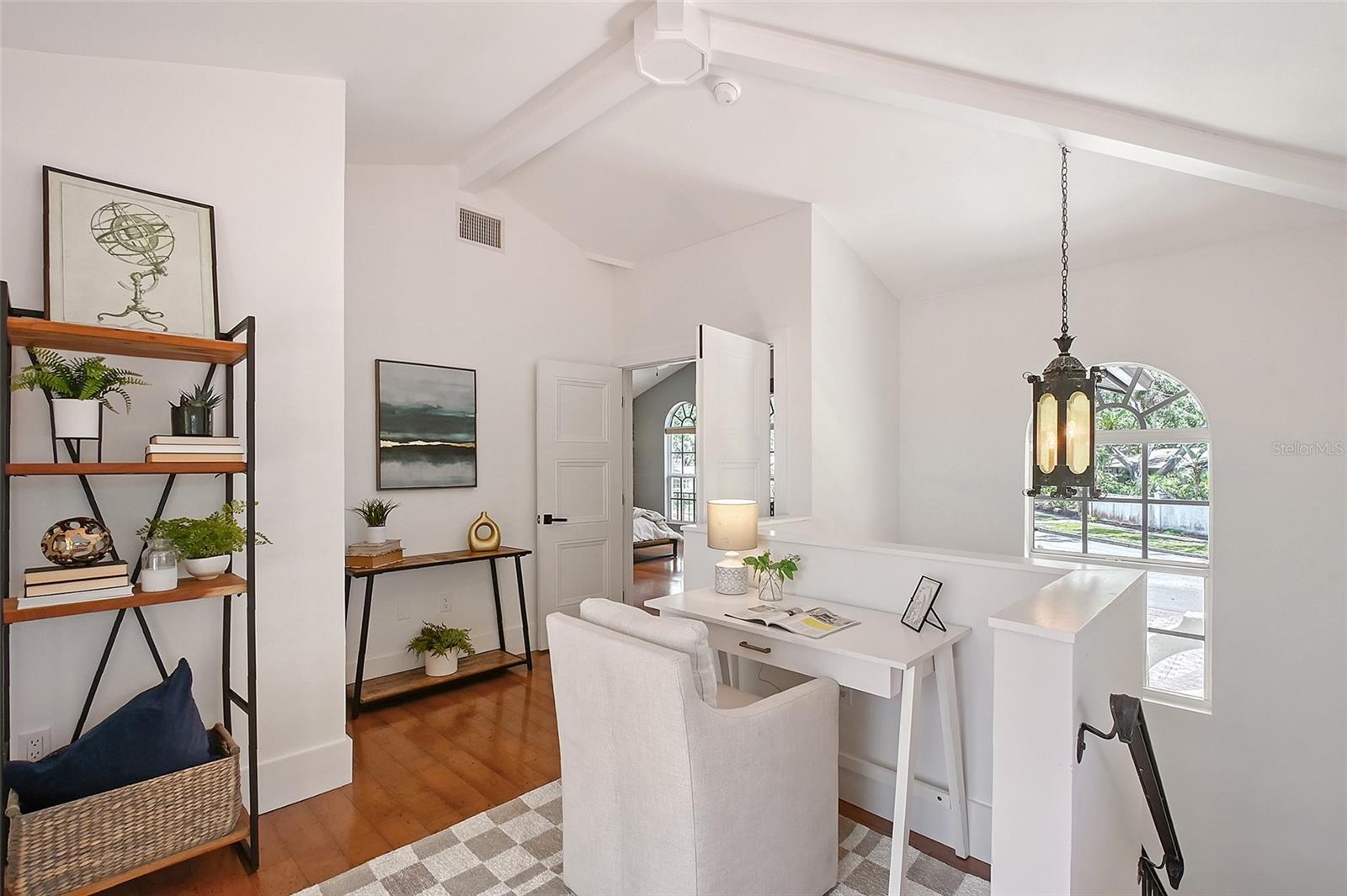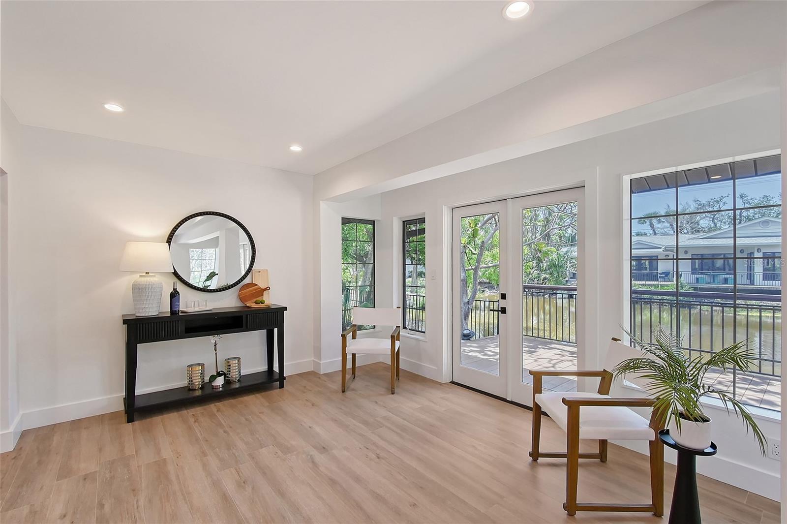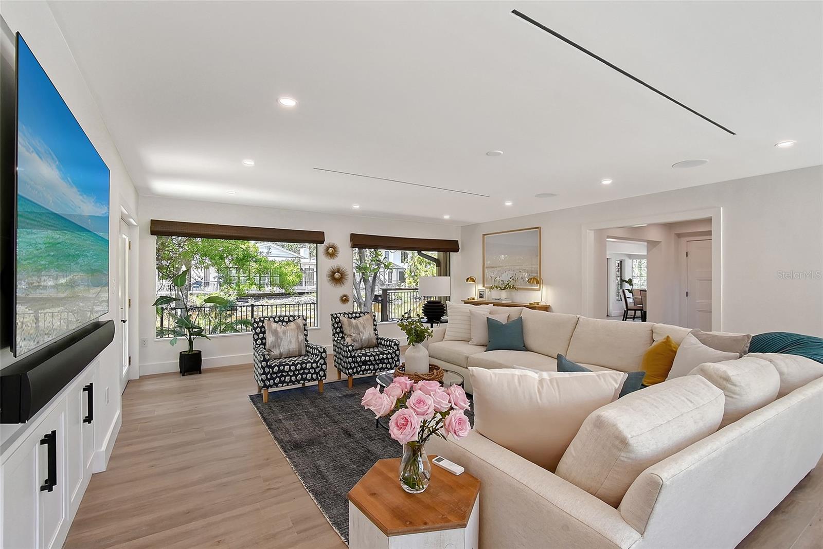 Welcome to this beautifully updated Indian Beach Sapphire Shores West of Trail residence, ideally located just steps from the Bay with quick access to downtown Sarasota, SRQ Airport, UTC Mall, and the white sands of Lido Beach. Nestled on a lushly landscaped half-acre lot, this smart home is a rare blend of comfort, elegance, and indoor-outdoor living. Offering 2,974 square feet of refined space, this 3-bedroom, 2.5-bath home features a spacious layout ideal for both everyday living and entertaining. The heart of the home is the expansive gourmet kitchen, appointed with Miele appliances, an oversized kitchen island with breakfast bar, wood-beam ceilings, and an open flow to flexible dining or family room space. The large living room is bathed in natural light from two large picture windows and a door to the back yard - perfect for seamless indoor-outdoor living. Bedroom 2 opens to a private screened porch through French doors — an inviting retreat for guests or family. Upstairs, the primary suite is a true sanctuary. Enjoy a cozy wood-burning fireplace, an open loft for a home office or den, and a private balcony with peek-a-boo views of Sarasota Bay sunsets. Step outside to discover an expansive shell stone pool deck with a heated pool, spa, and a shaded gazebo. Multiple areas for lounging and dining invite year-round entertaining in this private tropical haven. Additional features include an oversized, air-conditioned 3-car garage, brick paver circular drive with plenty of parking space, new interior paint, stylish plank tile flooring, and integrated smart home capabilities. This is a rare opportunity to own a thoughtfully designed and impeccably maintained home in one of Sarasota’s most desirable historic neighborhoods.