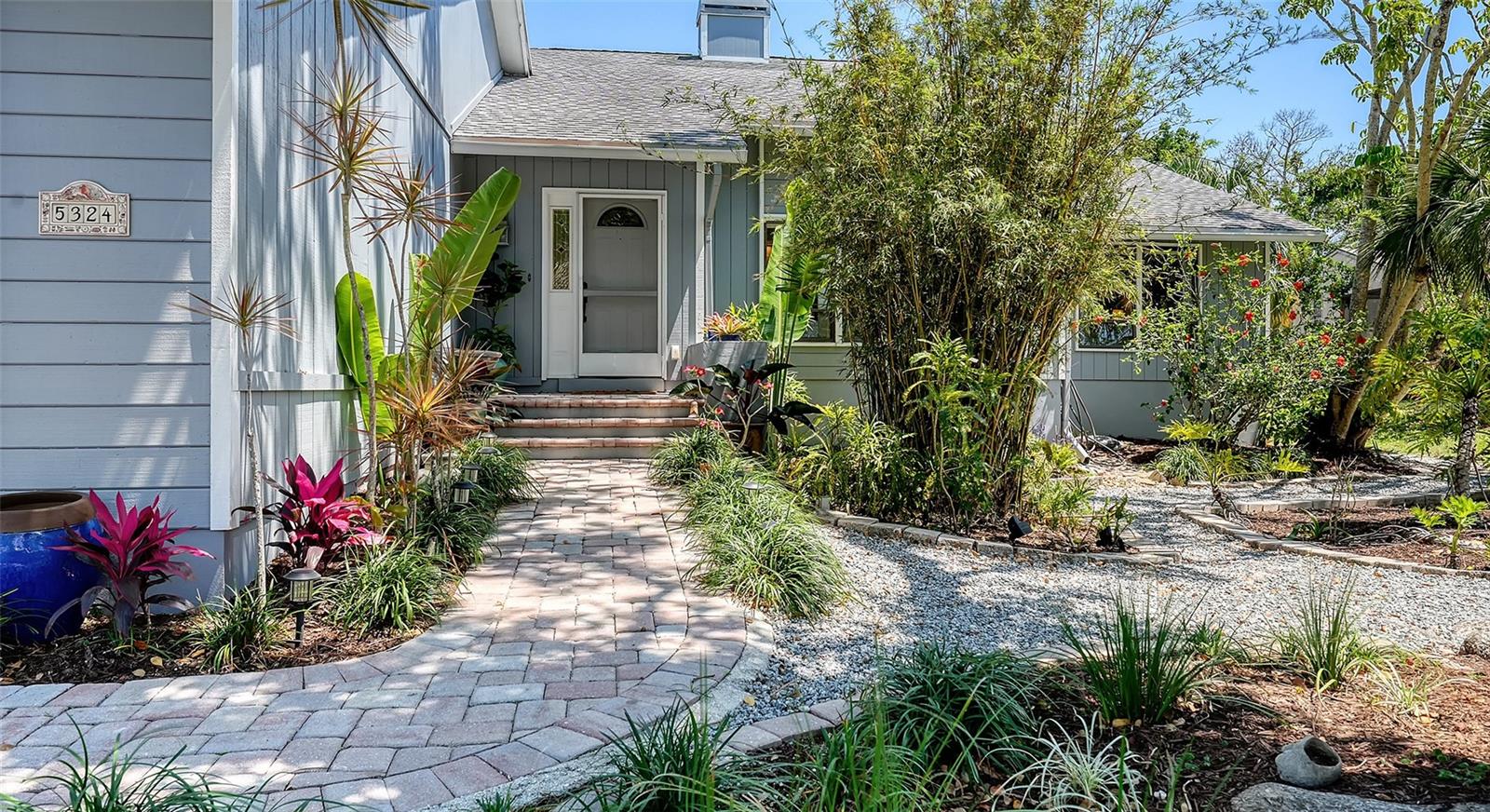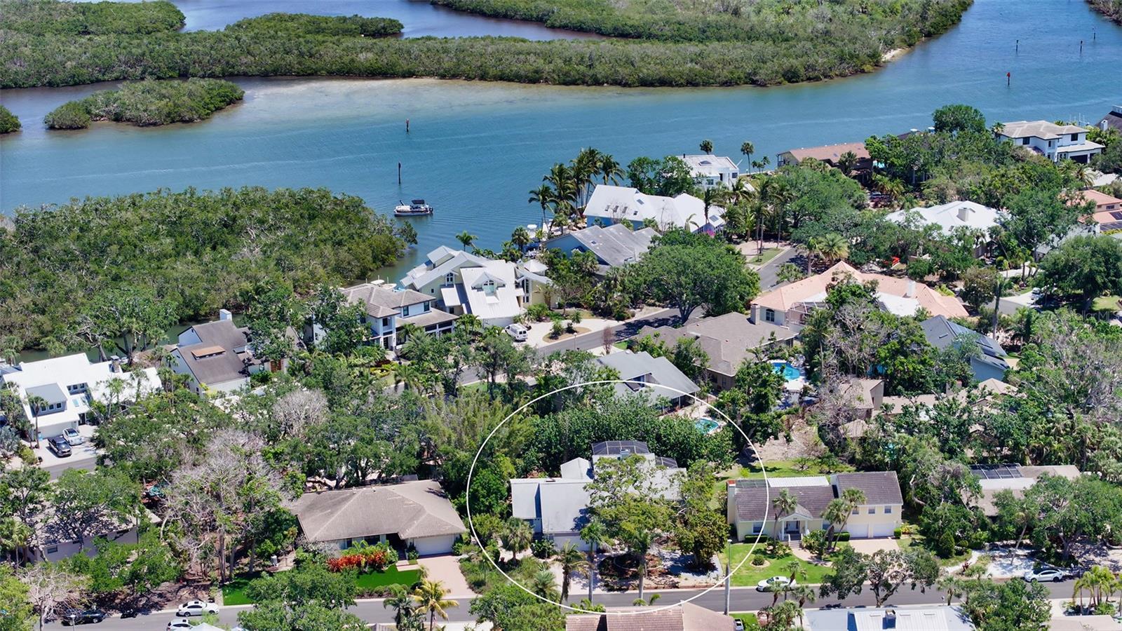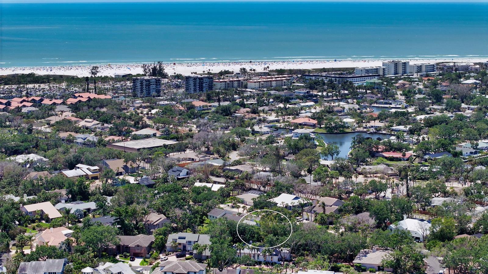 Welcome to this striking contemporary residence tucked away in the highly sought-after community of Siesta Cove—an established subdivision on Siesta Key. Located just moments from the powdery sands of Siesta Key Beach and Siesta Key Village. Built in 1980 and thoughtfully updated, this three-bedroom, four-bathroom home sits on a beautifully designed eco-friendly yard with tropical and native plants on a lot of over 1/4 of an acre. There has been NO HURRICANE DAMAGE OR FLOODING. From the moment you enter, you are greeted by soaring vaulted ceilings, abundant natural light, and a fluid open-concept floor plan designed for both everyday living and stylish entertaining. Rich porcelain tile and engineered hardwood flooring flow throughout the home, while large picture windows and sliding glass doors frame views of the lush exterior gardens and private lanai. The spacious living room features a cozy wood-burning fireplace and seamlessly transitions into the dining area and family room, creating an ideal gathering space. The well-appointed kitchen is equipped with stainless steel appliances, quartz countertops, built-in shelving, and a convenient wet bar, making it both functional, inviting and perfect for entertaining. The primary suite, located on the main floor, is a true retreat with engineered hardwood floors, a generous walk-in closet, a spa-inspired ensuite bath, and direct access to the lanai. Two additional bedrooms are also located on the main level, each served by their own full bathrooms. There is a den on the first floor that is currently used as a 4th bedroom. A versatile loft space on the second floor provides additional living flexibility—perfect for a home office, media room, playroom, or guest quarters. The rear of the home opens to a breathtaking two-story screened lanai—an architectural focal point that dramatically extends the living space outdoors. Surrounded by lush tropical landscaping, this impressive area includes multiple seating zones, a rear porch, patio, and an elevated deck—ideal for entertaining or simply enjoying the tranquil Sarasota evenings. Exterior highlights include garden lighting, sliding doors, rain gutters, and a welcoming front porch. Additional features of the home include a full-size laundry room with washer and dryer, an attic ventilator for improved airflow, ceiling fans in multiple rooms, window treatments throughout, and a programmable thermostat. The attached two-car garage provides ample storage and convenience. The home also benefits from underground utilities, street lighting, and is connected to public sewer and water.