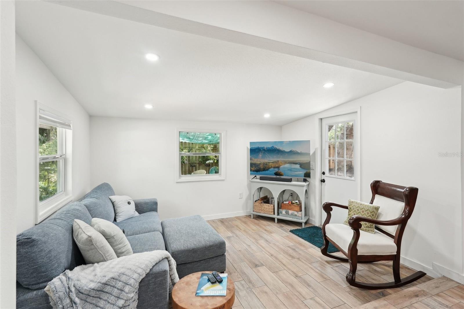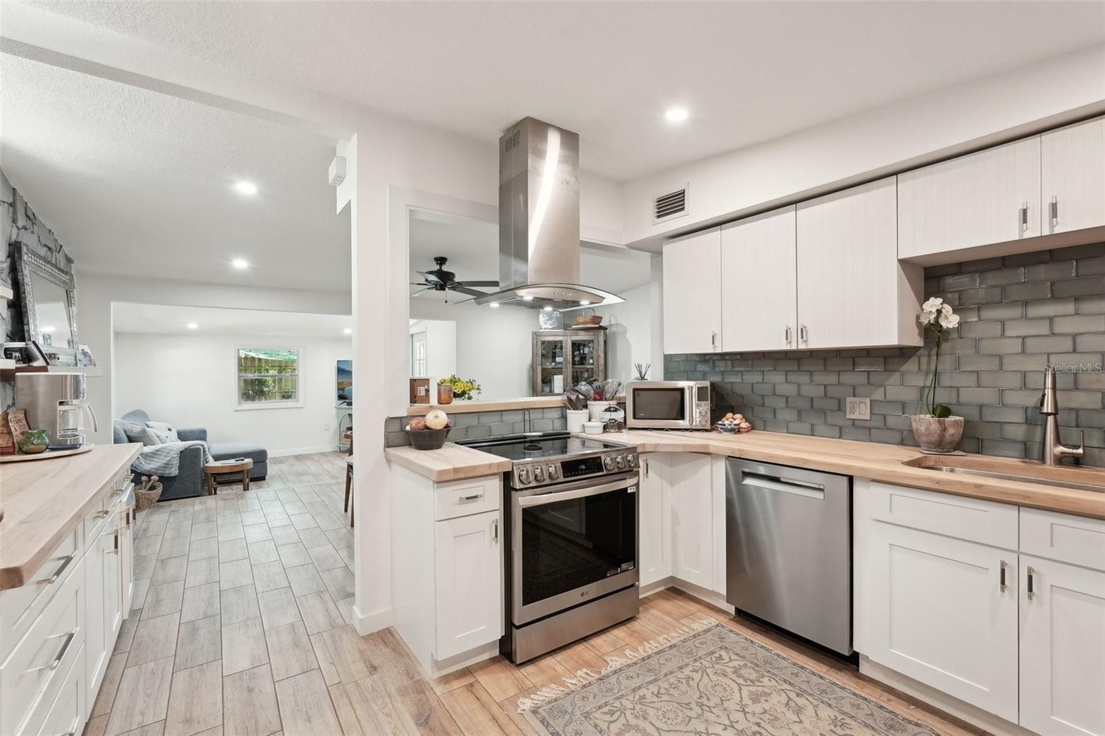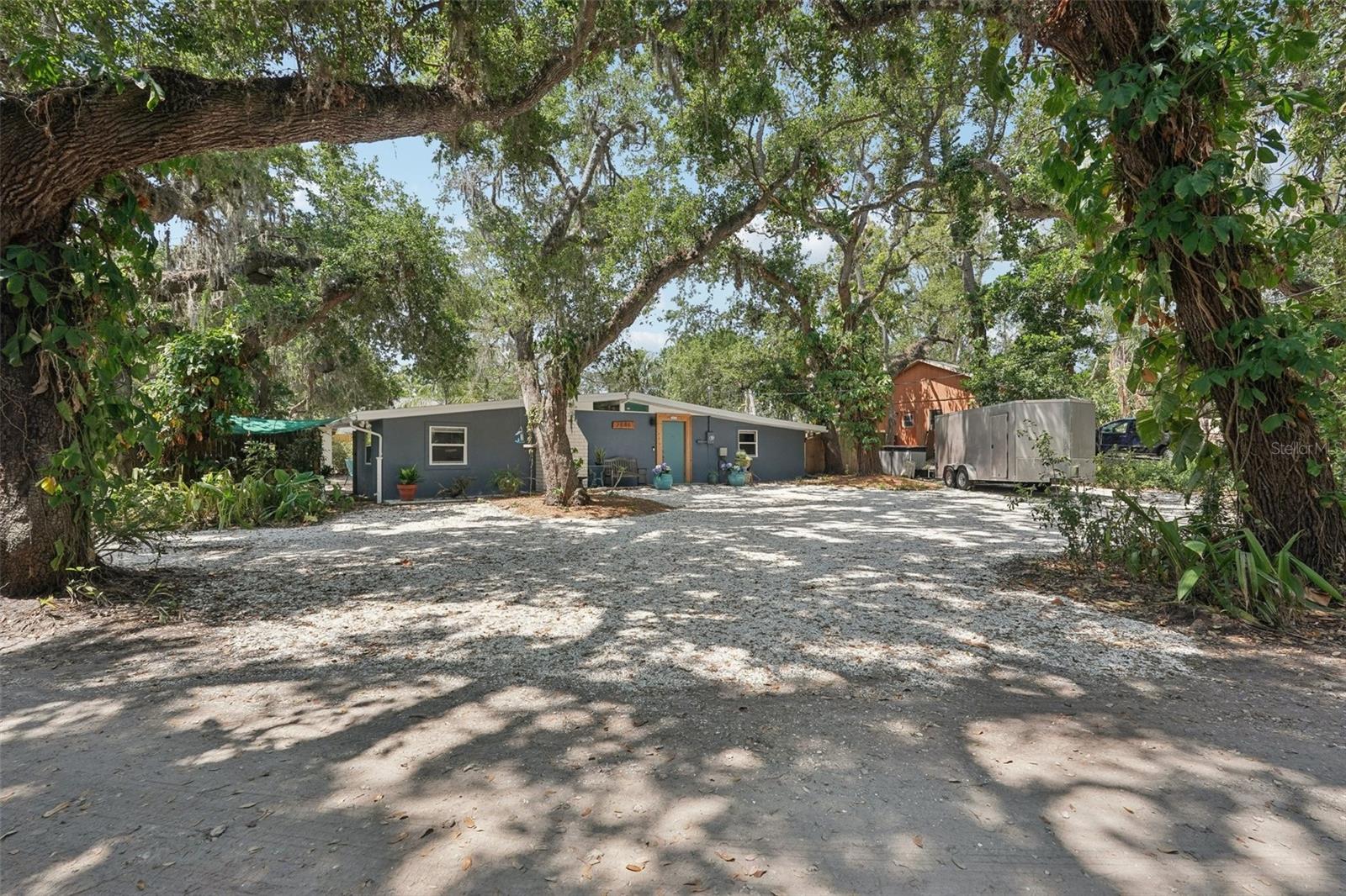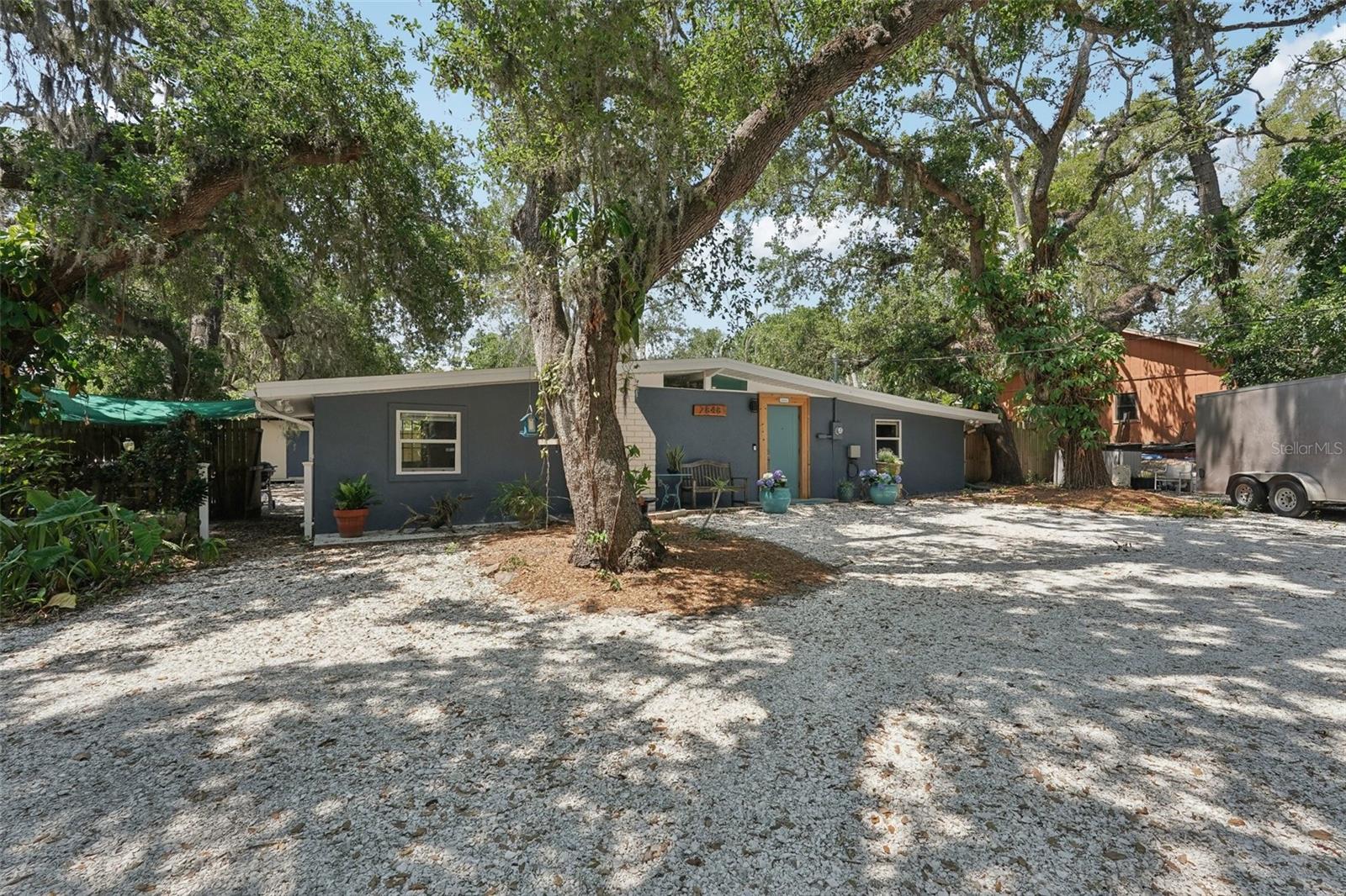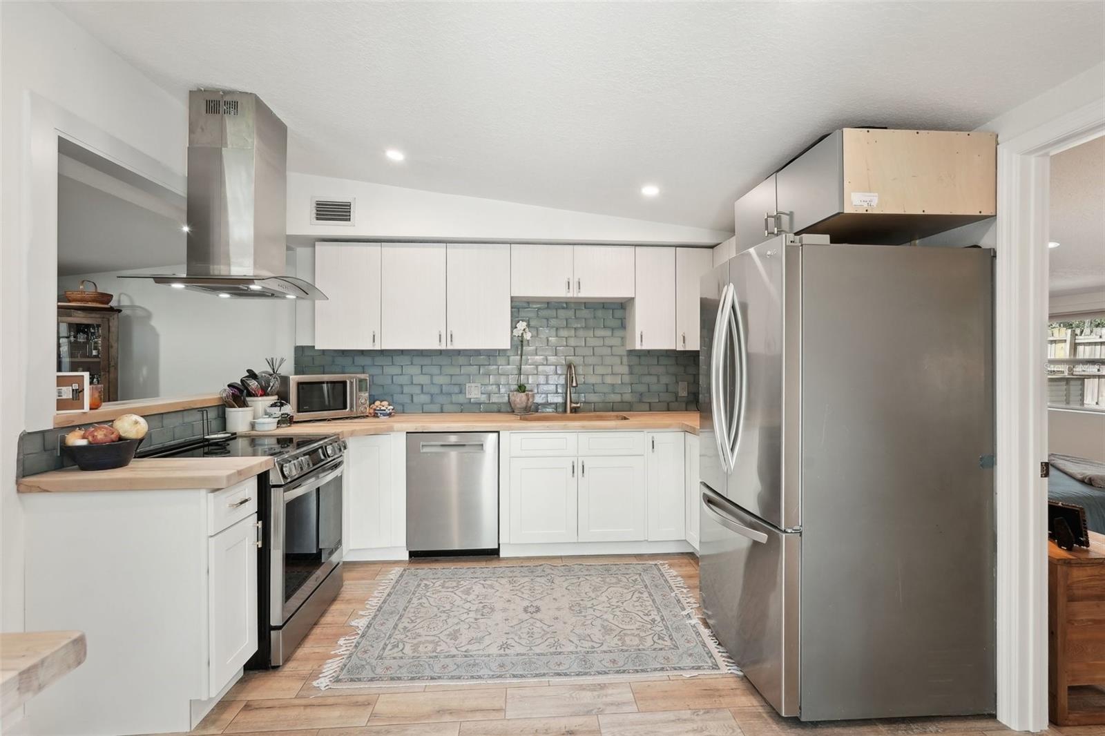 This home is all about serenity at it's finest. End of Trinidad has very few homes and so peaceful with quiet with the exception of nature sounds on this almost quarter acre retreat like setting. This is what it's all about! Most neighbors have been on the street for decades loving it! You will find the 3/1 house Mid Century and modern mixed. Totally brought down to the studs and renovated with all new drywall, moldings, doors in 2024. New range, dishwasher, water heater, shell drive way in 2024. New AC in 2023, New roof in 2018. Kitchen has handcrafted butcher block counters that make the room. Side bar for extra storage just by the fireplace. All stainless steel appliances. Outside you will find the seating area owner calls the orchid room. Stay cool with shade and enjoy your morning coffee. There are 2 areas for chickens if you wish to start yoru own flock. Chicken coop can stay. Fenced back yard keeps it private and perfect for pets. Carport to keep any trailers or equipment hidden. Lots of room to store anything else. New in 2020 shed will also stay along with storage on the other side of house. Large shell driveway for plenty of parking.