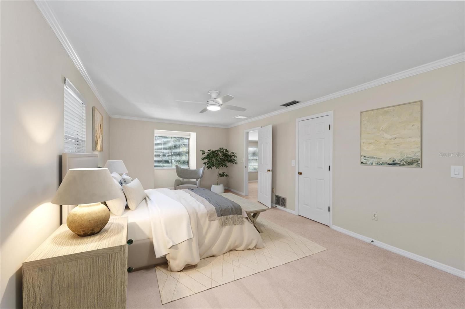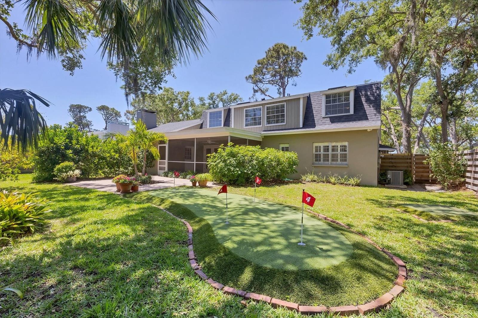 One or more photo(s) has been virtually staged. Welcome to Beneva Woods — where timeless charm meets modern comfort in one of Sarasota’s most beloved communities. Nestled on a quiet, tree-lined street surrounded by majestic oak trees and lush tropical landscaping, this meticulously maintained 3-bedroom, 2-bathroom, 2-story home offers an exceptional living experience both inside and out. Step through the front door and immediately feel at home in the warm and inviting interior, where thoughtful design meets everyday functionality. The eat-in kitchen is ideal for casual dining and entertaining, featuring updated appliances, solid cabinetry, and abundant natural light. Adjacent is a cozy yet spacious family room with a soaring vaulted ceiling, hardwood floors, a classic brick fireplace, and plantation shutters. A formal dining room and living room provide the perfect setting for hosting gatherings, large or small. The first-floor primary suite offers seclusion and practicality, with excellent storage and convenient access to the main living areas. Upstairs, you’ll find two oversized bedrooms, each with walk-in closets, and a large open loft — an ideal space to serve as a home office, media room, playroom, or creative area. Step outside into your own private backyard retreat. The screened lanai opens to a beautifully landscaped, fully fenced yard boasting a brick patio, colorful gardens, and your very own synthetic turf putting green and chipping tee — a unique perk for golf enthusiasts. Those seeking an active lifestyle will especially appreciate the location — the home is within walking and biking distance to Red Bug Slough Preserve, a hidden gem with nature trails, a playground, picnic areas, and a fishing dock. In addition, the Legacy Trail — a scenic, paved recreational trail stretching over 20 miles from downtown Sarasota to Venice — is easily accessible. Excellent for biking, jogging, skating, or a casual stroll, the trail is built along a former railroad corridor and offers a flat, well-maintained path suitable for all ages and skill levels. Beneva Woods is a quiet, well-established neighborhood offering a rare blend of privacy and proximity. Just minutes from world-renowned Siesta Key Beach, top-rated schools, shopping, and dining, this location puts everything within easy reach. Schedule a showing today and discover for yourself why this neighborhood is so highly coveted. With its classic architectural appeal, thoughtful updates, and unbeatable location, this house is poised to become your ultimate dream home.