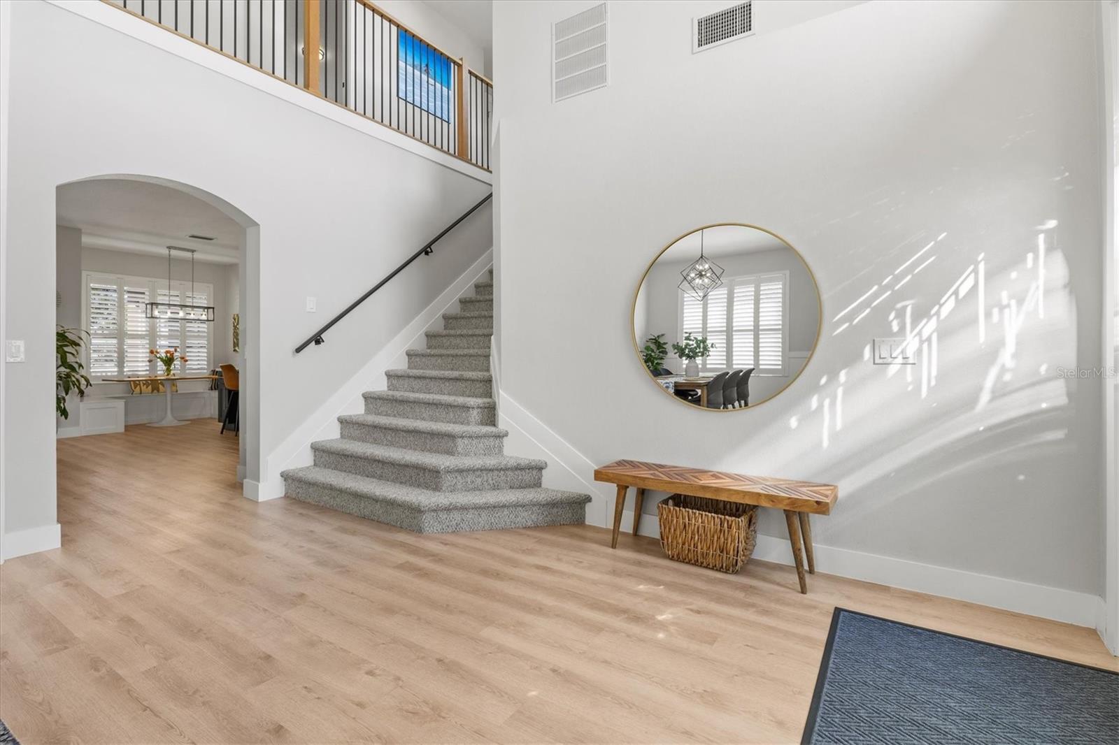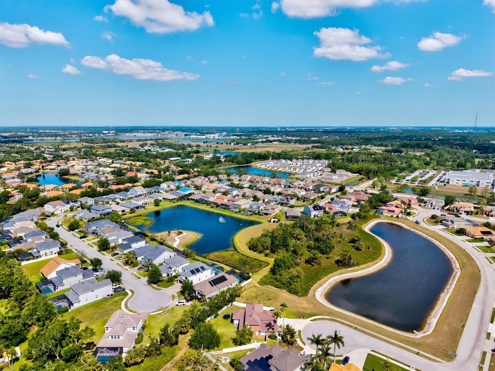 Tucked away at the end of a QUIET CUL-DE-SAC on a PREIMUM OVERSIZED LOT in the prestigious Enclave at the Villages of Pinetree, this beautifully updated estate invites you to experience SARASOTA LIVING at its finest. Surrounded by MANIQURED landscapes and nestled within a tranquil, well-maintained neighborhood, this residence offers a sanctuary for those who seek both luxury and serenity. From the moment you arrive, the home captivates with its STATELY PRESENCE and a PEACEFUL POND VIEW just across the street. A pair of exquisite double front doors, etched with decorative glass, welcome you with elegance. Above, a TOWERING WINDOW floods the entry with natural light, illuminating the SOARING CEILINGS and GRAND STAIRCASE that curves gracefully into the heart of the home. Just off the entryway, a light-filled den offers the perfect FLEX SPACE for a home office, reading room, or quiet retreat. Inside, rich NEW VINYL FLOORING flows throughout the main living areas, adding warmth and continuity. At the heart of the home is a REIMAGINED KITCHEN completed in 2021, featuring CUSTOM CABINETRY, QUARTZ countertops, a deep FARMHOUSE SINK, and top-of-the-line stainless steel appliances. Whether cooking a quiet breakfast or entertaining, this space delivers both function and style. The living room is a showpiece with FLOOR-TO-CEILING WINDOWS that frame the outdoors like art and invite natural light throughout the day. The primary suite, located on the MAIN FLOOR, includes a sitting area and DUAL WALK-IN CLOSETS. Warm laminate flooring and CUSTOM DAKWON WOOD PANELING add depth and comfort. The ensuite has been transformed into a spa-like retreat with SEPARATE vanities, sleek QUARTZ countertops, a GARDEN TUB for soaking, and a SPACIOUS WALK-IN SHOWER tiled floor to ceiling. Step outside to a backyard designed for both relaxation and gathering. The EXPANSIVE, FENCED-IN YARD provides privacy and room to play, while the patio is perfect for entertaining or dining al fresco. A hanging chair tucked in the corner offers a peaceful place to unwind as you enjoy the natural setting. Throughout the home, every detail has been thoughtfully curated—from MODERN LIGHT FIXTURES and elegant WAINSCOTING in the dining room to the WHITE OAK STAIR RAILING and upgraded FANS AND RECEPTACLES. Upstairs bathrooms feature NEW MARBLE TILE in one, refreshed tile in the other, refreshed cabinetry, and updated toilets. The entire interior and garage have been freshly painted with Sherwin Williams Super Paint. Major upgrades include TWO NEW AC UNITS (both under warranty), a 50-gallon water heater, a BRAND-NEW mocha TILE ROOF, and a FULL GUTTER REPLACEMENT. Additional highlights include plantation shutters, a THREE-CAR GARAGE with CUSTOM cabinetry, and a WHOLE-HOME water softener system. This home is part of a serene, family-friendly neighborhood connected by pedestrian walkways and charming bridges—perfect for evening strolls. In the quiet of dusk, deer often gather by the pond, offering a daily reminder of nature’s quiet beauty. Ideally located within walking distance of A-rated Tatum Ridge Elementary and minutes from Big Cat Habitat, Celery Fields, Detwiler’s Farm Market, UTC Mall, and Fruitville Farms shopping center. Enjoy easy access to St. Armands Circle and Lido Beach, both just 30 minutes away. More than a place to live, this is a home where comfort meets sophistication, nature meets convenience, and every detail tells a story of care and quality. Welcome home to the Enclave.