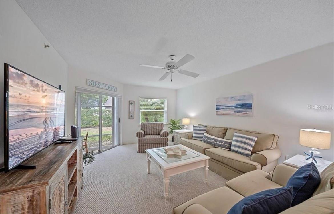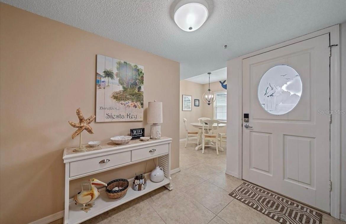 Welcome to paradise on Siesta Key! This delightful elevated first-floor one-bedroom, one-bath unit in the highly sought-after Gulf and Bay Club Bayside combines comfort, style, and unbeatable convenience—with no flood or storm damage. Enjoy direct deeded beach access just across the street to world-famous Siesta Key Beach, and embrace true resort-style living with incredible amenities at your fingertips. Step inside to an open-concept floor plan with a spacious living/dining area, a large eat-in kitchen, and a fabulous glassed and screened lanai overlooking lush tropical landscaping. The comfortable bedroom includes an updated bath, and the unit is complete with a private one-car garage, in-unit washer and dryer, and turn-key furnishings—ready for you or your guests. This is one of the largest one bedroom available on Siesta Key! Important upgrades include a new electrical panel, AC, and water heater—all replaced in 2022, offering peace of mind and modern efficiency. Gulf and Bay Club Bayside features: Two resort-style pools Tennis and pickleball courts Newly renovated fishing dock Walking paths, boat loading zones, and four BBQ areas Clubhouse for private events Freshly painted buildings with new metal roofs This weekly-rental-friendly community also offers onsite management, making it an exceptional income opportunity for investors or those seeking a flexible-use property. Location couldn’t be more attractive—cross the road for beach access, or hop on the free trolley to explore Siesta Key Village or South Siesta. Park your car and instantly feel like you're on vacation! Live the island lifestyle at Gulf and Bay Club Bayside—where coastal charm meets modern convenience.