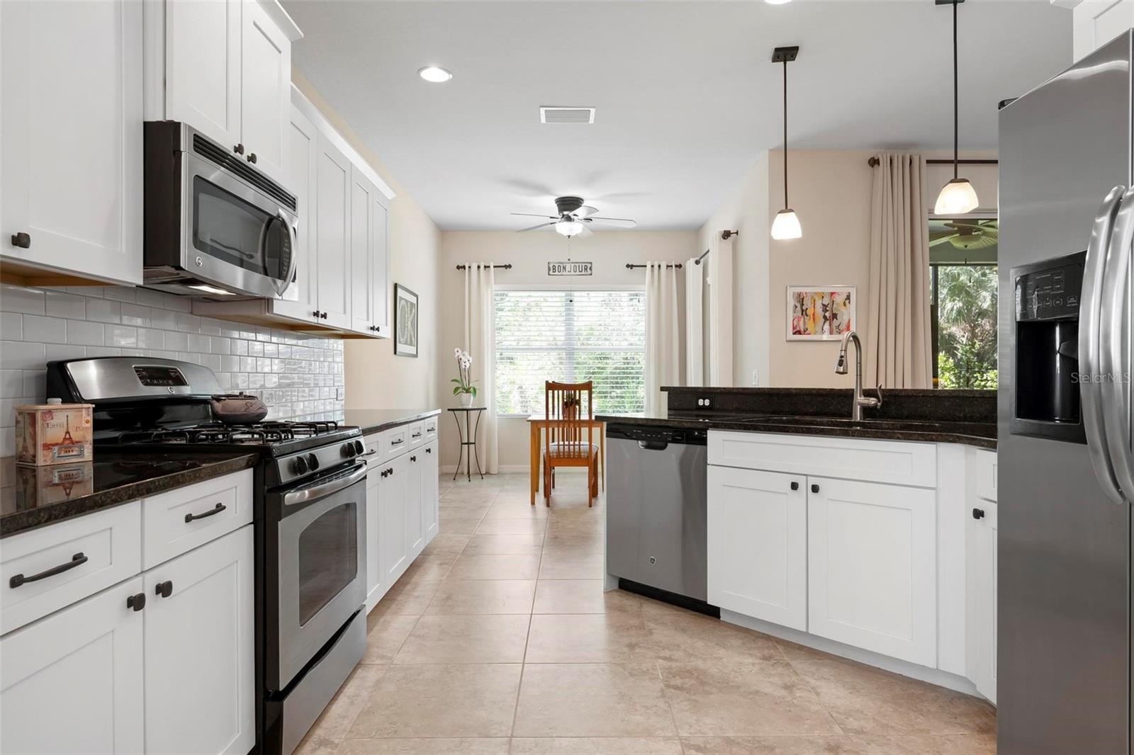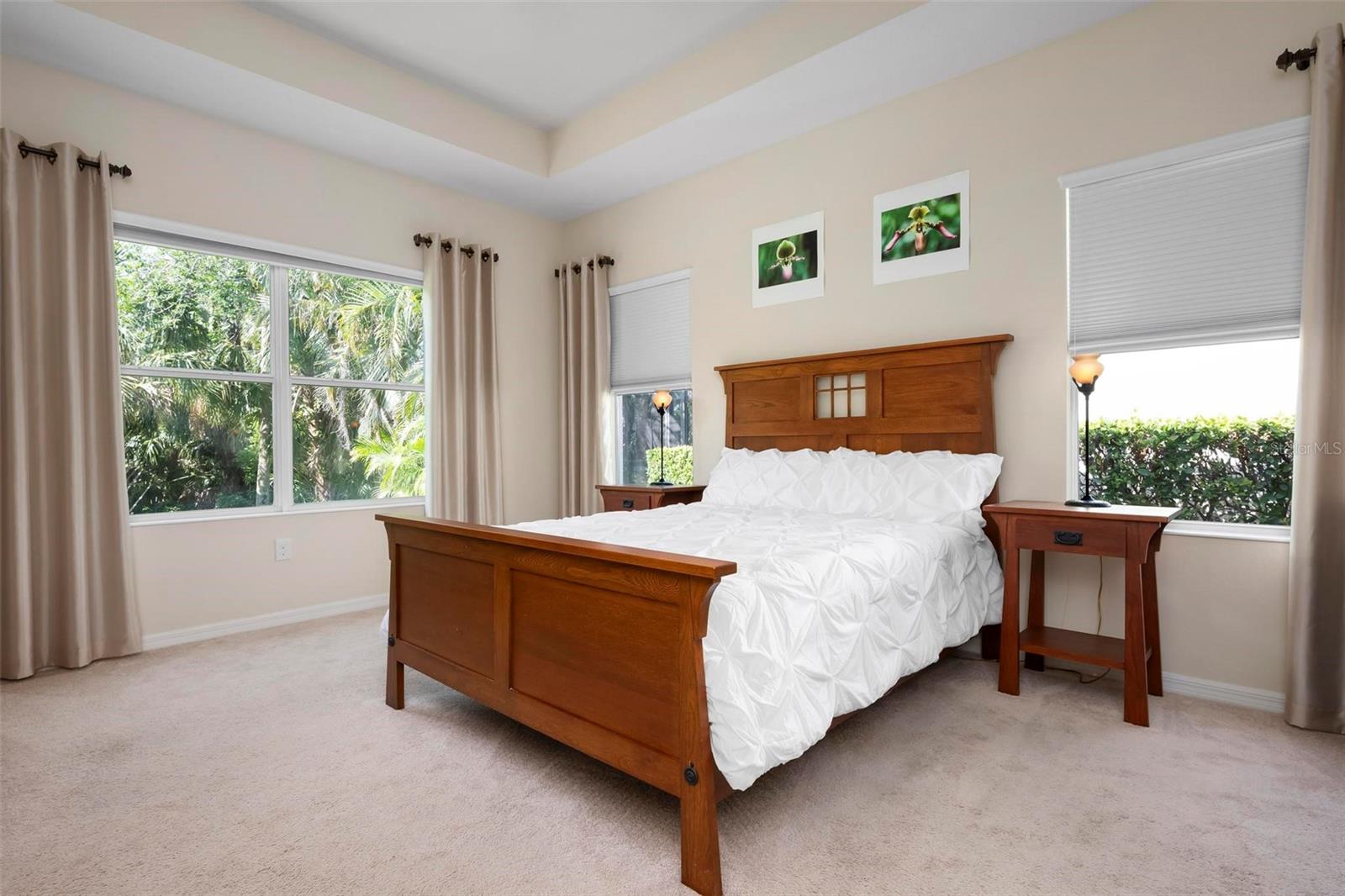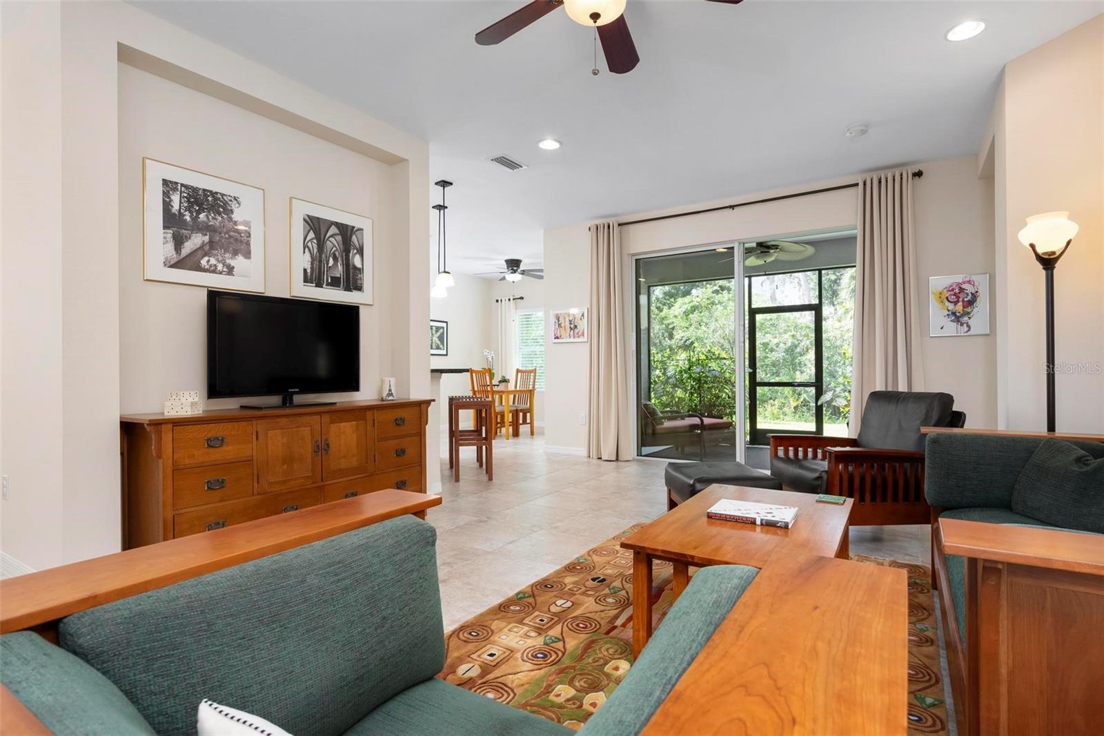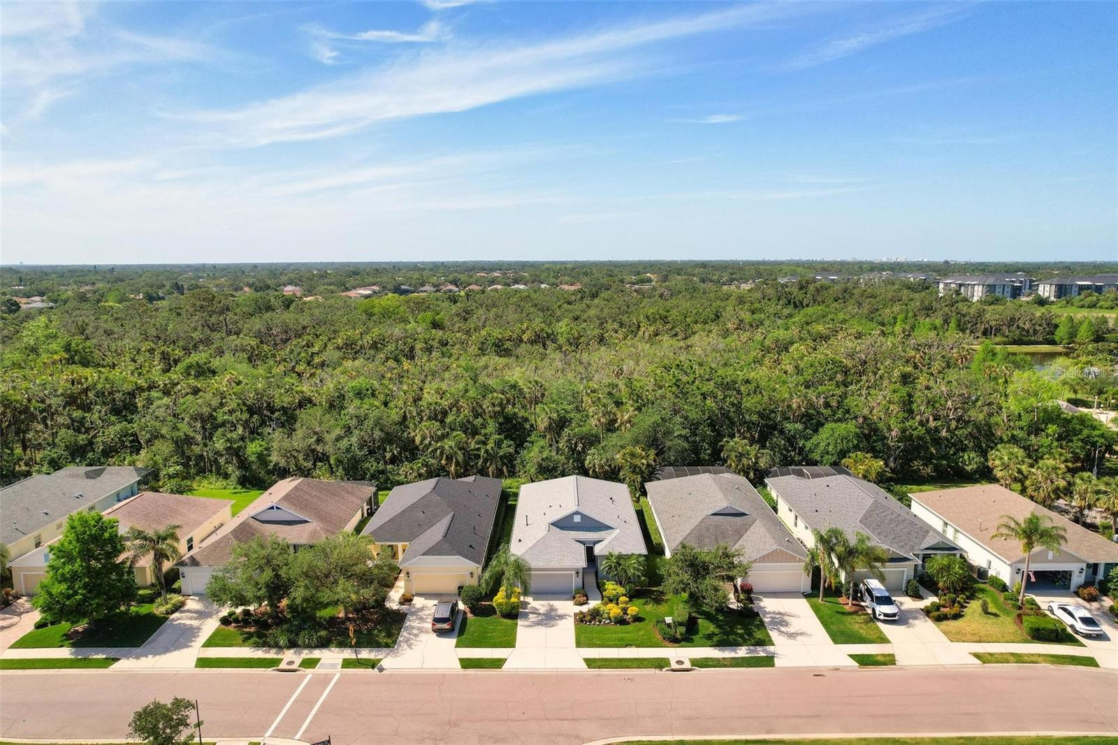 Beautifully maintained home in the gated community of WOODBROOK, built by Neal Communities in 2013. Private preserve lot featuring the sought-after Blue Sky 2 floorplan. NEW ROOF (January 2025) and exterior freshly painted (February 2025). Offering over 2,100 SF of living space, this move-in ready residence includes 3 bedrooms PLUS DEN, peaceful wooded views and stylish décor. Well-appointed kitchen with 42-inch cabinetry, granite countertops, subway tile backsplash, pantry, and breakfast bar. It opens seamlessly to both a cozy breakfast nook and a formal dining area. The spacious living room features sliding glass doors that lead to a covered and screened lanai, ideal for relaxing and enjoying the serene natural surroundings. The primary suite offers a coffered ceiling, large window, walk-in closet plus a secondary closet, and an en-suite bath complete with a frameless glass walk-in shower, dual vanities, and a private water closet. Two additional bedrooms and a full bath are tucked away from the main living areas, while the den, located off the foyer, provides flexible space for a home office, craft room, playroom, or guest suite. Additional: tall ceilings, ceramic tile in main living areas, interior laundry room with built-in cabinetry and sink, hurricane shutters, two-car garage, and irrigation system. This home feels like new! Craftsman-style furnishings & art are available under separate contract. Located in the gated Woodbrook community where residents enjoy a resort-style pool, spa, grill area, playground, park and sidewalks. Conveniently located near world-class shopping at UTC, fine dining, cultural attractions, downtown Sarasota, the pristine Gulf Coast beaches, top-rated golf courses, and Sarasota-Bradenton International Airport. With easy access to the University Parkway corridor, everything you need is just minutes away.