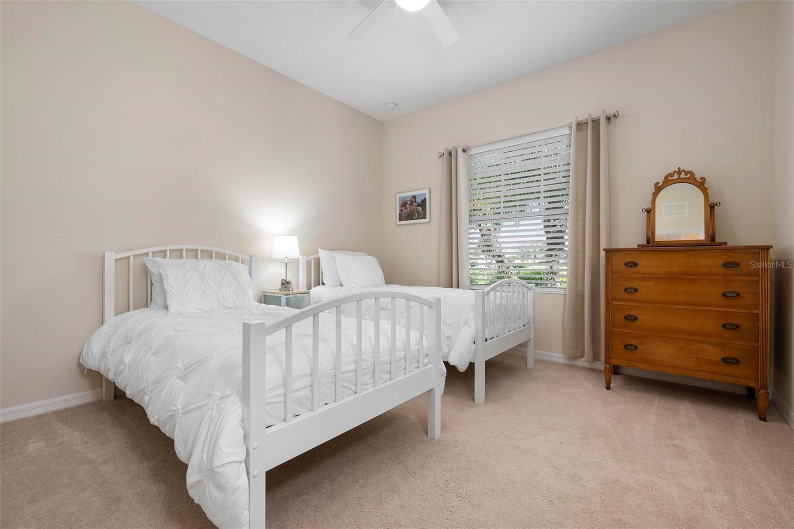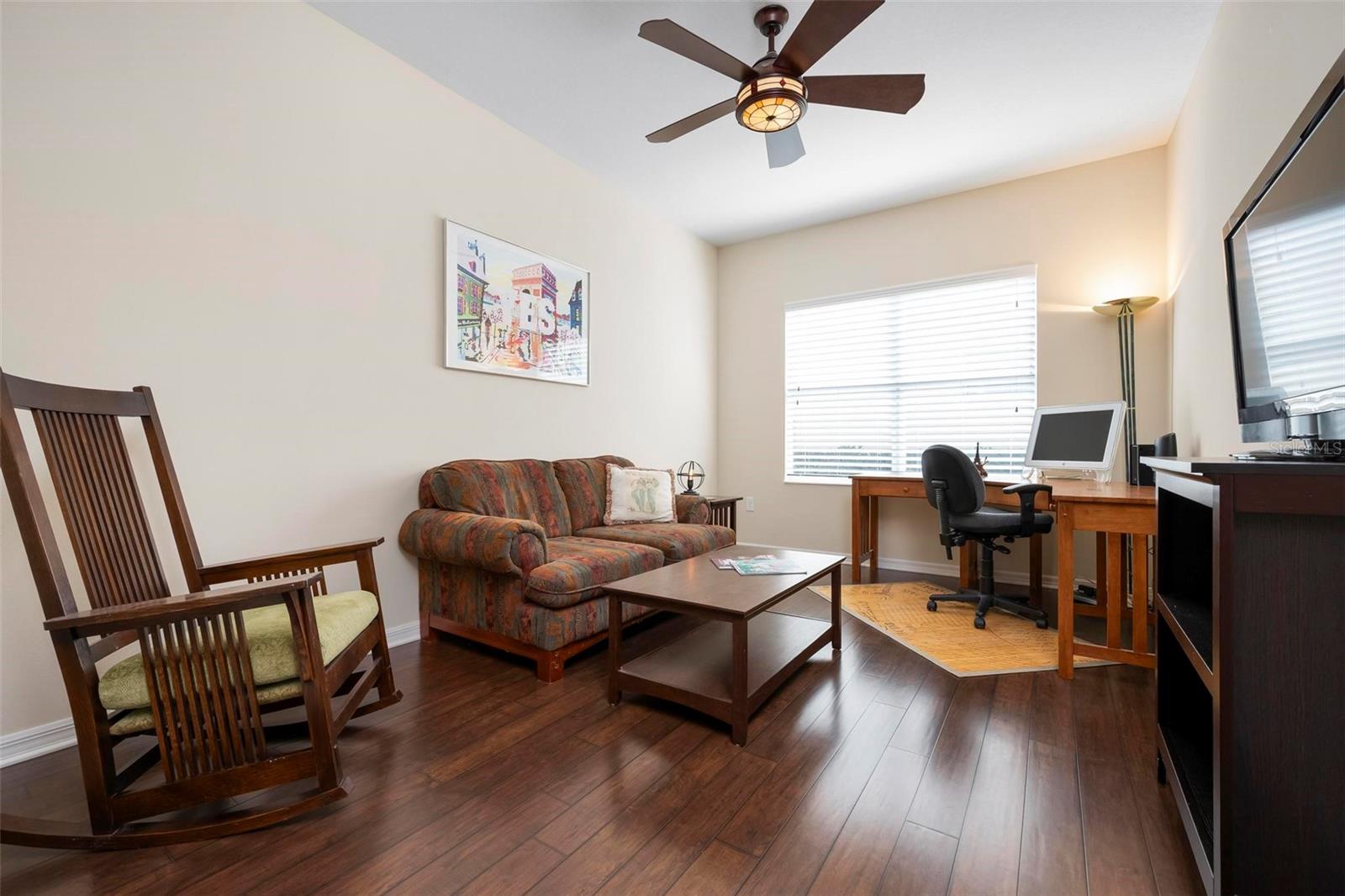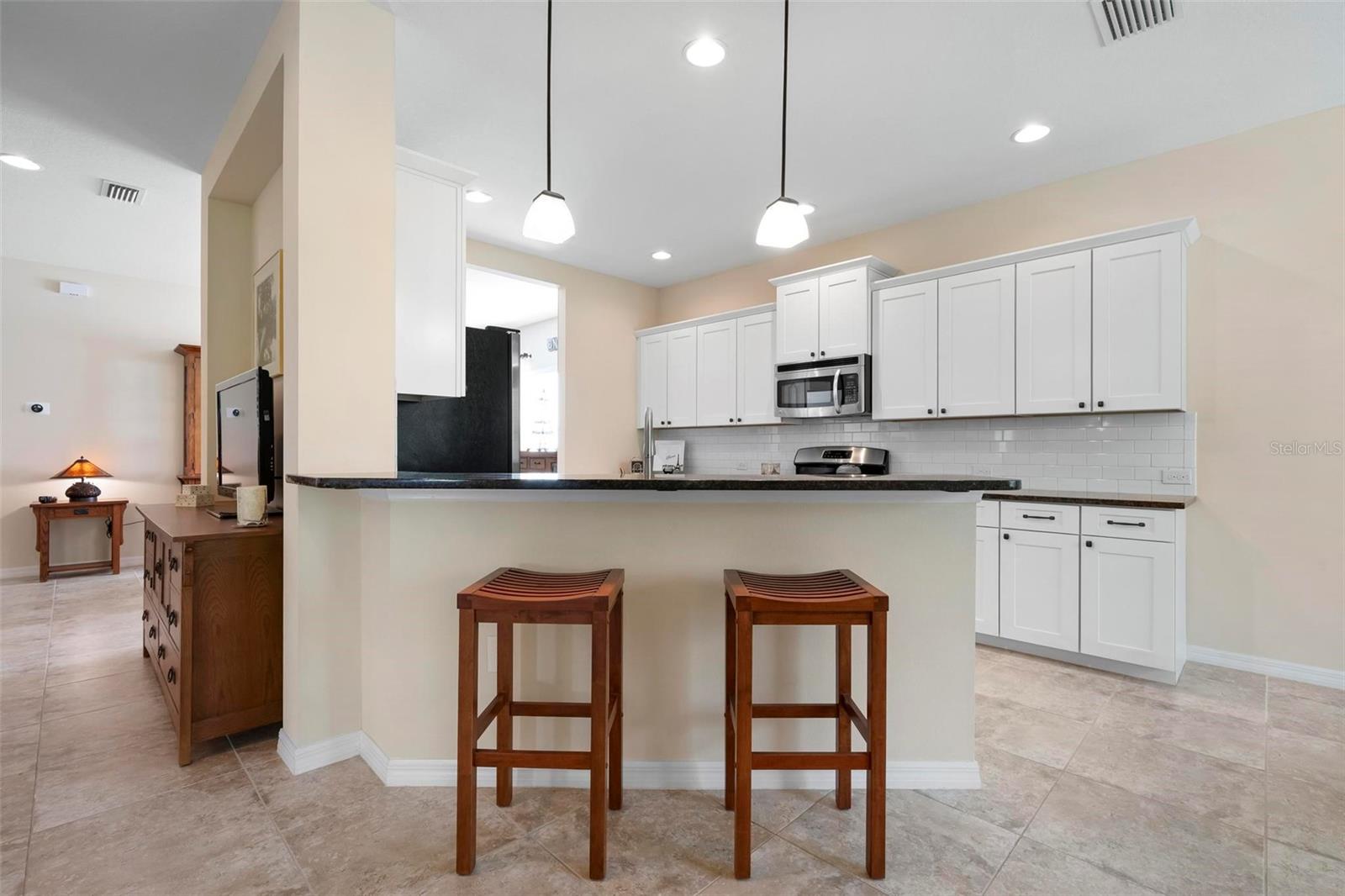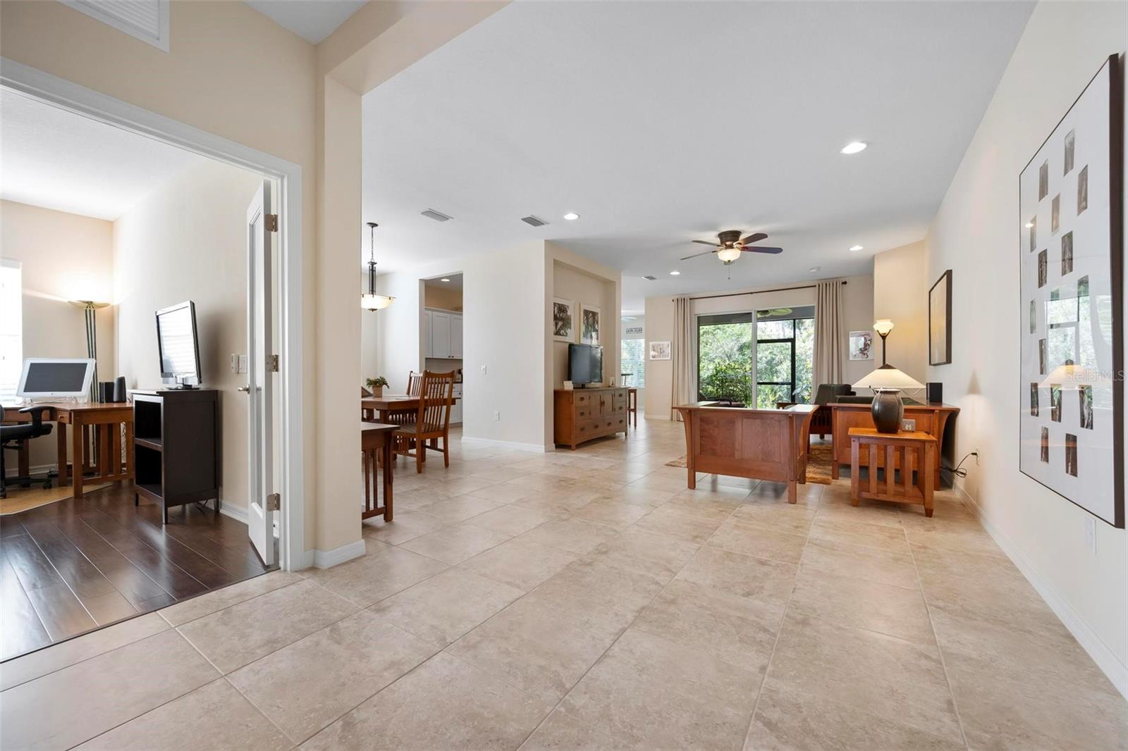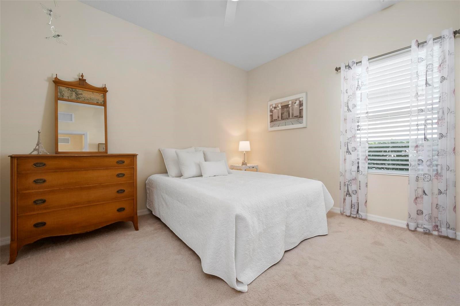 Beautifully maintained home in the gated community of WOODBROOK, built by Neal Communities in 2013. Private preserve lot featuring the sought-after Blue Sky 2 floorplan. NEW ROOF (January 2025) and exterior freshly painted (February 2025). Offering over 2,100 SF of living space, this move-in ready residence includes 3 bedrooms PLUS DEN, peaceful wooded views and stylish décor. Well-appointed kitchen with 42-inch cabinetry, granite countertops, subway tile backsplash, pantry, and breakfast bar. It opens seamlessly to both a cozy breakfast nook and a formal dining area. The spacious living room features sliding glass doors that lead to a covered and screened lanai, ideal for relaxing and enjoying the serene natural surroundings. The primary suite offers a coffered ceiling, large window, walk-in closet plus a secondary closet, and an en-suite bath complete with a frameless glass walk-in shower, dual vanities, and a private water closet. Two additional bedrooms and a full bath are tucked away from the main living areas, while the den, located off the foyer, provides flexible space for a home office, craft room, playroom, or guest suite. Additional: tall ceilings, ceramic tile in main living areas, interior laundry room with built-in cabinetry and sink, hurricane shutters, two-car garage, and irrigation system. This home feels like new! Craftsman-style furnishings & art are available under separate contract. Located in the gated Woodbrook community where residents enjoy a resort-style pool, spa, grill area, playground, park and sidewalks. Conveniently located near world-class shopping at UTC, fine dining, cultural attractions, downtown Sarasota, the pristine Gulf Coast beaches, top-rated golf courses, and Sarasota-Bradenton International Airport. With easy access to the University Parkway corridor, everything you need is just minutes away.