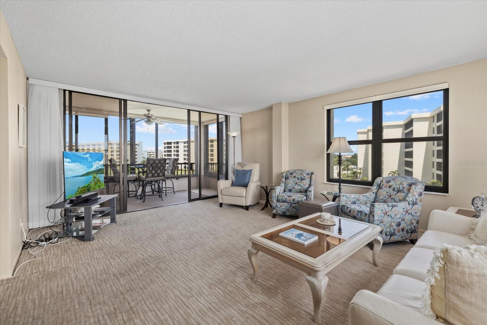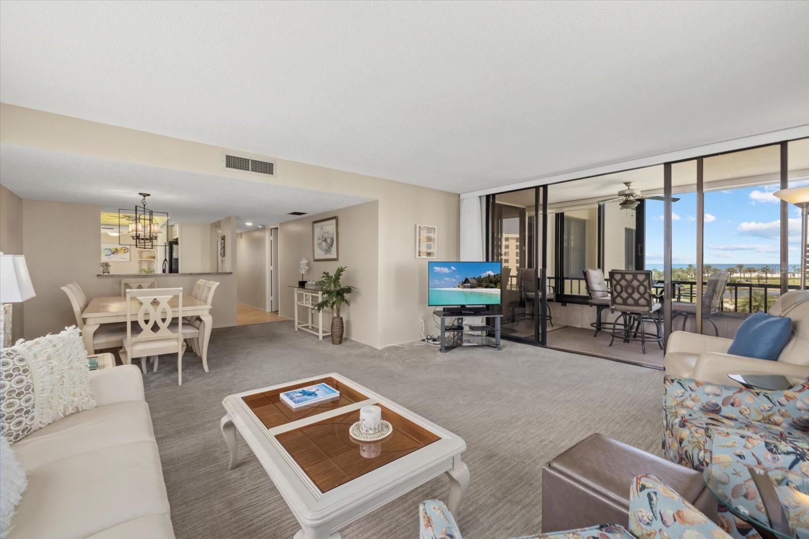 Welcome to Siesta Keys most prestigious resort community. This end unit is full of natural sunlight with views of lakes, fountains, 2 swimming pool, beach and the beautiful Gulf of Mexico. Gulf & Bay Club is 32 acres of gated resort grounds with 800 sq. ft. of pristine, private beach. Amenities include 3 heated swimming pools, tennis, pickleball, saunas, electric car charging stations, new fitness center and lovely clubhouse. This unit is the preferred floor plan with delightful balcony overlooking the beach sunsets. Balcony has sliding windows and screens to make it's usage versatile. Eat-in kitchen Is fully stocked and the unit comes fully furnished. Ready to use as your beach home or collect rental income during season. Beach trolley zips you up and down the island so no need to drive. Short trip to the fun and diverse village or just hang at one of the most beautiful beaches in the USA.