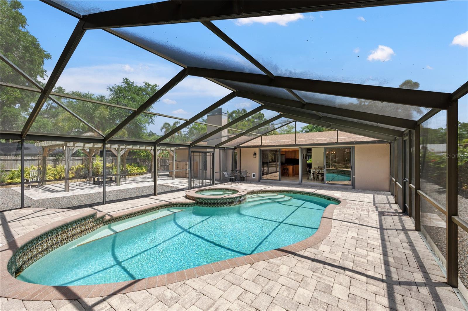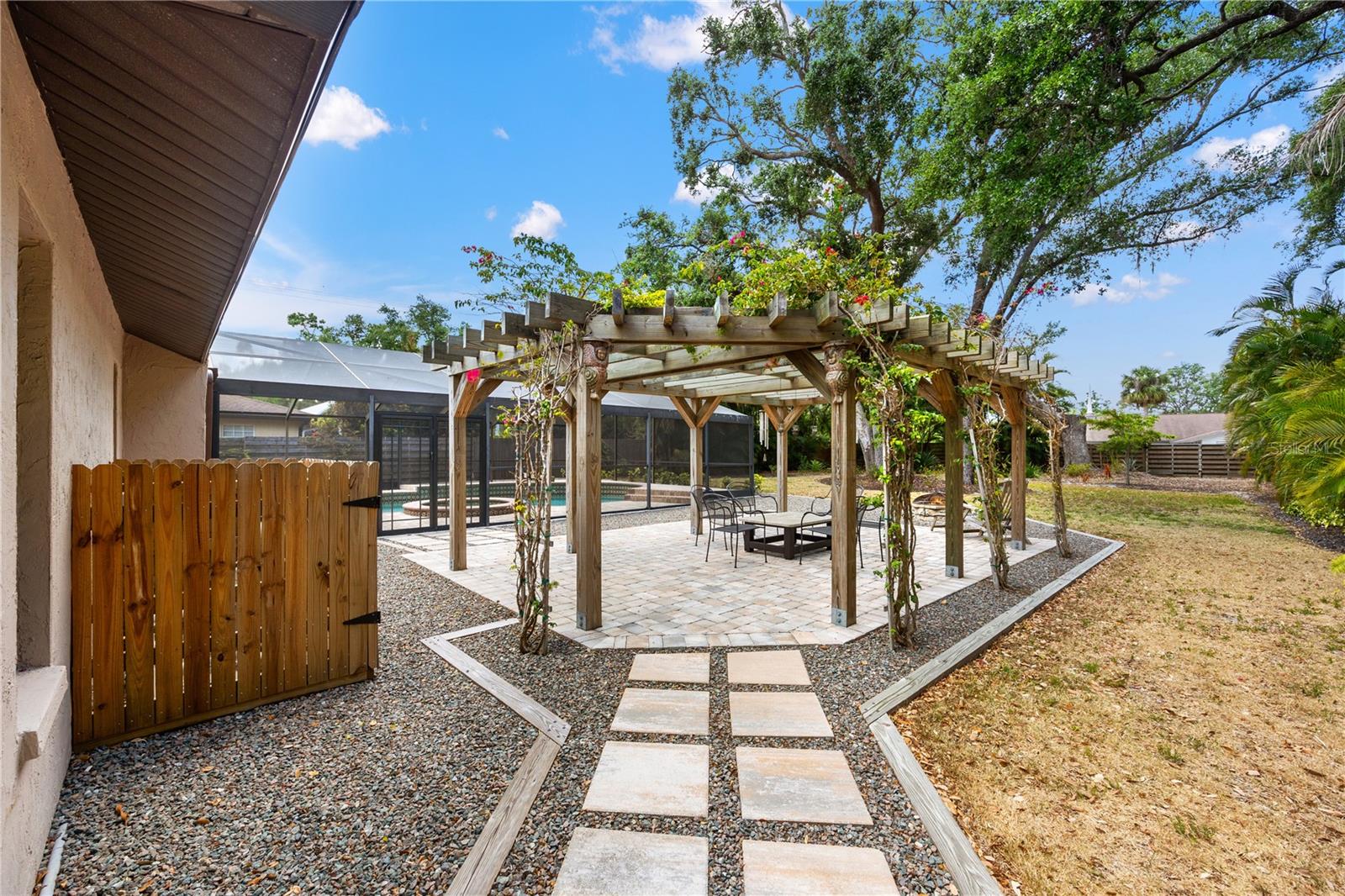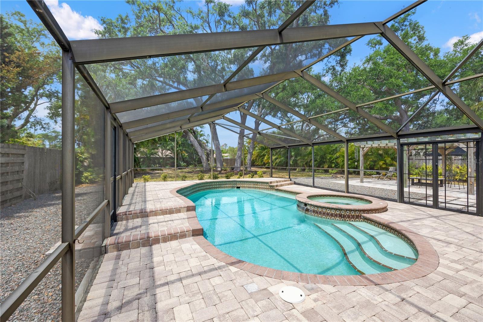 Situated on almost a half acre (.44) of fully fenced land providing privacy and a picturesque setting with mature oak trees and tropical manicured landscaping located in the heart of Sarasota! Southwest exposure equals amazing sunset and patio entertainment. 29x42 screened in SALT WATER POOL with spill-over spa, custom 18x25 pergola and a fire pit all surrounded by brick pavers. Public utilities with underground power lines. NO HOA/CDD fees. NO deed restrictions (offers ample space for boat or RV parking). NO flood zone. High and dry through hurricane seasons, this exceptional block construction home offers peace of mind with a new shingle roof (11/2021). Spacious open concept living with 2,000+ SqFt, split plan, 3 bedrooms, 2 bathrooms, high ceilings, 20”x20” ceramic tile throughout, living room, family room with wood burning fireplace, kitchen has wood soft close cabinets with pull out shelving, pantry, new stainless steel refrigerator, dishwasher, microwave and inside laundry room with storage. Home completely remodeled, move-in ready, impeccably maintained…bring your white gloves! Oversized two car garage has pulldown stairs to a storage area with plywood decking. Entire home including front entry and garage is foam insulated. County approved lot eligible for accessory dwelling unit (DIVISION 9. - ACCESSORY STRUCTURE AND USES | Zoning | Sarasota, FL | Municode Library) Meticulous attention to detail and the finest quality materials. All of this is just minutes from downtown Sarasota, Lido or Siesta Key beaches, restaurants, UTC Mall, and The Legacy Trail access from your backyard.