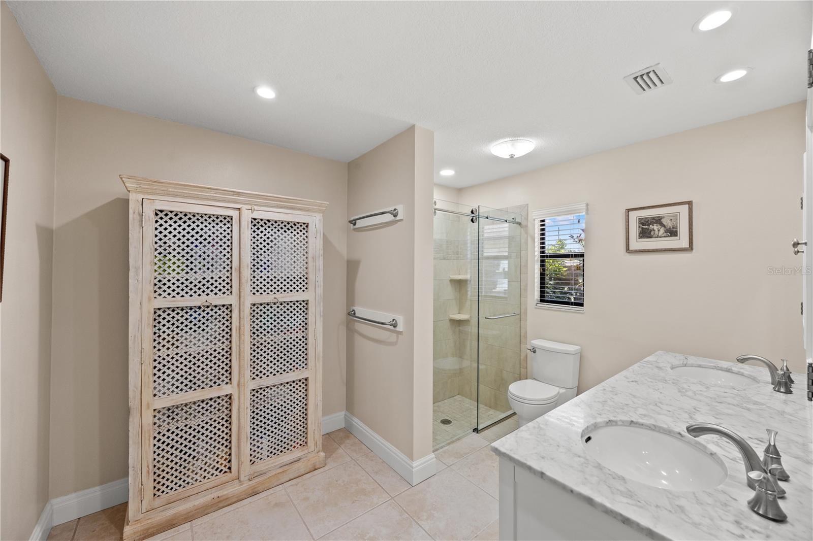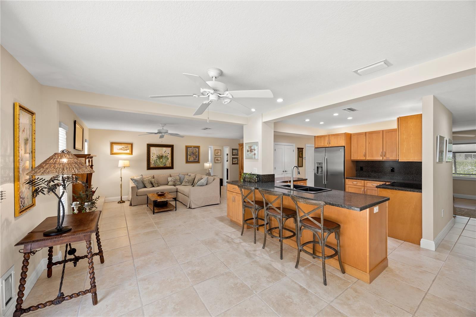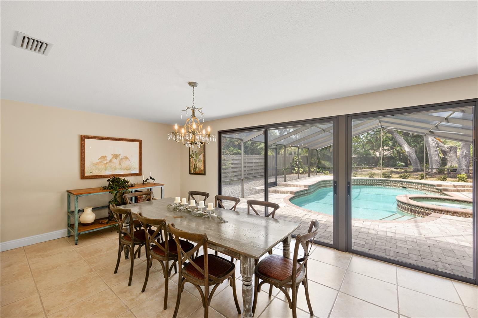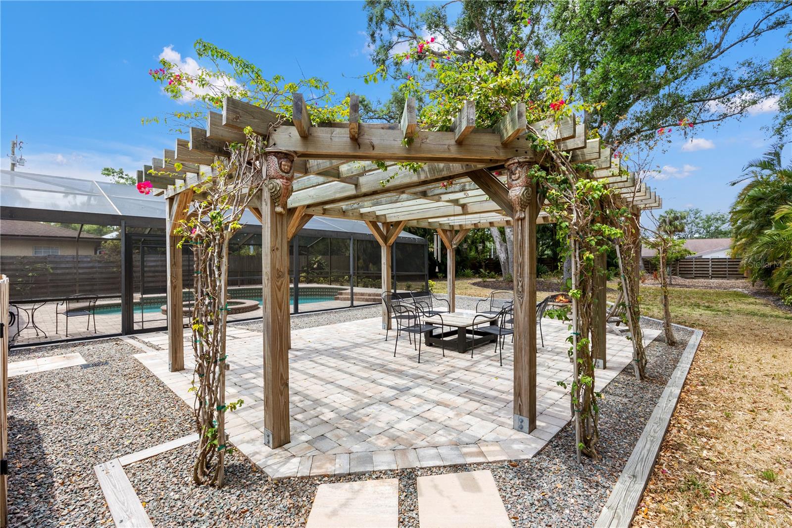 Situated on almost a half acre (.44) of fully fenced land providing privacy and a picturesque setting with mature oak trees and tropical manicured landscaping located in the heart of Sarasota! Southwest exposure equals amazing sunset and patio entertainment. 29x42 screened in SALT WATER POOL with spill-over spa, custom 18x25 pergola and a fire pit all surrounded by brick pavers. Public utilities with underground power lines. NO HOA/CDD fees. NO deed restrictions (offers ample space for boat or RV parking). NO flood zone. High and dry through hurricane seasons, this exceptional block construction home offers peace of mind with a new shingle roof (11/2021). Spacious open concept living with 2,000+ SqFt, split plan, 3 bedrooms, 2 bathrooms, high ceilings, 20”x20” ceramic tile throughout, living room, family room with wood burning fireplace, kitchen has wood soft close cabinets with pull out shelving, pantry, new stainless steel refrigerator, dishwasher, microwave and inside laundry room with storage. Home completely remodeled, move-in ready, impeccably maintained…bring your white gloves! Oversized two car garage has pulldown stairs to a storage area with plywood decking. Entire home including front entry and garage is foam insulated. County approved lot eligible for accessory dwelling unit (DIVISION 9. - ACCESSORY STRUCTURE AND USES | Zoning | Sarasota, FL | Municode Library) Meticulous attention to detail and the finest quality materials. All of this is just minutes from downtown Sarasota, Lido or Siesta Key beaches, restaurants, UTC Mall, and The Legacy Trail access from your backyard.