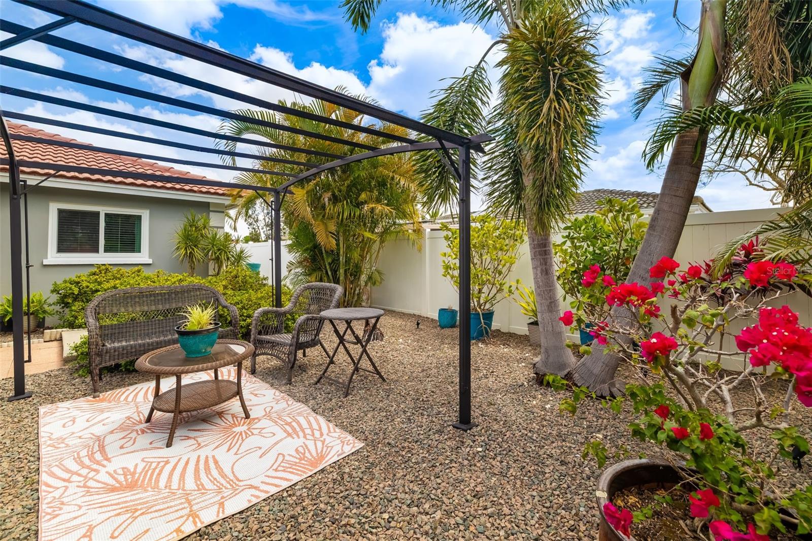 Welcome to 3322 Sheffield Circle — a beautifully updated home in the heart of Sarasota’s desirable Village Green Club Estates. This two-bedroom, two-bath residence effortlessly combines classic charm with modern upgrades and a tile roof. Impact-rated windows and doors throughout offer peace of mind, along with a spacious interior featuring crown molding, recessed LED lighting and elegant porcelain wood-look plank tile flooring throughout. The open living room flows seamlessly into a stunning, updated kitchen equipped with 42-inch soft-close cabinetry, quartz countertops, a sleek glass tile backsplash and Whirlpool stainless steel appliances. Pocket sliding glass doors from the living room, primary suite, and kitchen open onto a serene lanai and sparkling pool, capturing the essence of Florida living. The primary suite is a sanctuary of its own with a walk-in closet, ceiling fan and a luxurious en-suite bath complete with a quartz vanity, walk-in tile shower and private water closet. Guests will appreciate the privacy of a split plan guest bedroom, along with an updated hall bath with a floating quartz vanity. Ideal for entertaining or simply relaxing, the covered and screened lanai offers multiple seating areas, lush tropical landscaping and a newly updated pool cage screen (2024). Additional highlights include a two-car oversized garage with built-in storage, updated HVAC system (2020), whole-house water softener, replumbed piping and an extended driveway parking pad. Minutes from Siesta Key Beach, downtown Sarasota, shopping, dining and golf, this meticulously maintained home has it all. Come live the Florida lifestyle you’ve been dreaming of!