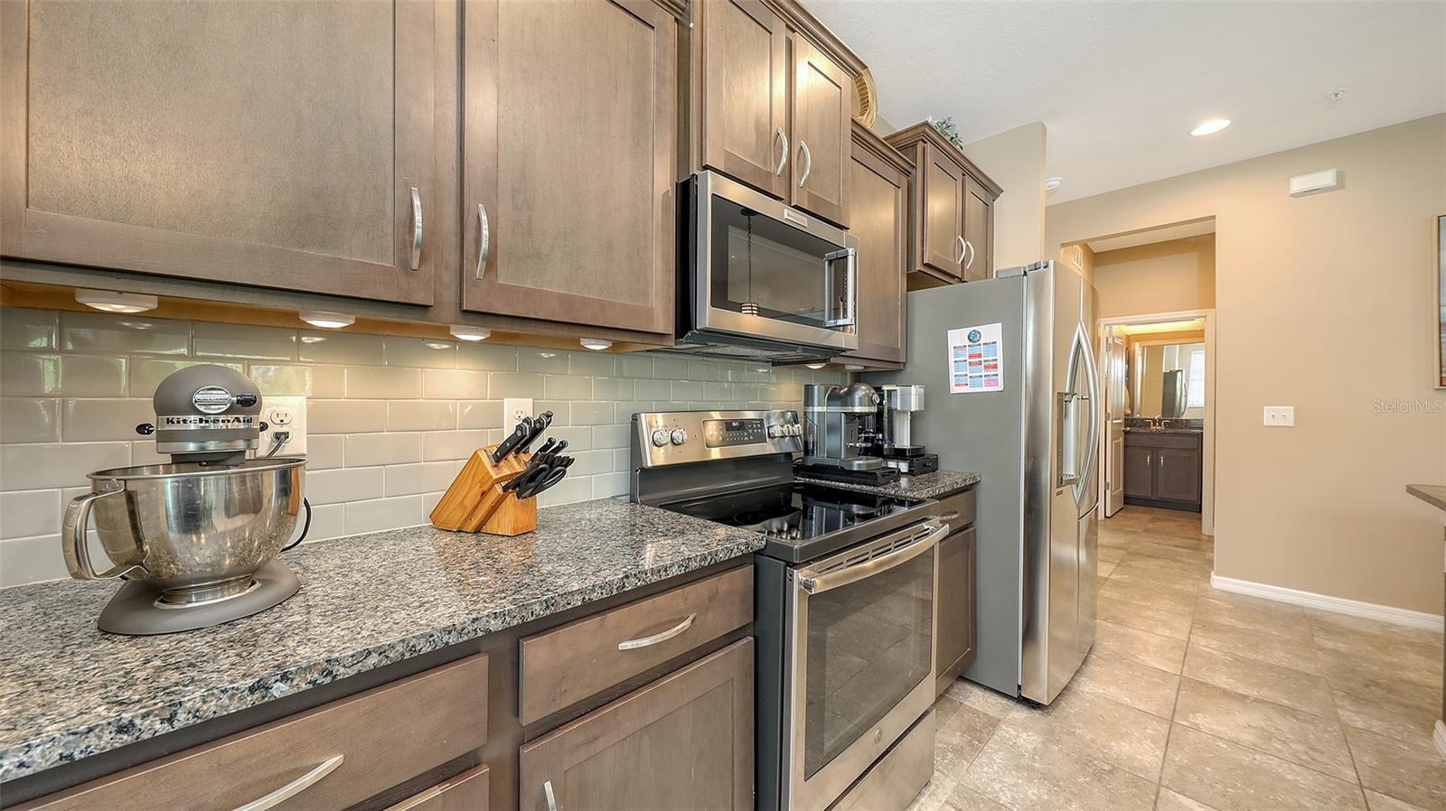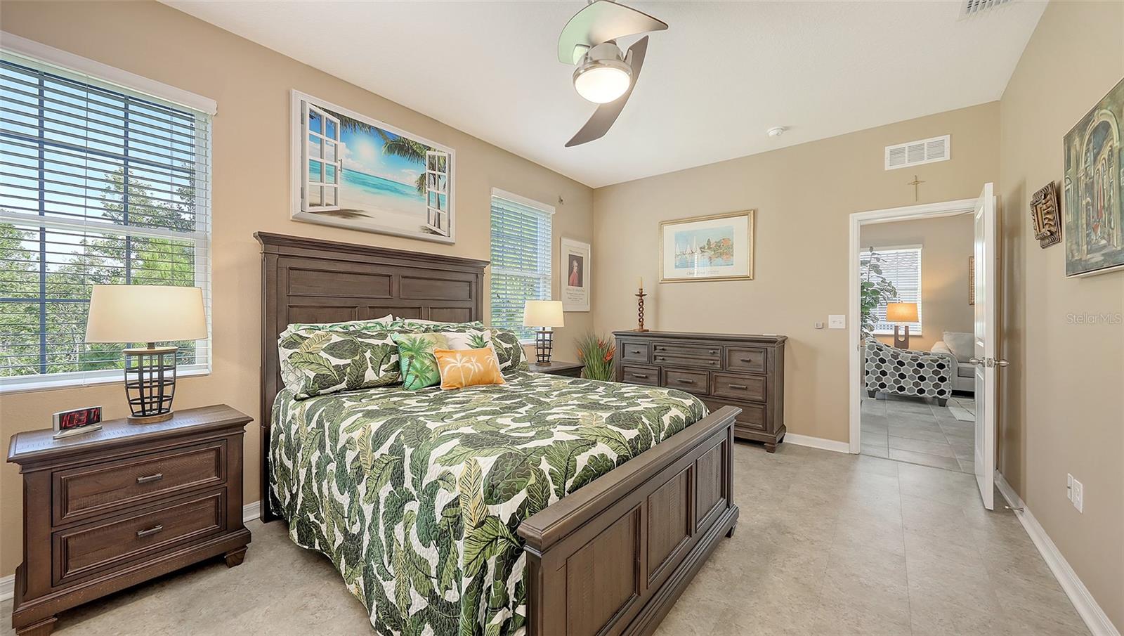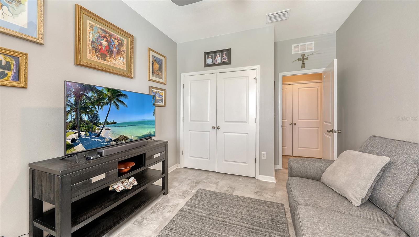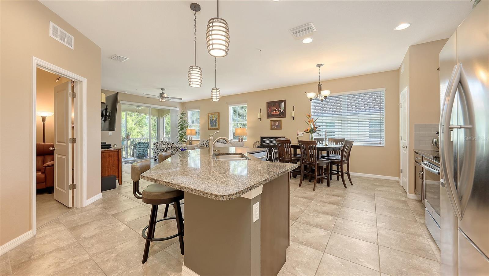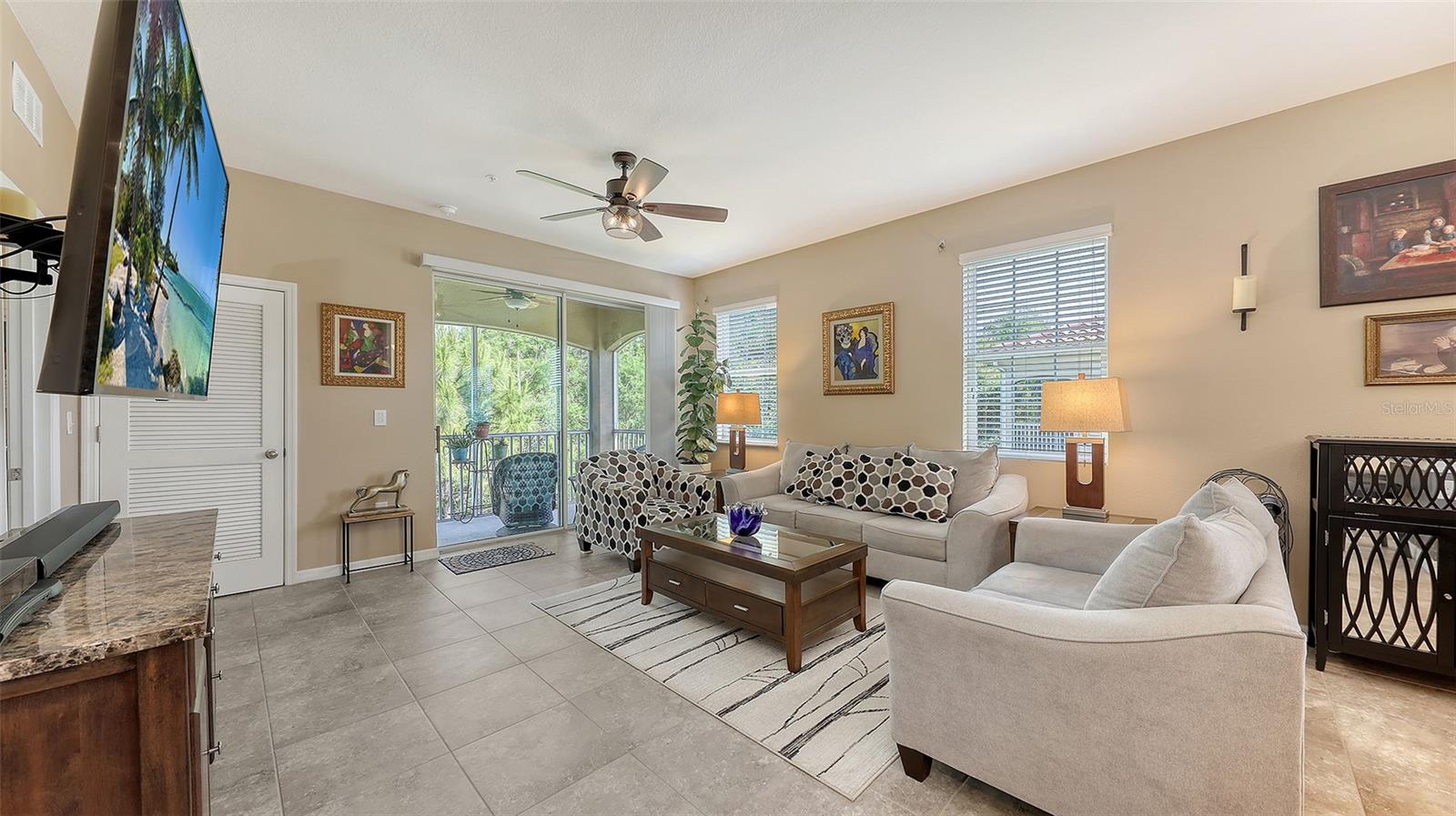 Welcome to relaxed Florida living in this beautifully upgraded 3 bedroom, 2 bath condo with a den, located on the second floor and offering green preserve views, a spacious layout, and resort-style amenities. From the moment you walk in, you’ll be greeted by soaring ceilings, natural light streaming in, and tile flooring throughout for a clean look. The kitchen is made for gathering - designed to impress with granite countertops, a massive island, newer appliances, and a custom-built walk in pantry. The open-concept living and dining area flows seamlessly out to a screened-in lanai, where you can sip your morning coffee while enjoying sounds of the peaceful nature preserve behind you. The primary suite is a true retreat, featuring a walk-in closet with custom built-ins and an en-suite bath with dual vanities. The den adds flexibility for a home office, hobby room, or reading room. You’ll love the upgraded hand-crank hurricane shutters for peace of mind, attached garage, and oversized driveway. This vibrant community offers something for everyone: year-round heated pool, fitness center, bocce ball courts, clubhouse with regular events, a dog park, and beautifully landscaped walking paths throughout the neighborhood. All this just minutes from downtown Sarasota, world-class beaches, museums, shopping, and the airport. Whether you're looking for a full-time residence or a stylish seasonal getaway, this one checks all the boxes.
